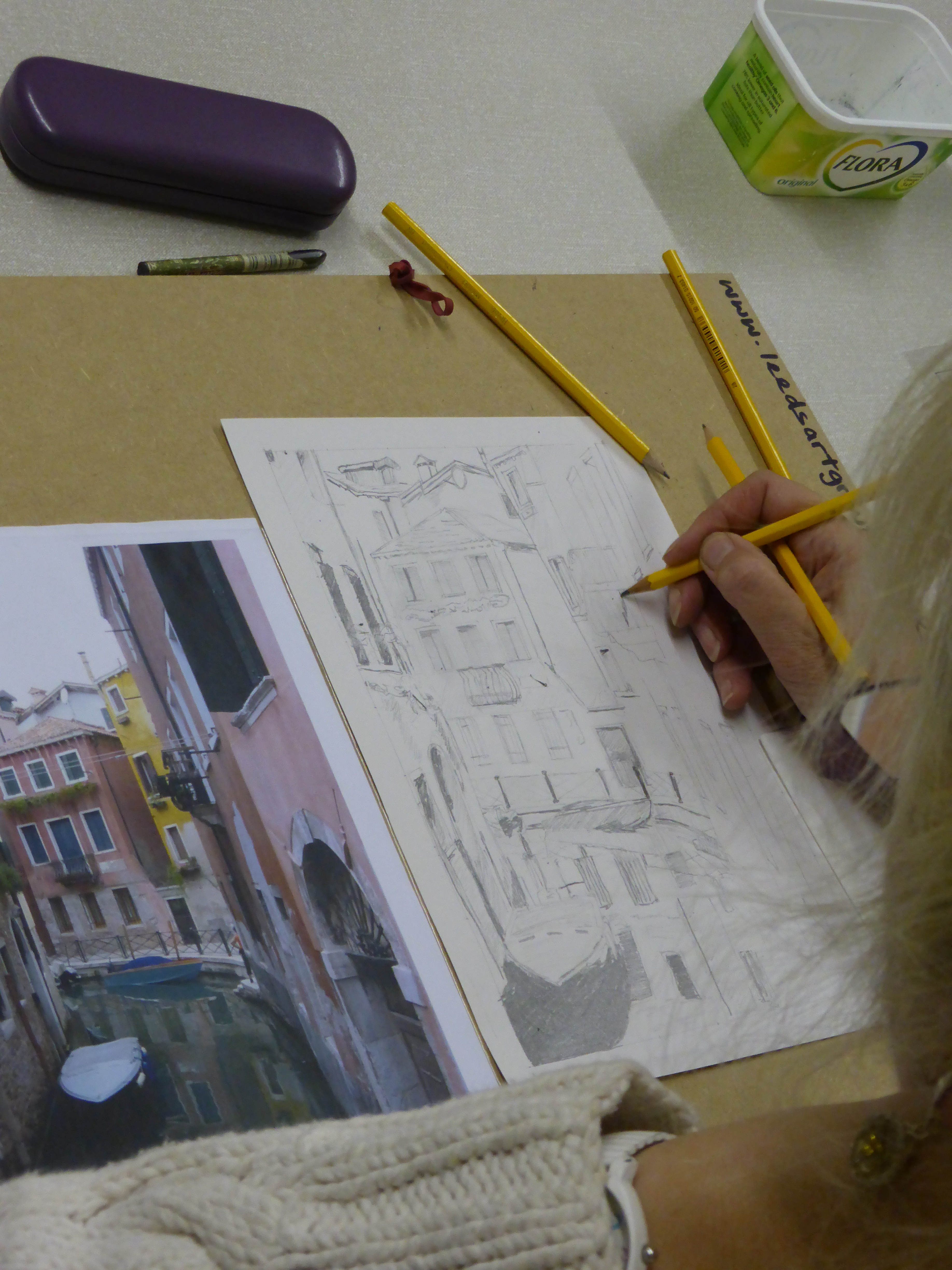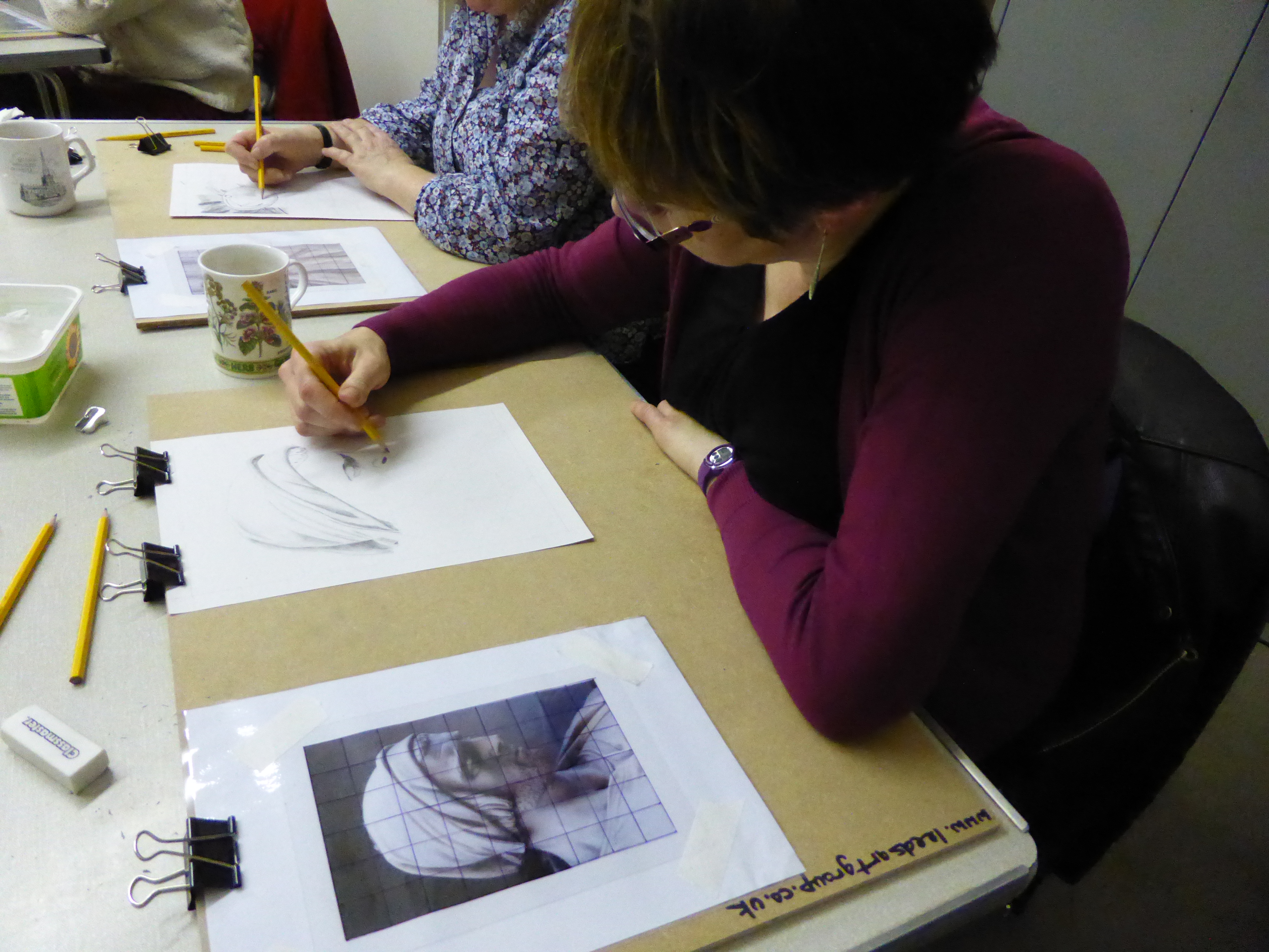 Halfway through the course already! So here are the photos of our lesson on enlarging using a grid. Some people found this helped and some found it easier to work without the grid but it’s always good to try out different techniques and see what works best for you.