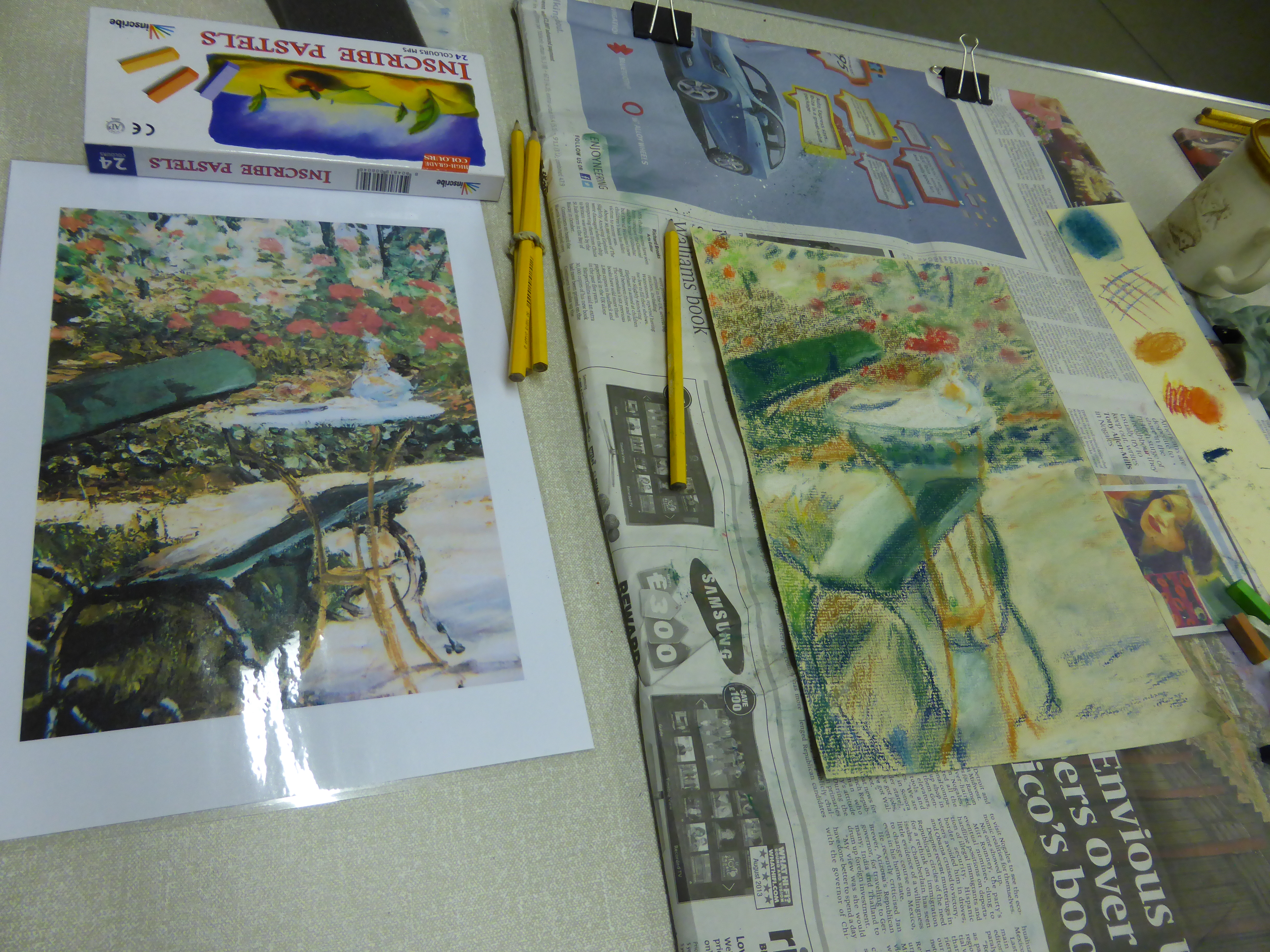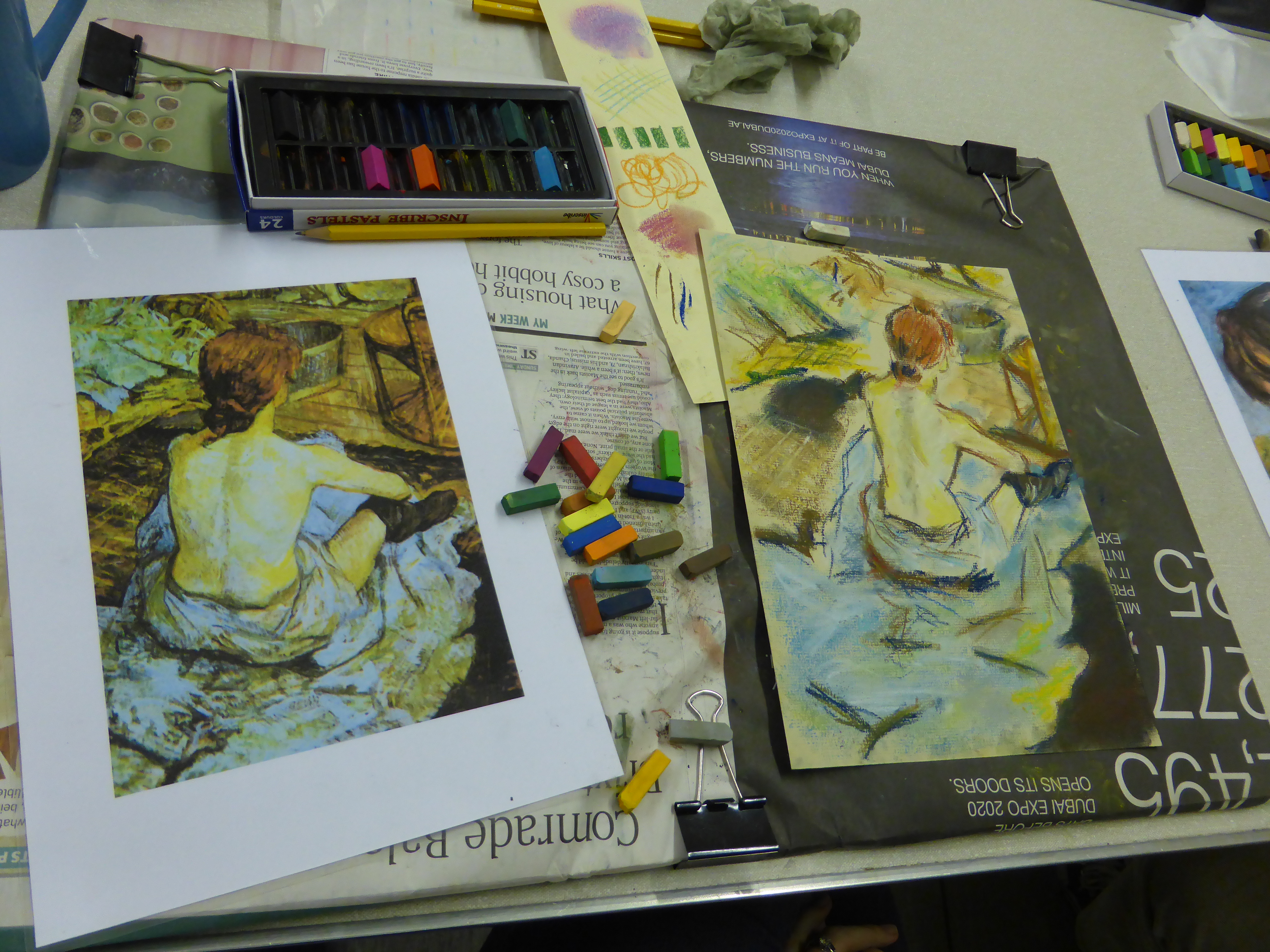 Thanks to everyone for coming last night and getting stuck in with the pastels. You all produced some beautiful drawings based on Impressionist paintings. Be very proud of the work you did and I’ll look forward to seeing what you can do next week.