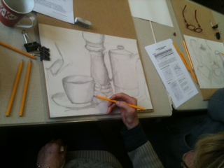 This class is so good! Wendy is very organized and has everything set up and ready for us to begin. She moves around the room and gives each of us guidance and instruction with our work. All the students seem to get really involved with their drawings and with the background of classical music Wendy has created a lovely space for us to create. She also brought us the most amazing home made scones!
