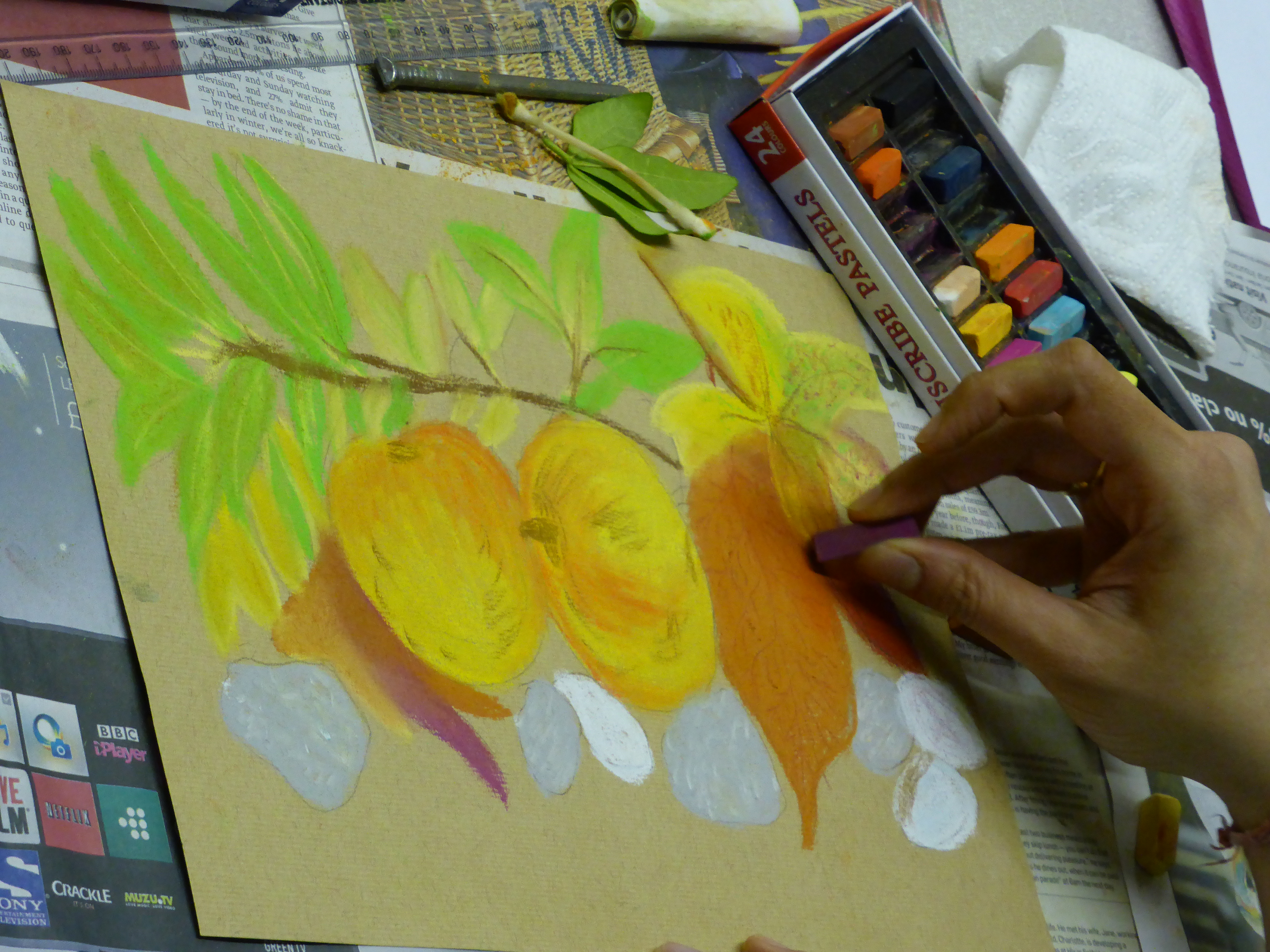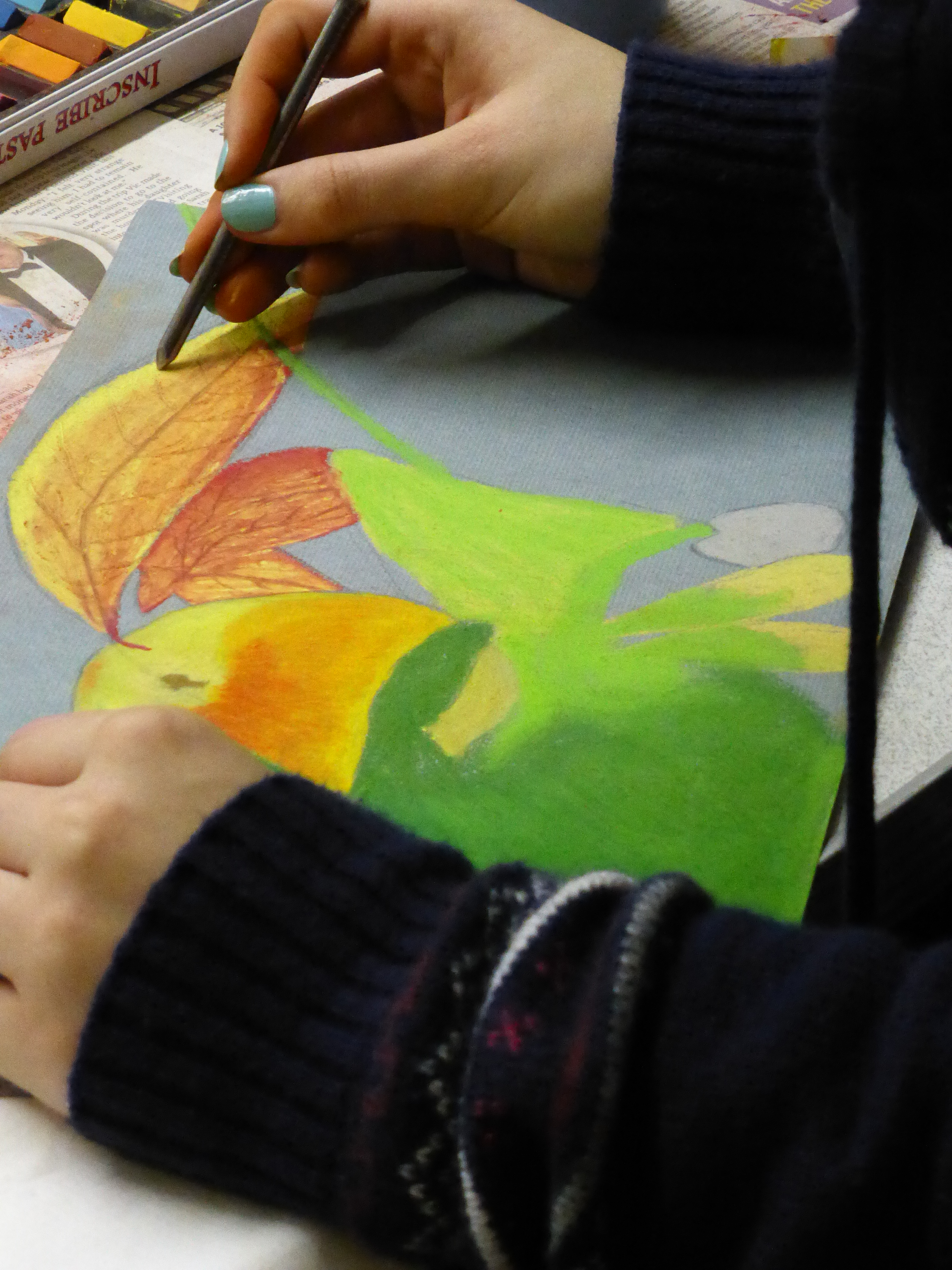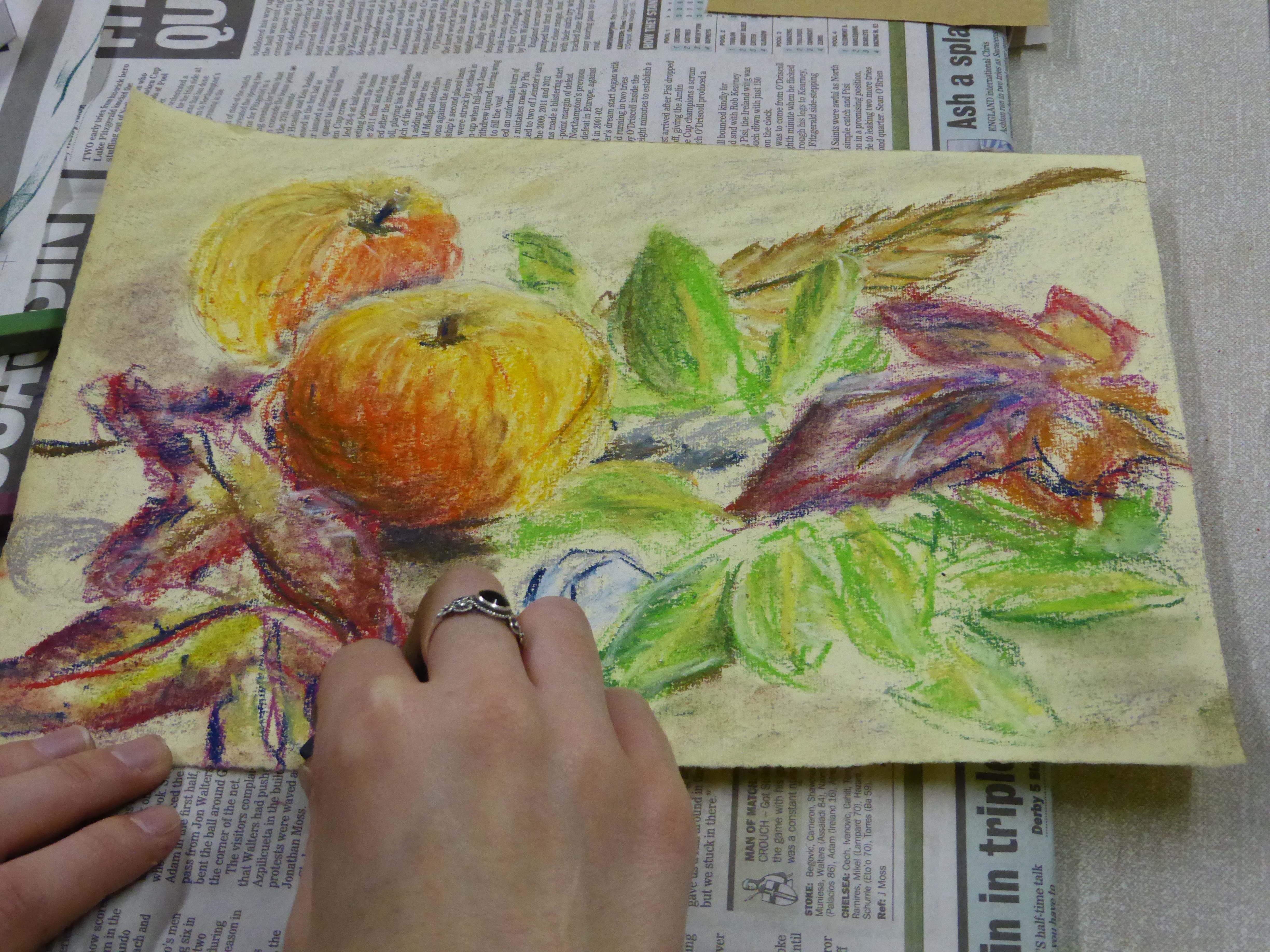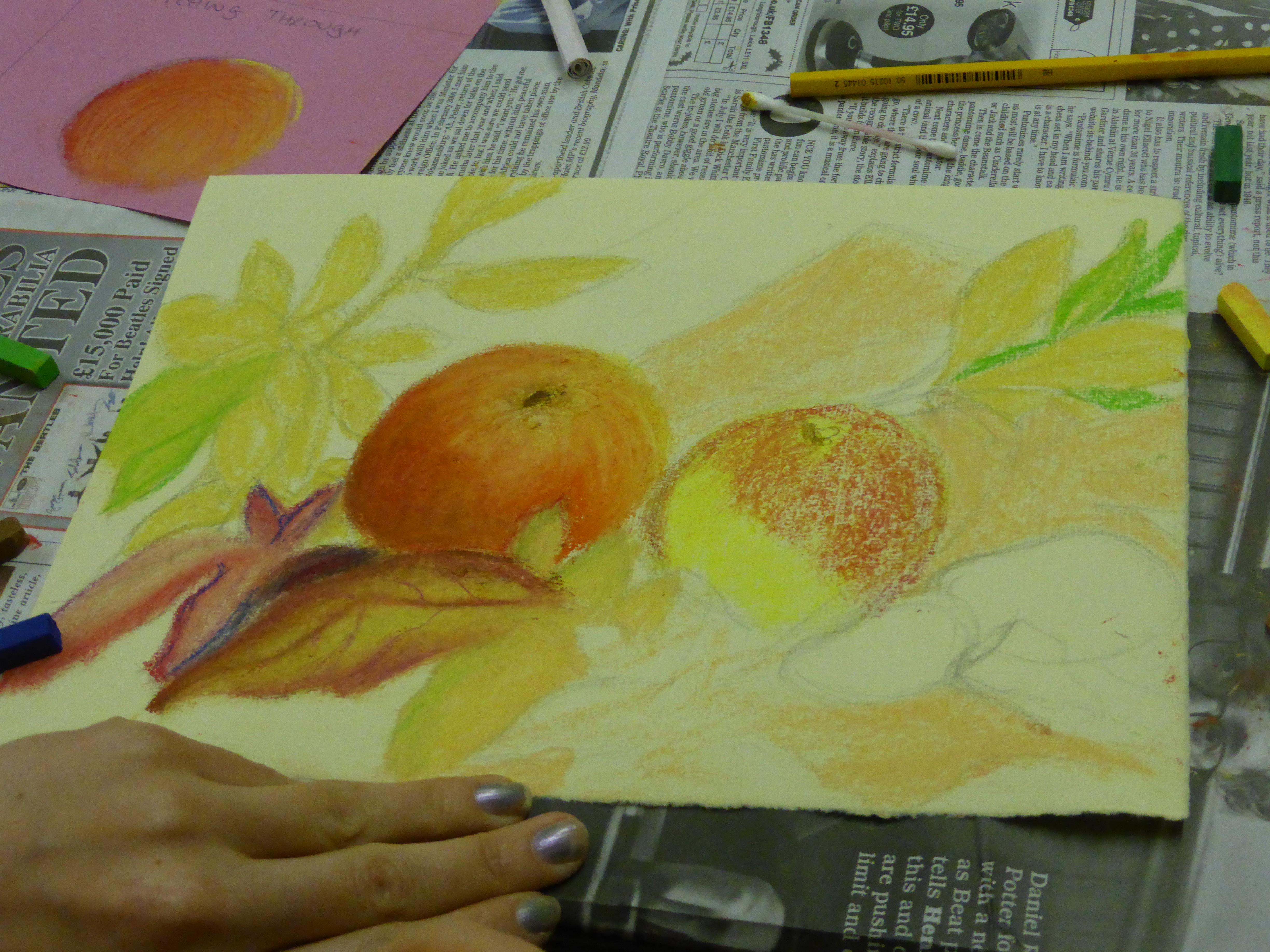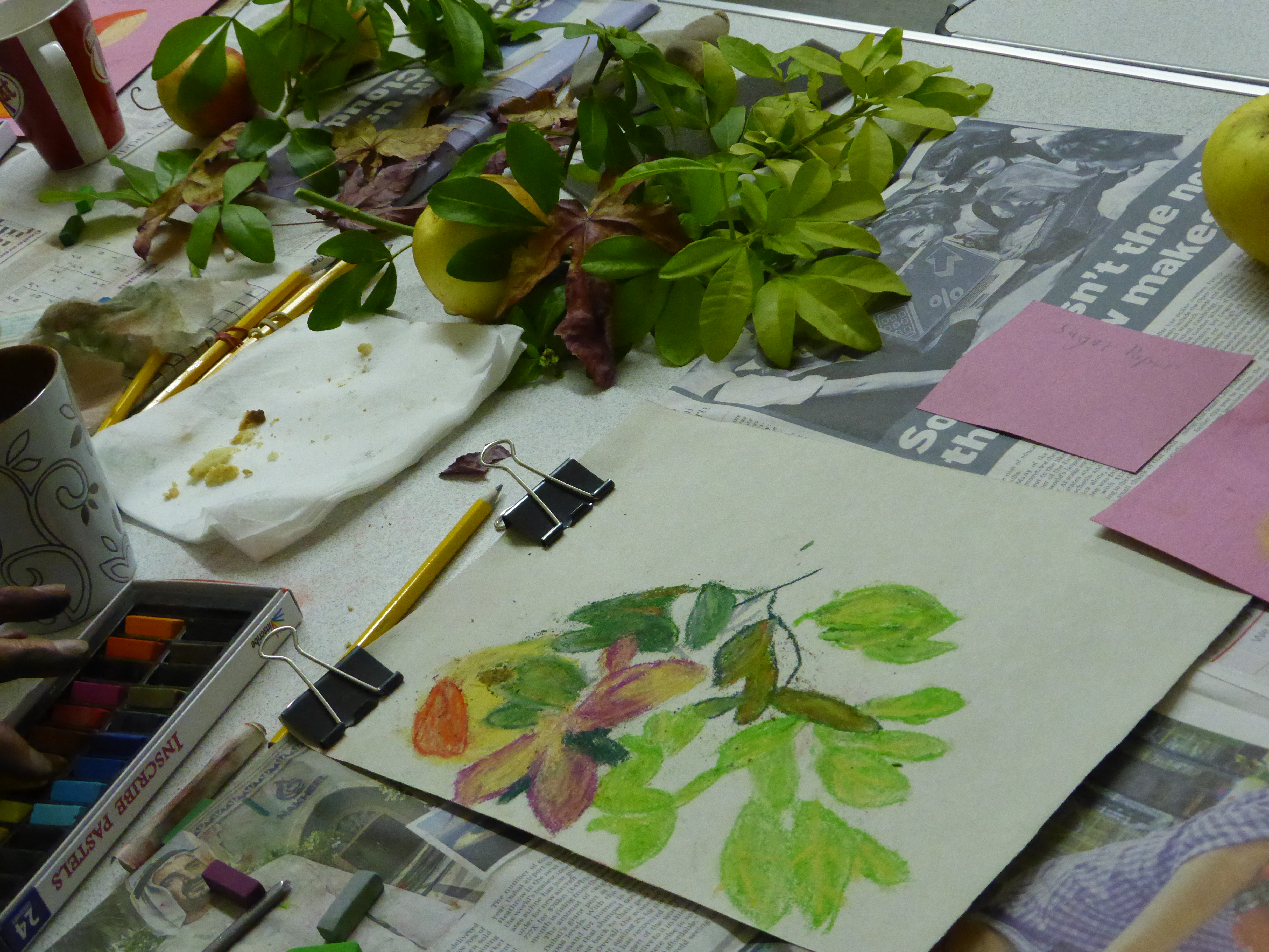 Last night we looked at natural forms and different ways of mixing colours. Well done for trying out all the different techniques. As the course progresses you’ll learn which ones work best for you. You all created some really vibrant drawings last night and you can see your individual styles emerging. See you next week and don’t forget to bring in a white object to draw!