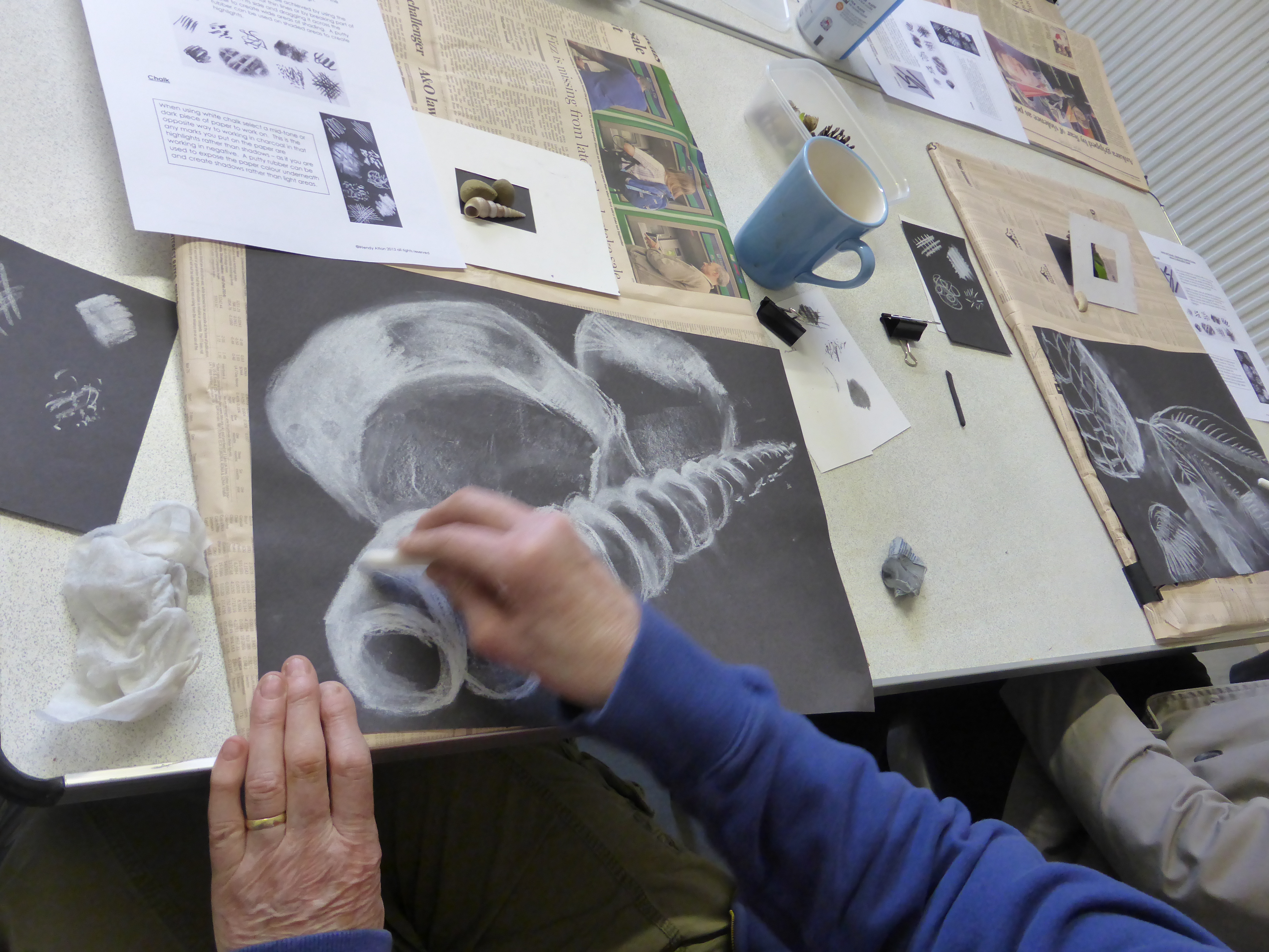 We used charcoal and chalk this week to draw natural forms and used a viewfinder to help enlarge the small objects to fill a sheet of A3 paper. Both charcoal and chalk take some getting used to, so well done to everyone for having a go, I was really pleased with the work you did. Back to good old pencil work next week and we’ll be drawing from photographs. I have plenty of photos for everyone but if you’d like to bring in your own then please do (it needs to be about A5 size). See you all next week!
