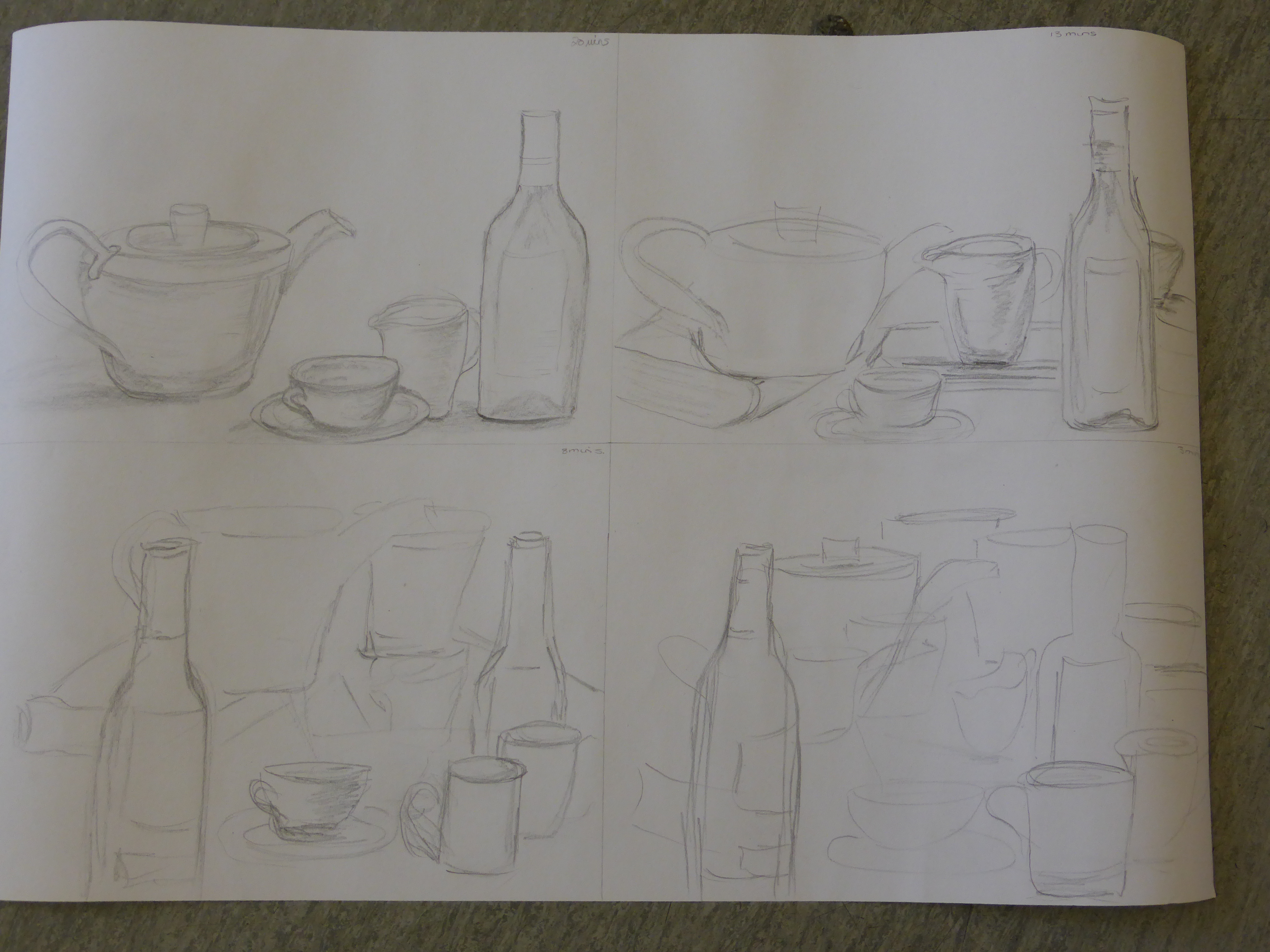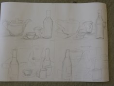 We did some timed drawing exercises to help us speed up the way we sketch out the initial stages of a drawing. These exercises should help you focus on the key elements of a composition that you need to jot down when you first start a drawing and before you add any detail.