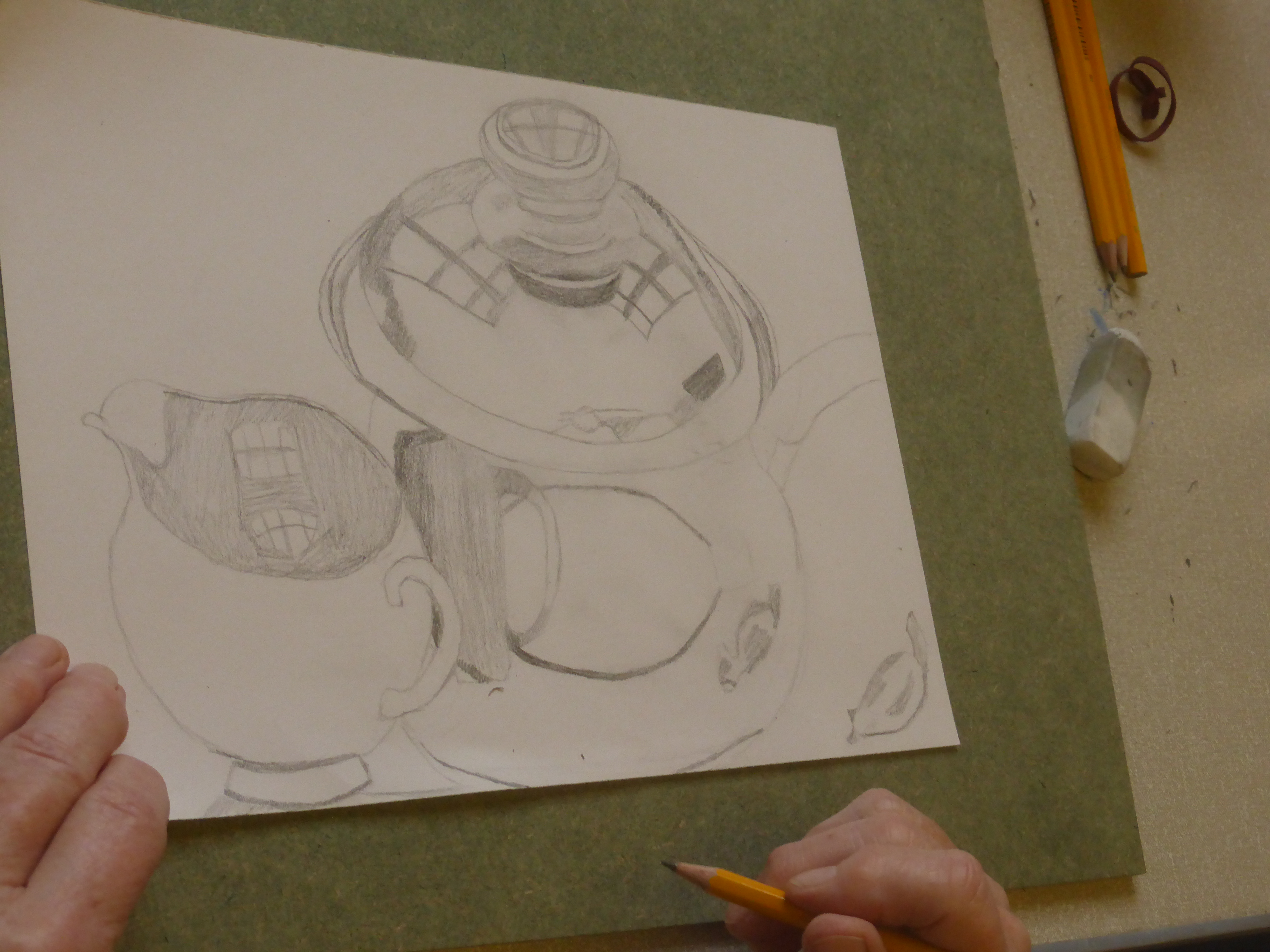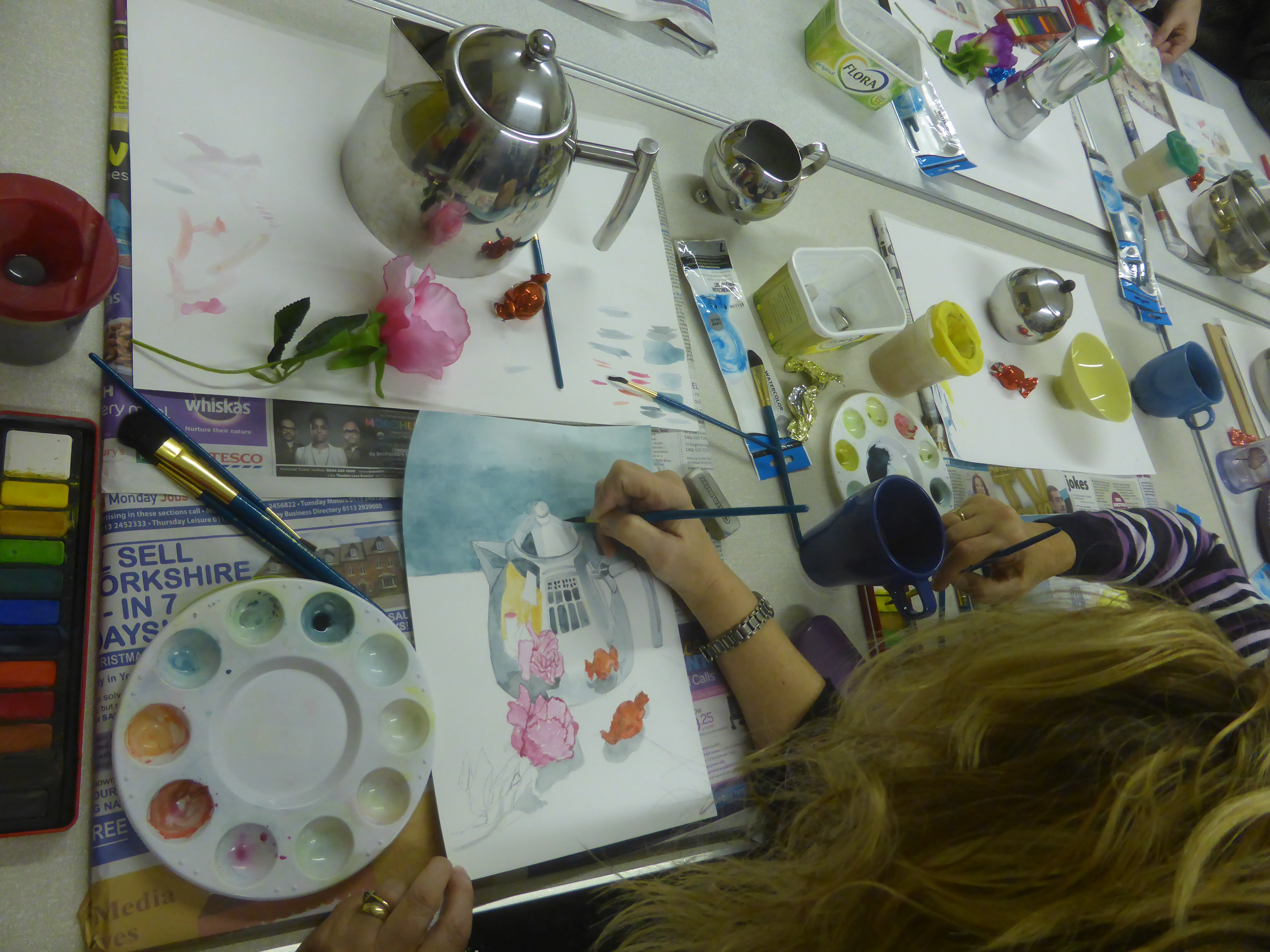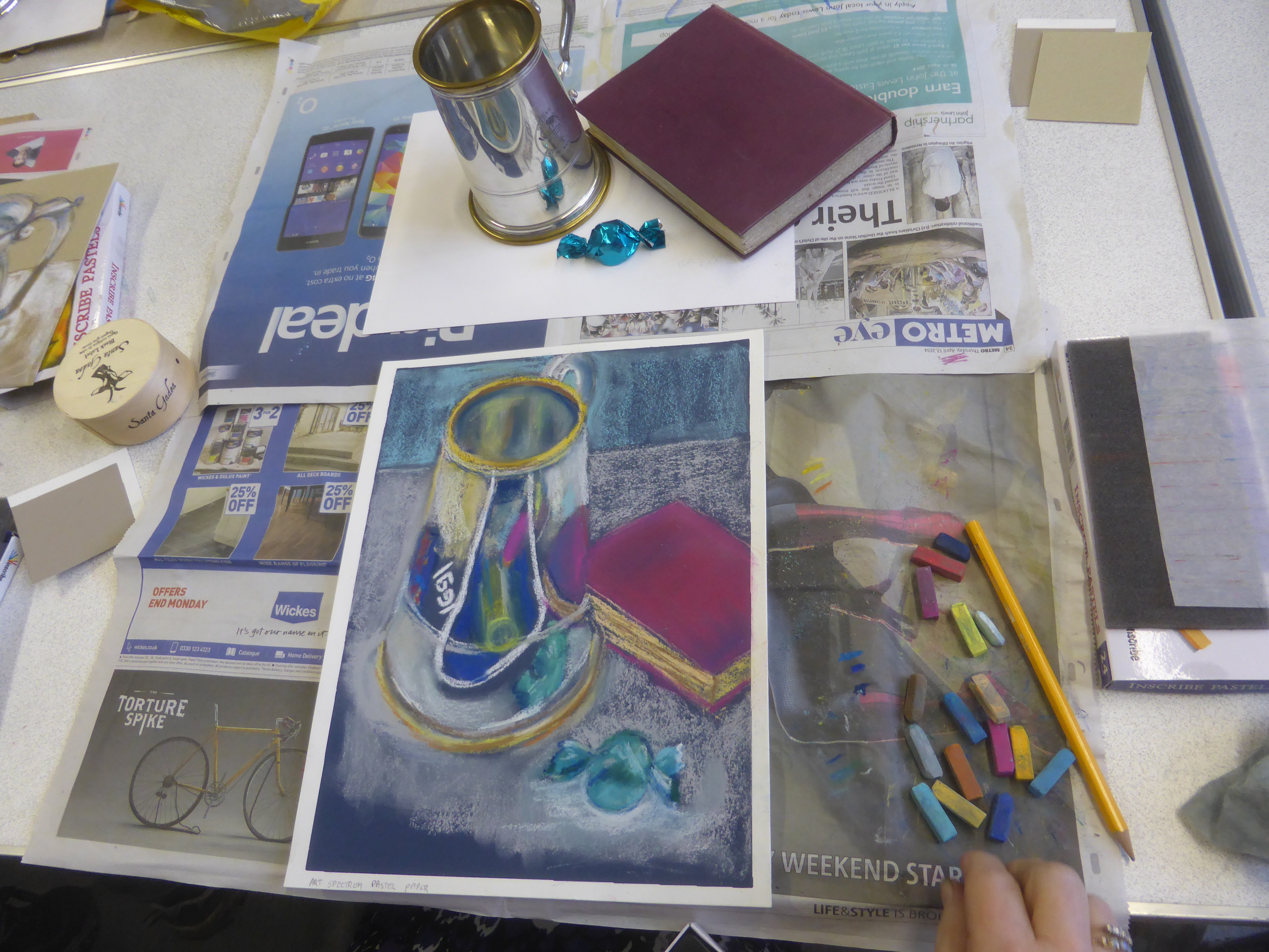 Sadly it was our last lesson of each course this week but look how far you’ve all come in just 8 weeks! We finished on probably the most difficult lesson so far by looking at reflections. It’s easy to get lost in all the lines and shapes you can see in a reflection but you all did brilliantly and although it seemed confusing at first I think you came out with some really nice work at the end of the lesson (see below). So well done and be proud of what you have achieved.