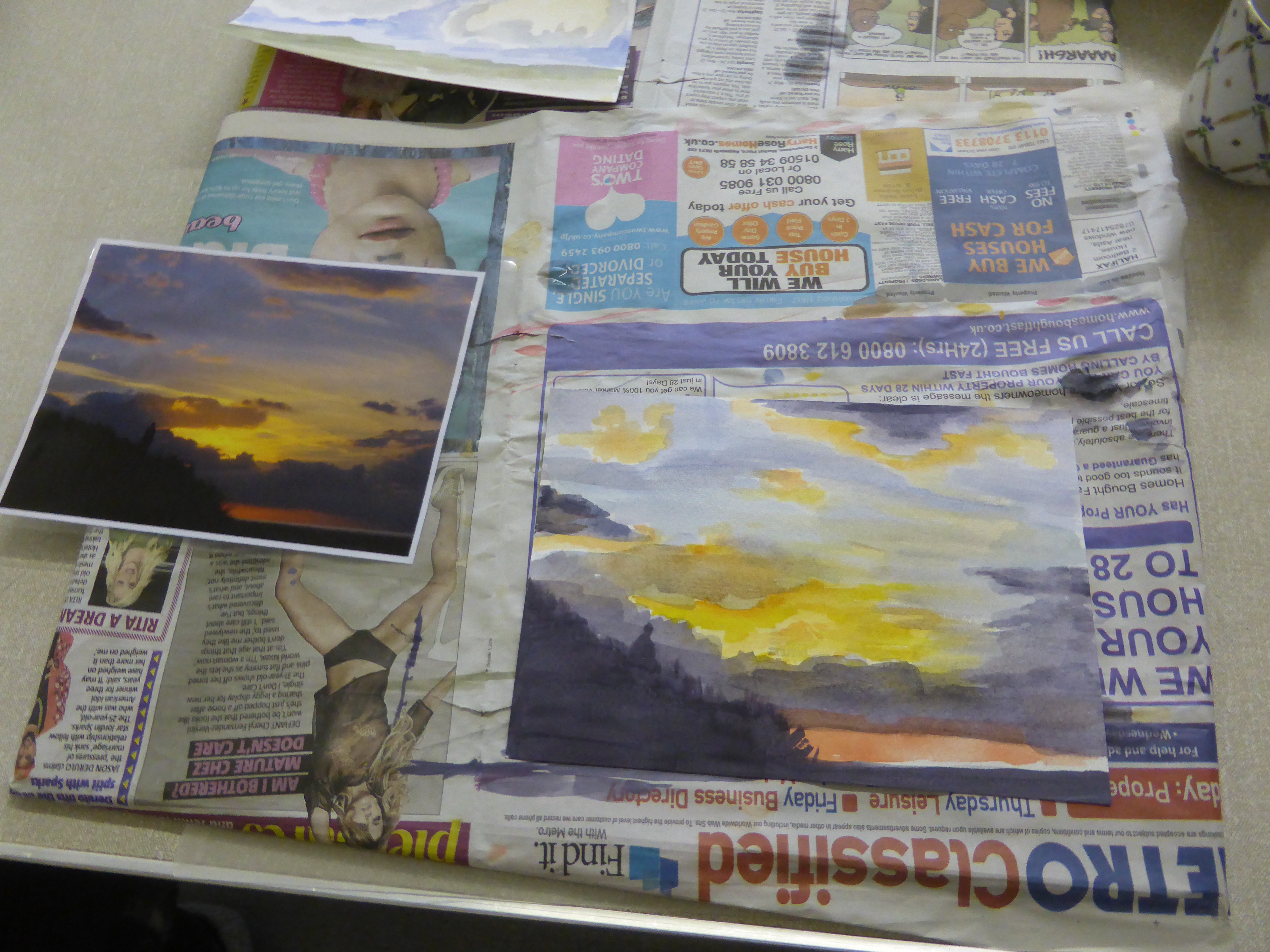 Over halfway through the course already and look how well you are all doing. The Pastel class tried a new technique this week, working on a textured surface with only 3 pastels. The Watercolour class looked at how to work on different parts of a picture and work your way around so that you are never left watching paint dry. The Drawing class used grids to enlarge a photograph and worked on their proportion and shading skills. There were some great pictures produced this week. Whenever I give you a challenge you don’t let me down. If you get chance this week, take the opportunity to compare the work you did this week with the work from the very first lesson and I think you will see a definite improvement. Well done everyone!