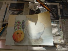 Well done to everyone who braved the bad weather and made it to class this week. In the Pastel class we used natural forms for a still life composition and continued to practise our colour mixing. In the Watercolour class we introduced some manmade forms and looked at how to add shadows on and around objects and to consider light direction. In the Drawing class we looked at entirely manmade forms which are generally a bit trickier than natural forms but great for practising your proportion skills. Well done everyone, this is only week 2 and I can see you are really thinking about all the points we have covered in class.