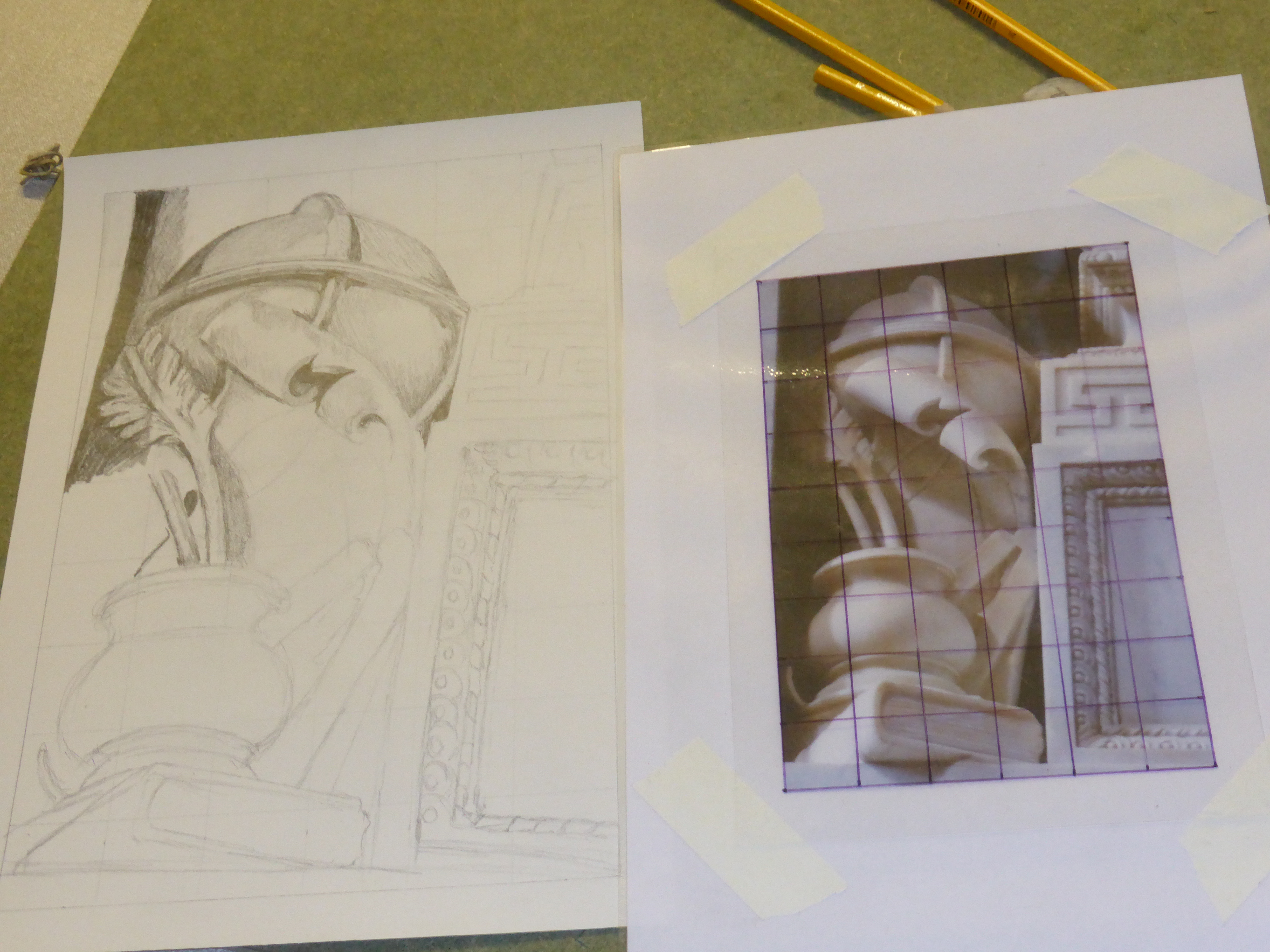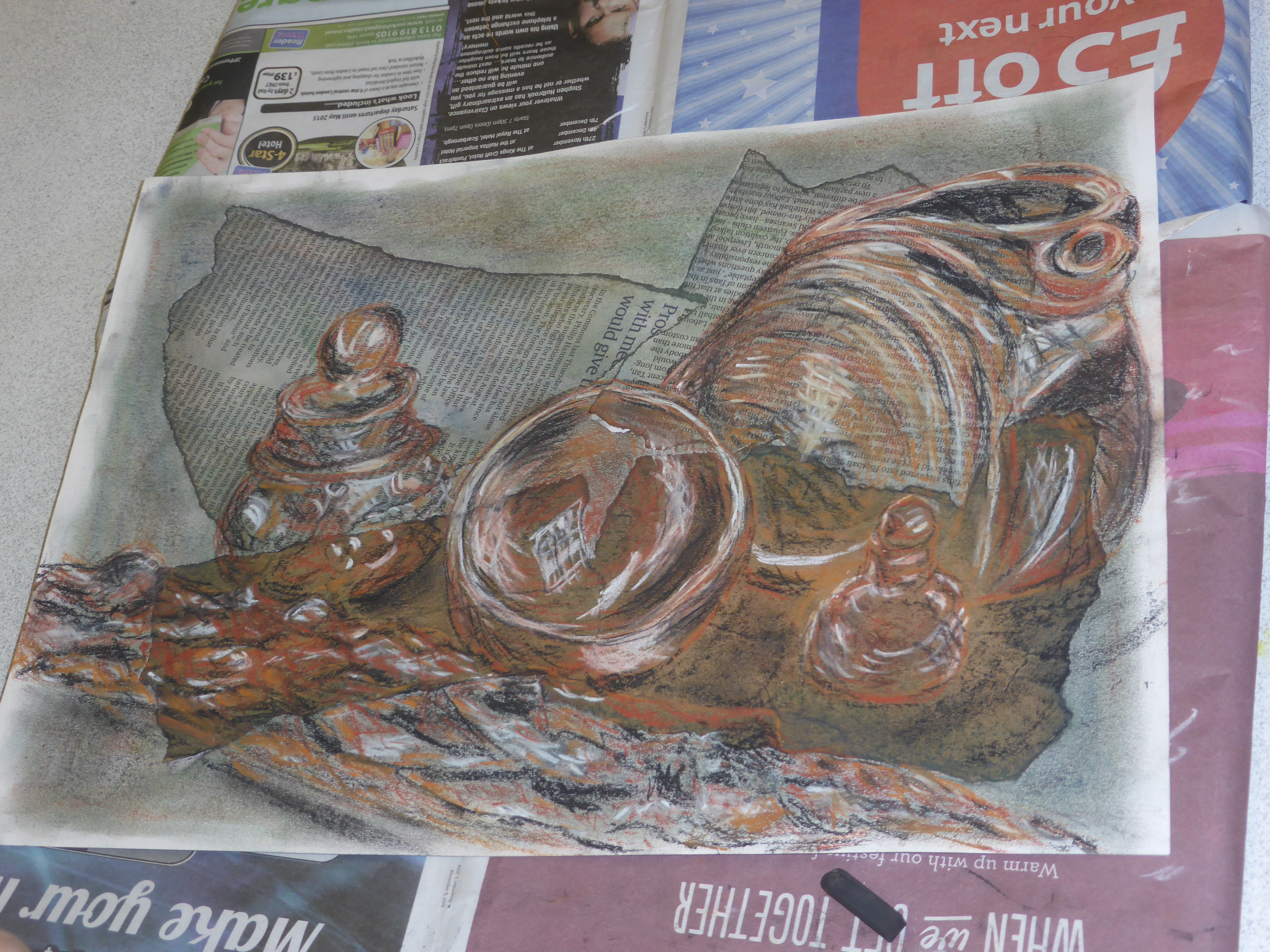 Over halfway through the course already and look how well you are all doing. The Pastel class tried a new technique this week, working on a textured surface with only 3 pastels. The Watercolour class looked at how to work on different parts of a picture and work your way around so that you are never left watching paint dry. The Drawing class used grids to enlarge a photograph and worked on their proportion and shading skills. There were some great pictures produced this week. Whenever I give you a challenge you don’t let me down. If you get chance this week, take the opportunity to compare the work you did this week with the work from the very first lesson and I think you will see a definite improvement. Well done everyone!