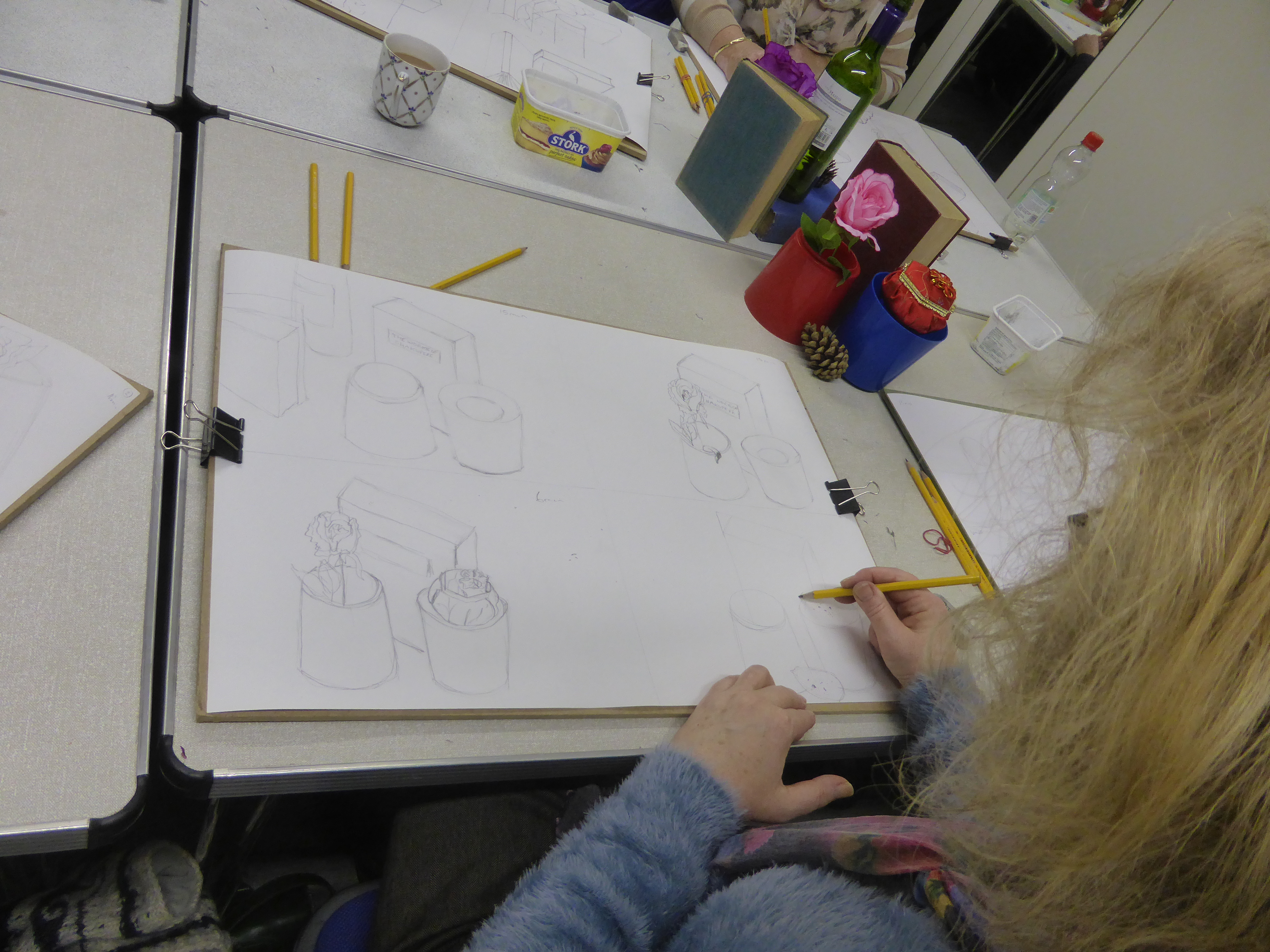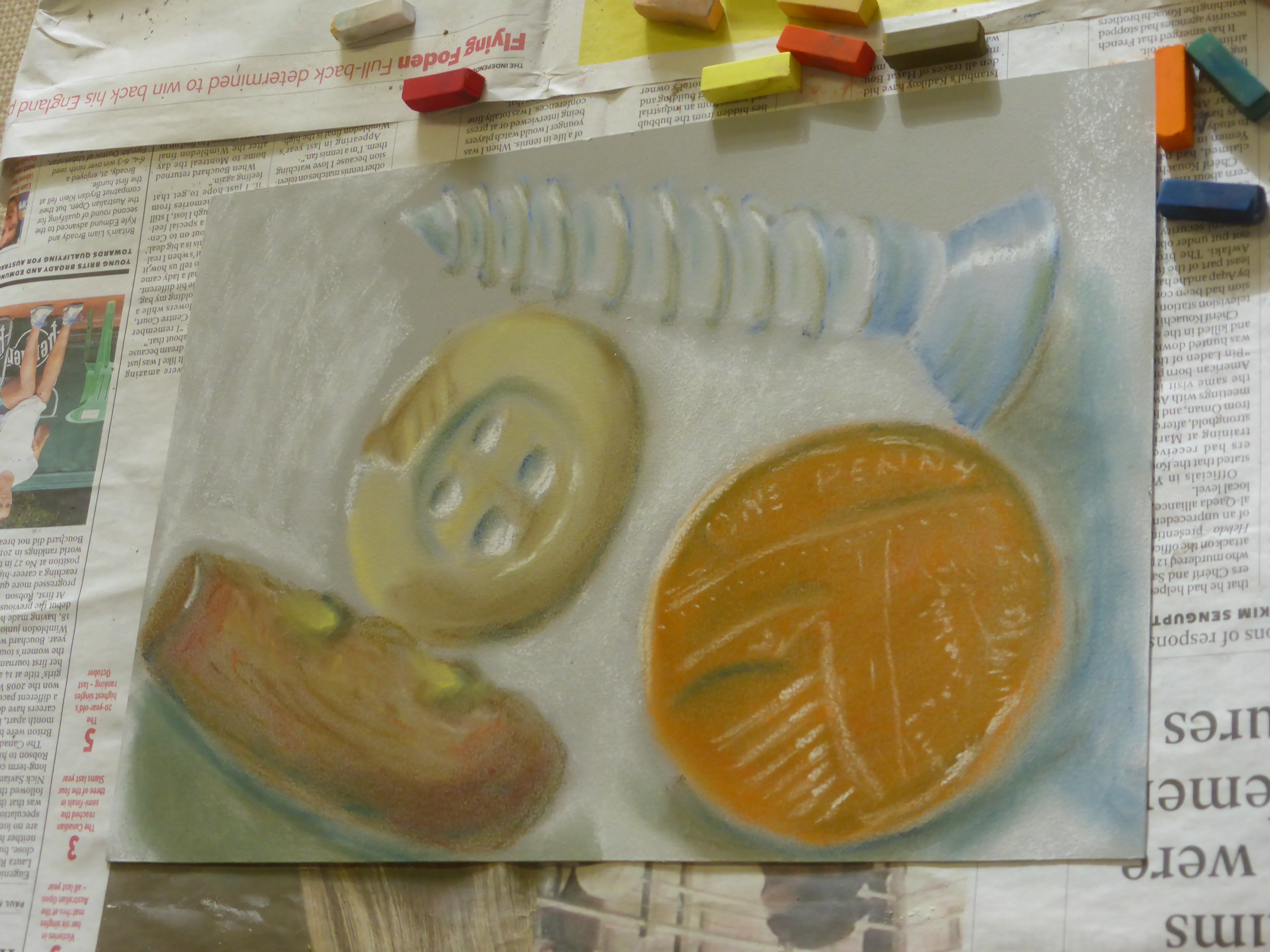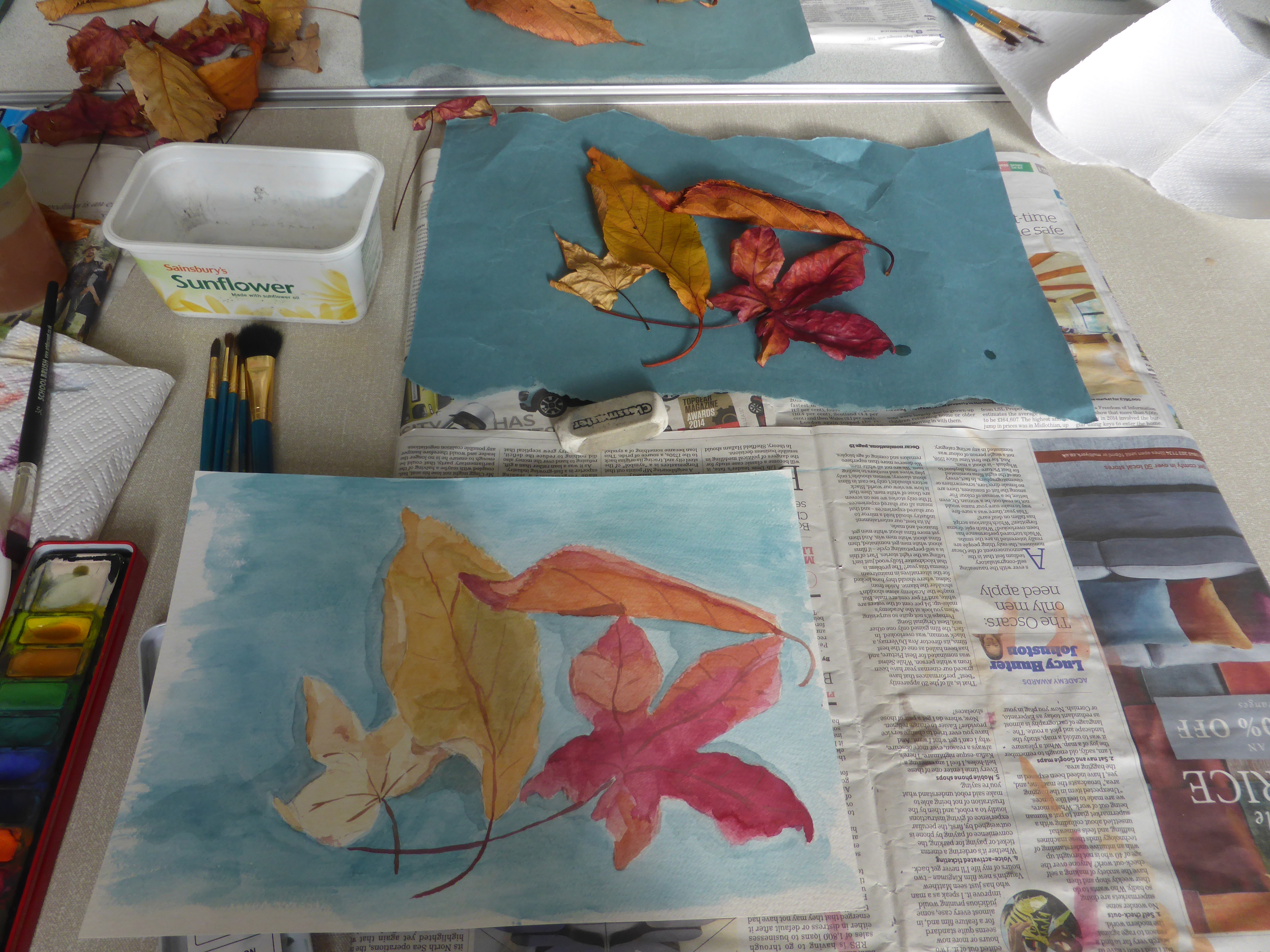 You did some really great work this week folks. The Pastel class looked at scale by taking small everyday objects and enlarging them. The Watercolour class painted leaves on a contrasting background to really experiment with their colour mixing and put into practise all the techniques that they have learned so far. The Drawing class did some timed drawings to work on their speed but also to help them identify the key elements of a drawing first before adding detail. Well done, you are all really grasping the key points we’ve covered in the courses so far. Looking forward to seeing what you produce next week.
