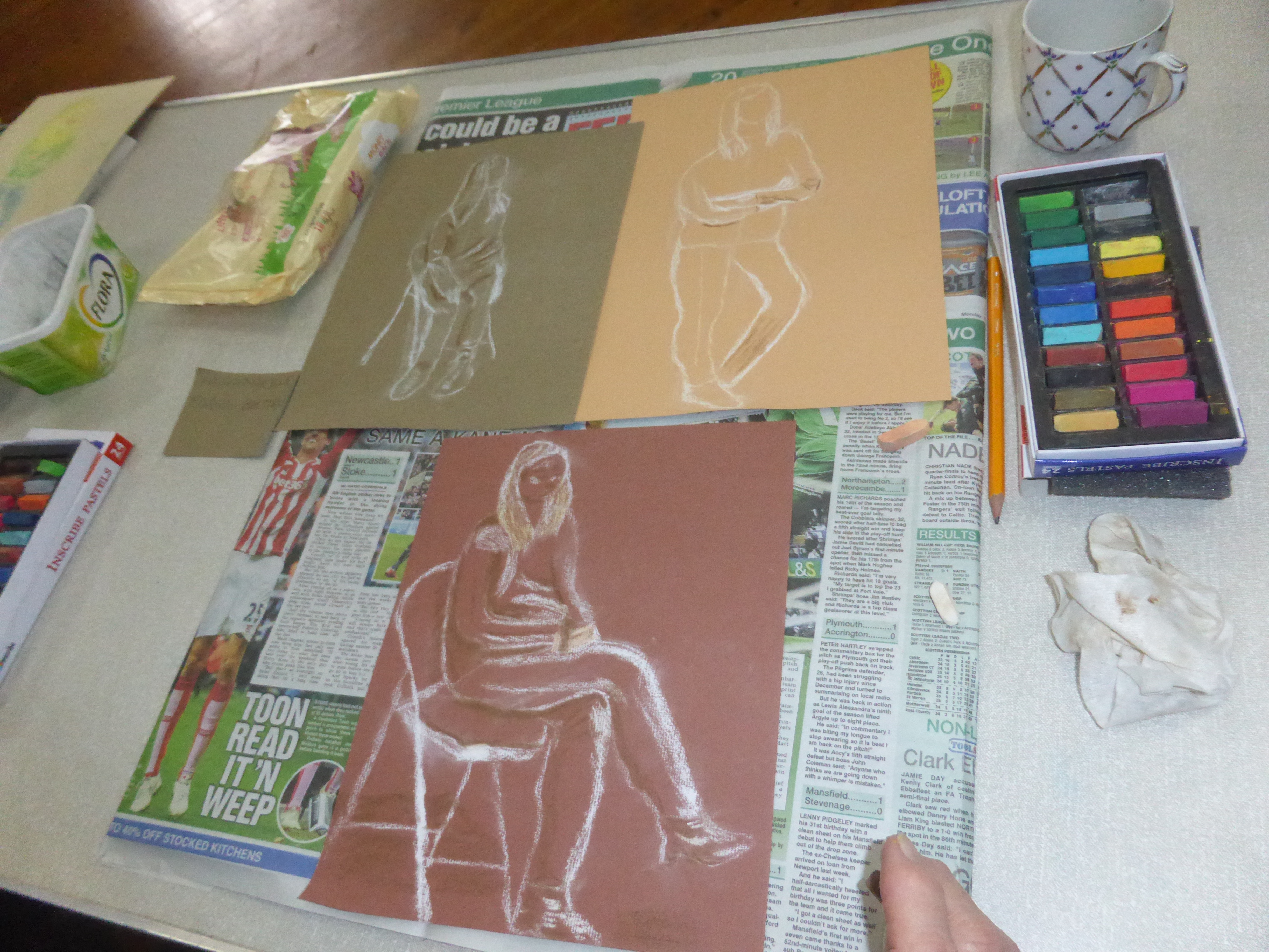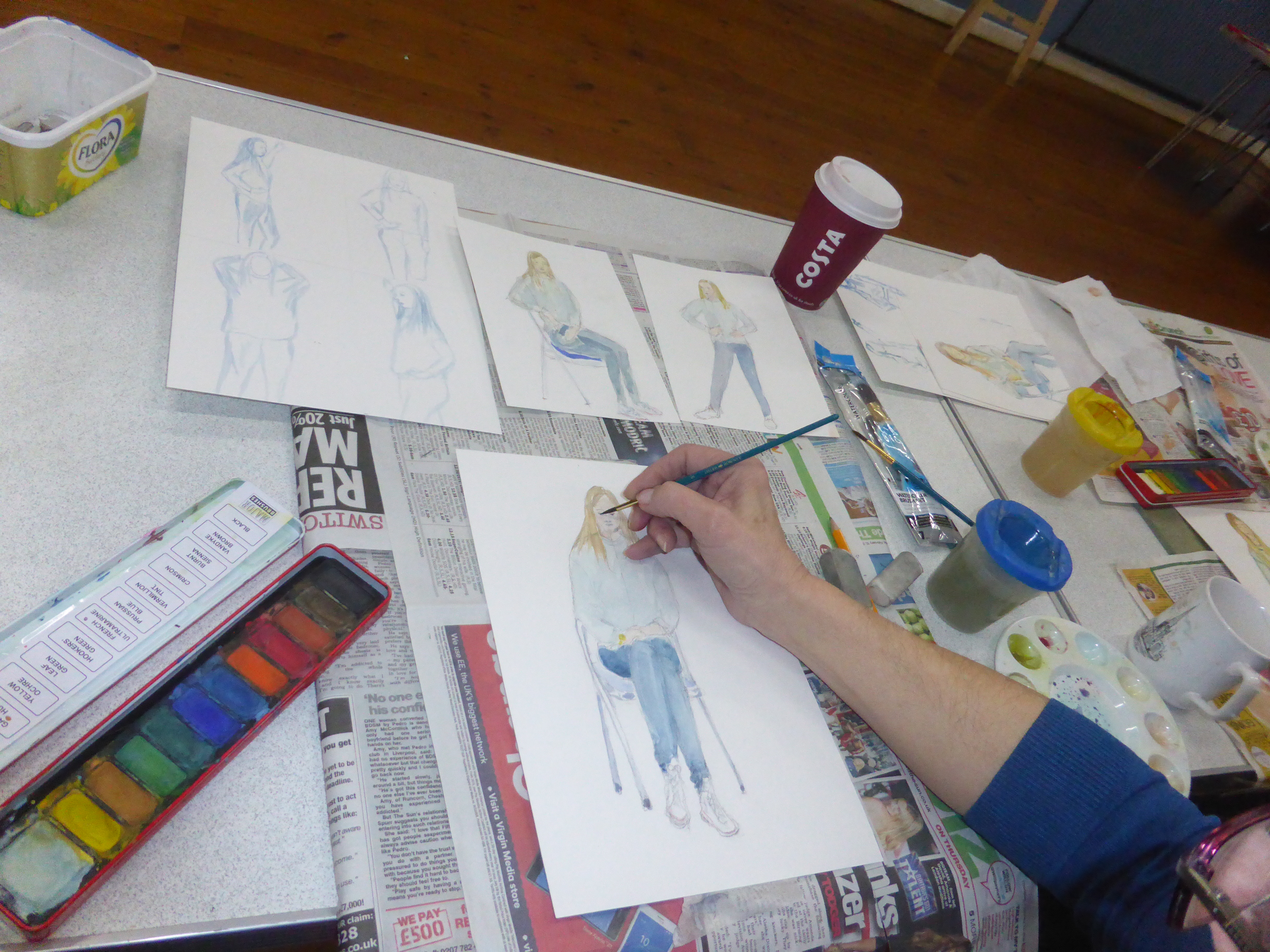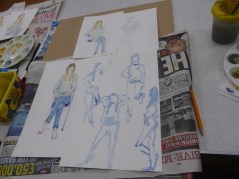 Sadly this week was the last lesson for all three courses but what a finale! You all made a great job of drawing our life model. We mainly concentrated on proportion and made a series of sketches/paintings using various techniques to get the proportion just right. Well done, you all did brilliantly and I hope you’ll join us for future Leeds Art Group Courses (especially Kate who brought in the Lemon Drizzle Cake – delicious!). Get in touch if you need any information about further courses or visit the Courses for 2015 page. The next courses will be starting on 23rd March, so contact me if you’d like to book a place. Give yourselves a pat on the back for all the progress you’ve made this term. It’s been an absolute pleasure teaching you all and I’ll look forward to seeing you soon.