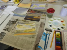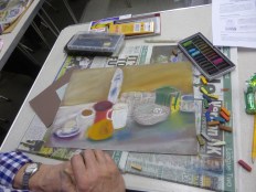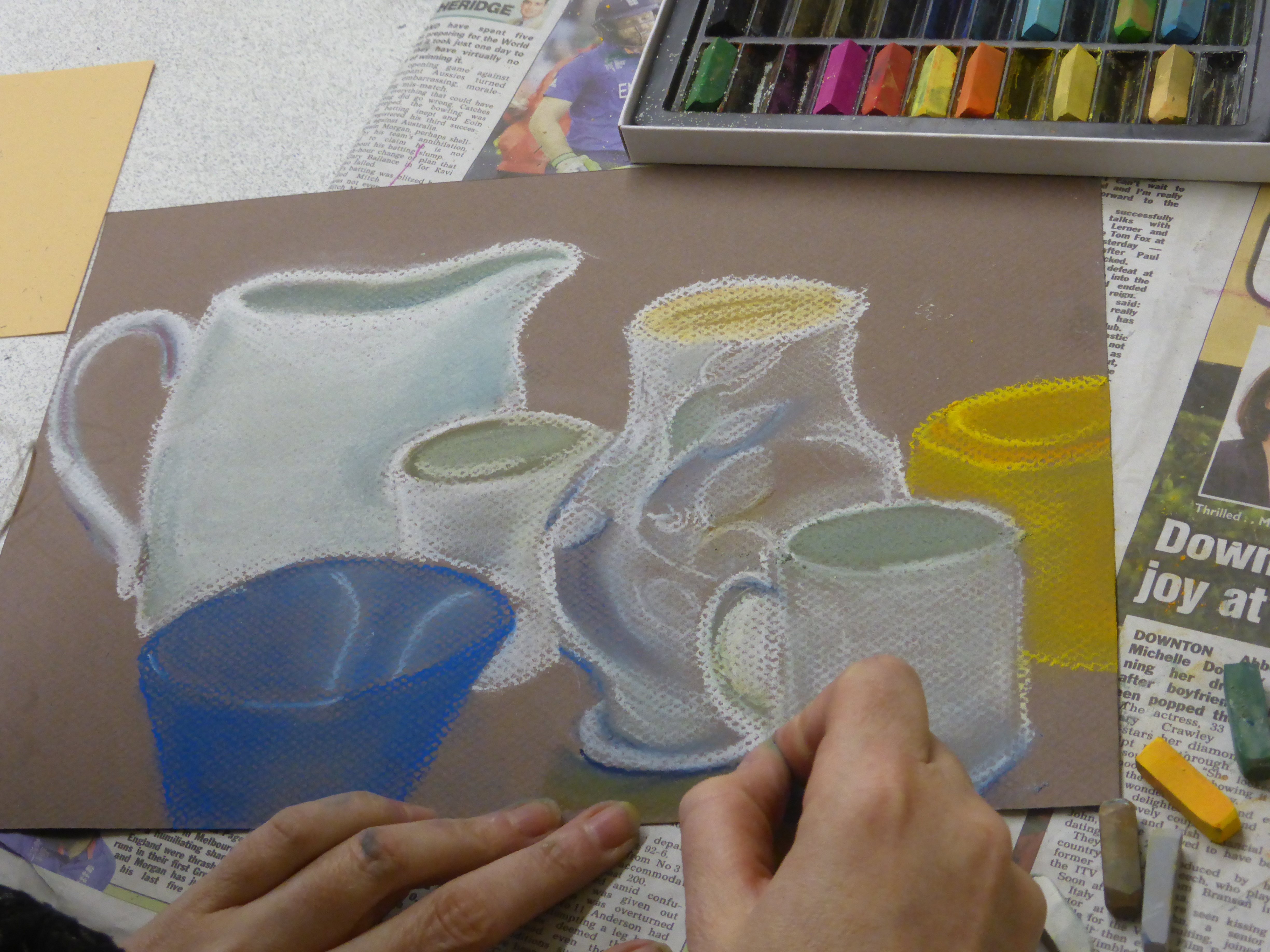It’s good to be back again after our Easter break and great to see how eager you all were to get creative! In the Watercolour class we used a range of techniques for creating skies and stretched some paper for working on next week. The Drawing class looked at scale and used charcoal and chalk to create their enlarged drawings. The Pastel class had the difficult task of drawing white objects on a white background without using any black for the shadows. Once again, everyone rose to the challenge and produced great results. Keep practising and keep building your skills and your confidence. Looking forward to seeing what you can do next week.