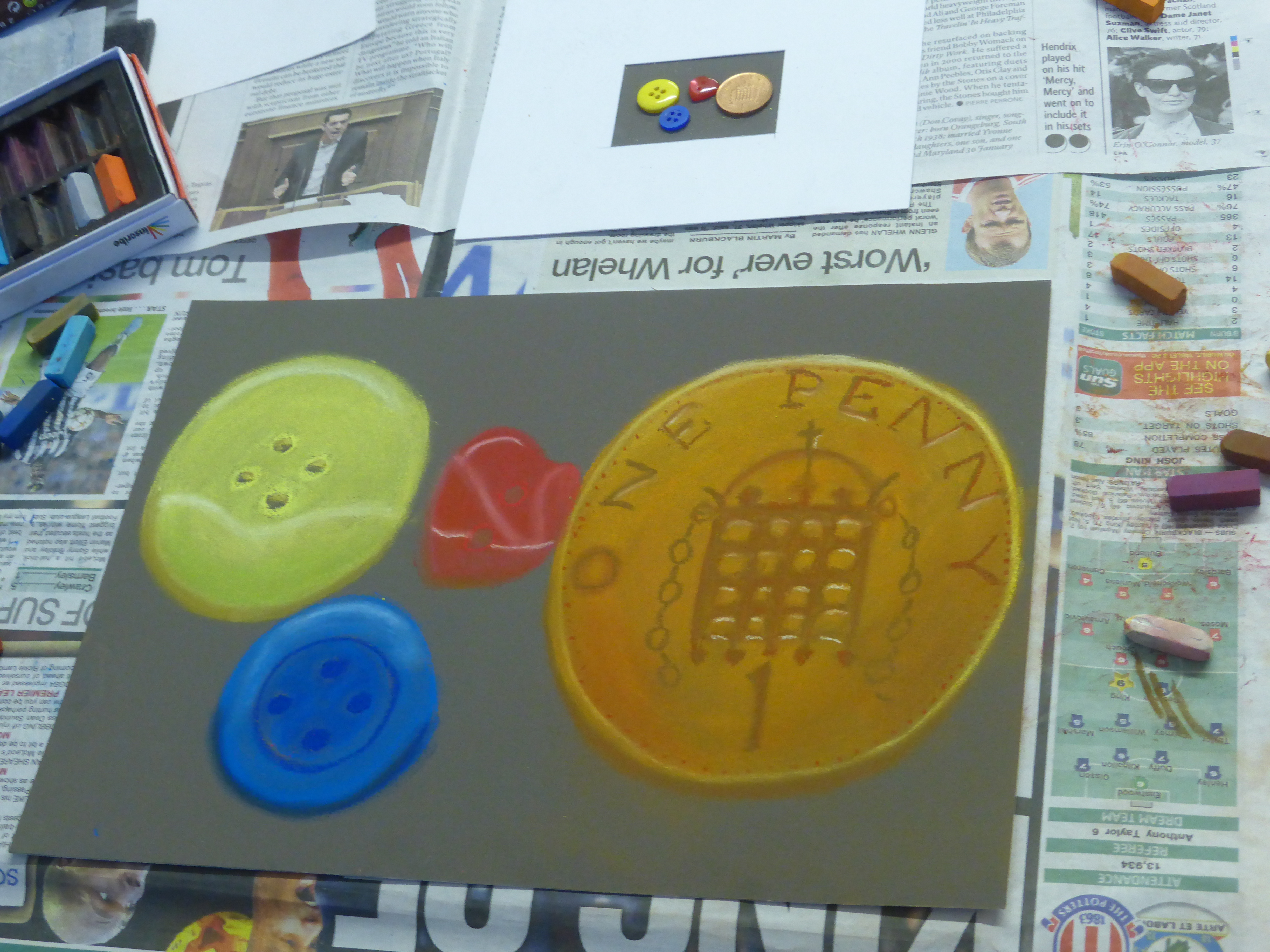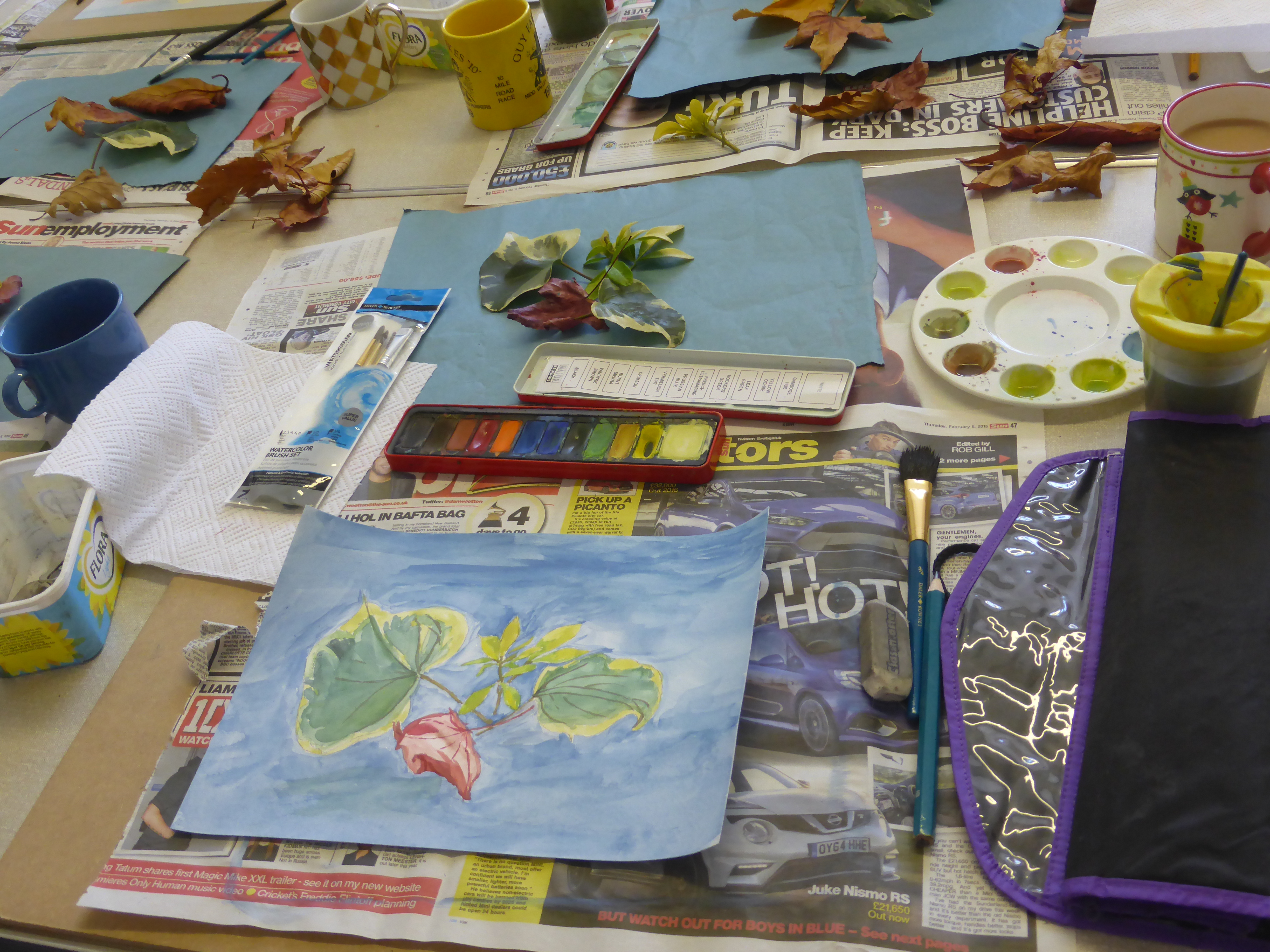 Lesson 5 already and everyone is starting to work a bit more independently as you gradually gain confidence in your own abilities, which is fantastic to see. The Watercolour class painted some leaves and put in to practise everything they have learned so far about colour mixing and gradually building up a painting. The Drawing class did some timed drawings to explore how to start a drawing with quick and simple shapes before adding more detail. The Pastel class looked at scale and enlarged small, everyday objects to fill an A4 page using some really vibrant colours.