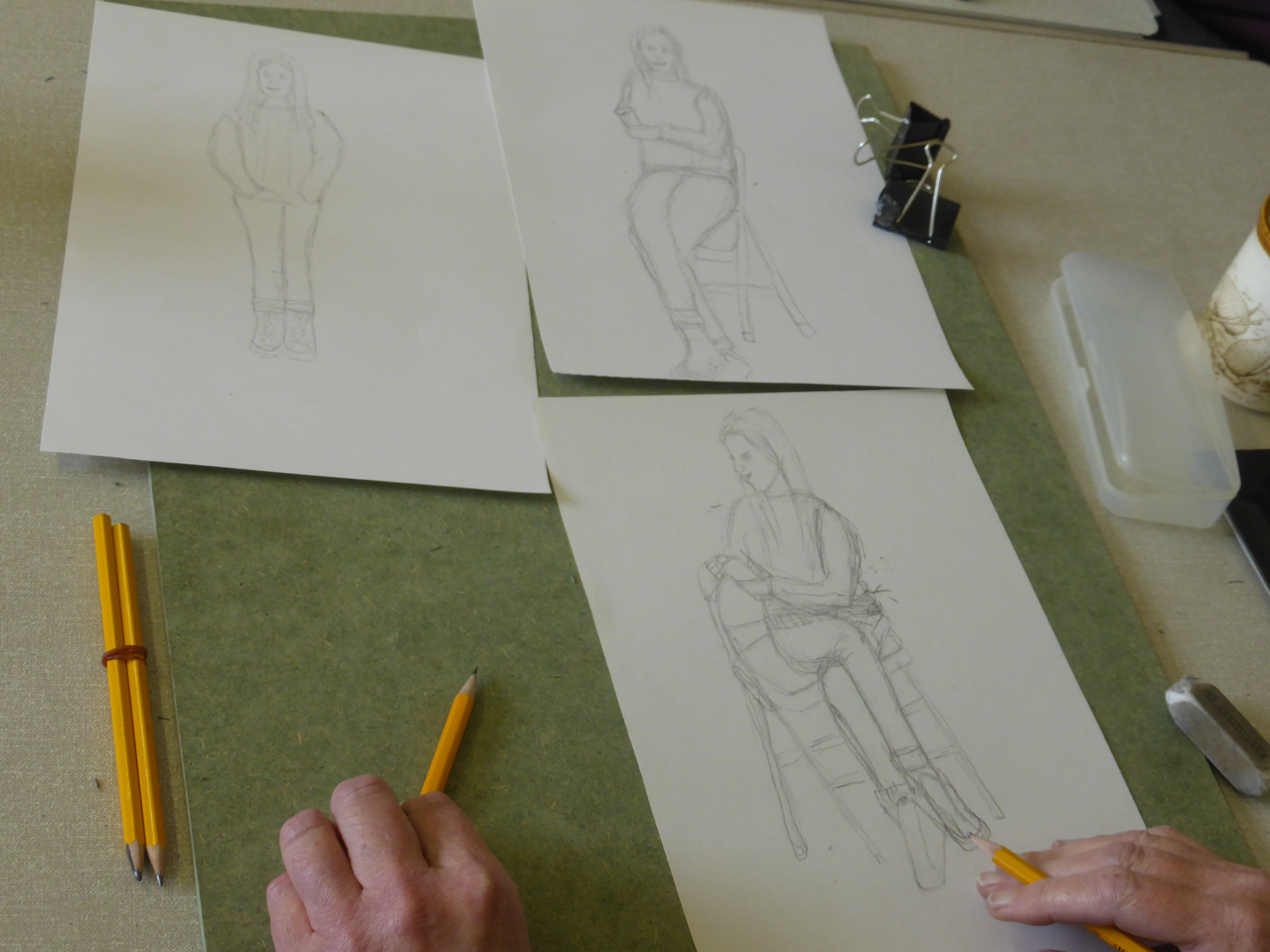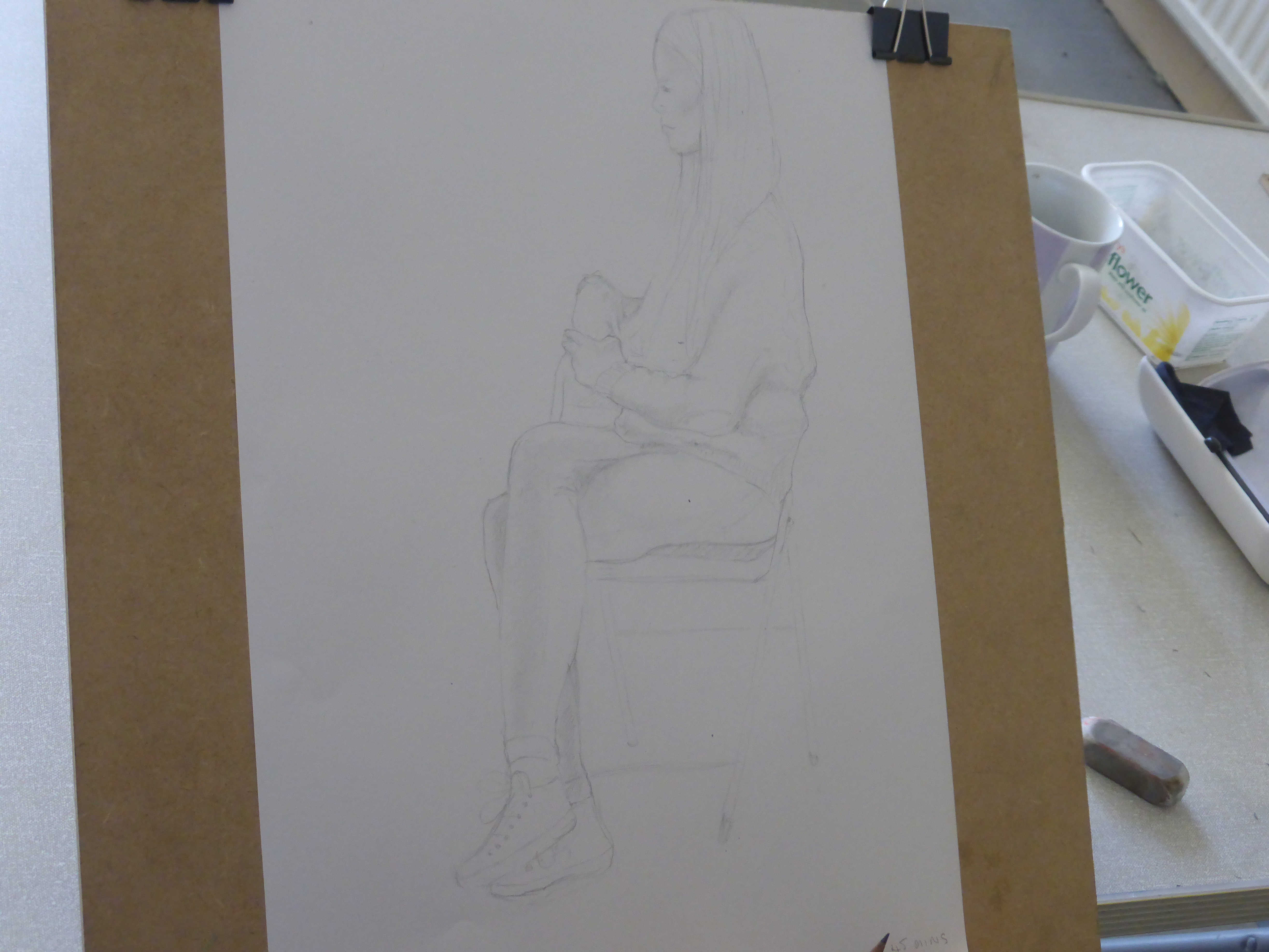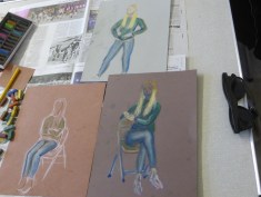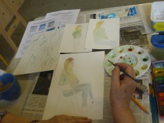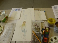 Sadly, this was the last week of classes for this term and you all finished with a great finale! Our life model Ellie came in to pose for us which meant the Watercolour class got the chance to build on the figure painting techniques they practised last week but this time with the real thing. Working from photographs is great for practise but you always get much better results with a real model infront of you. The Drawing class looked mainly at 2 key elements of figure drawing – proportion and shape. The Pastel class were also able to practise controlling their colour accuracy for hair and flesh tones.