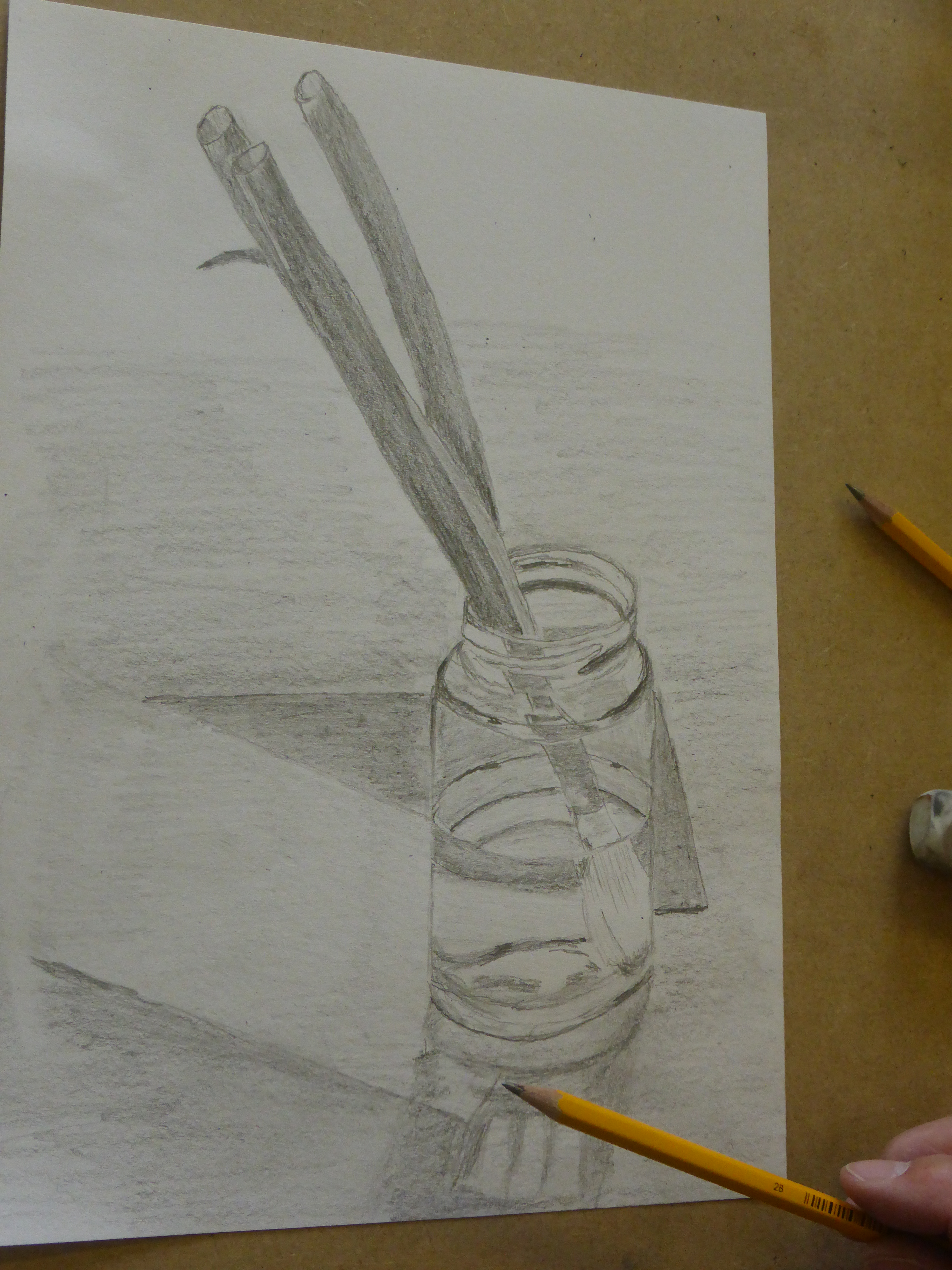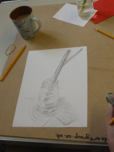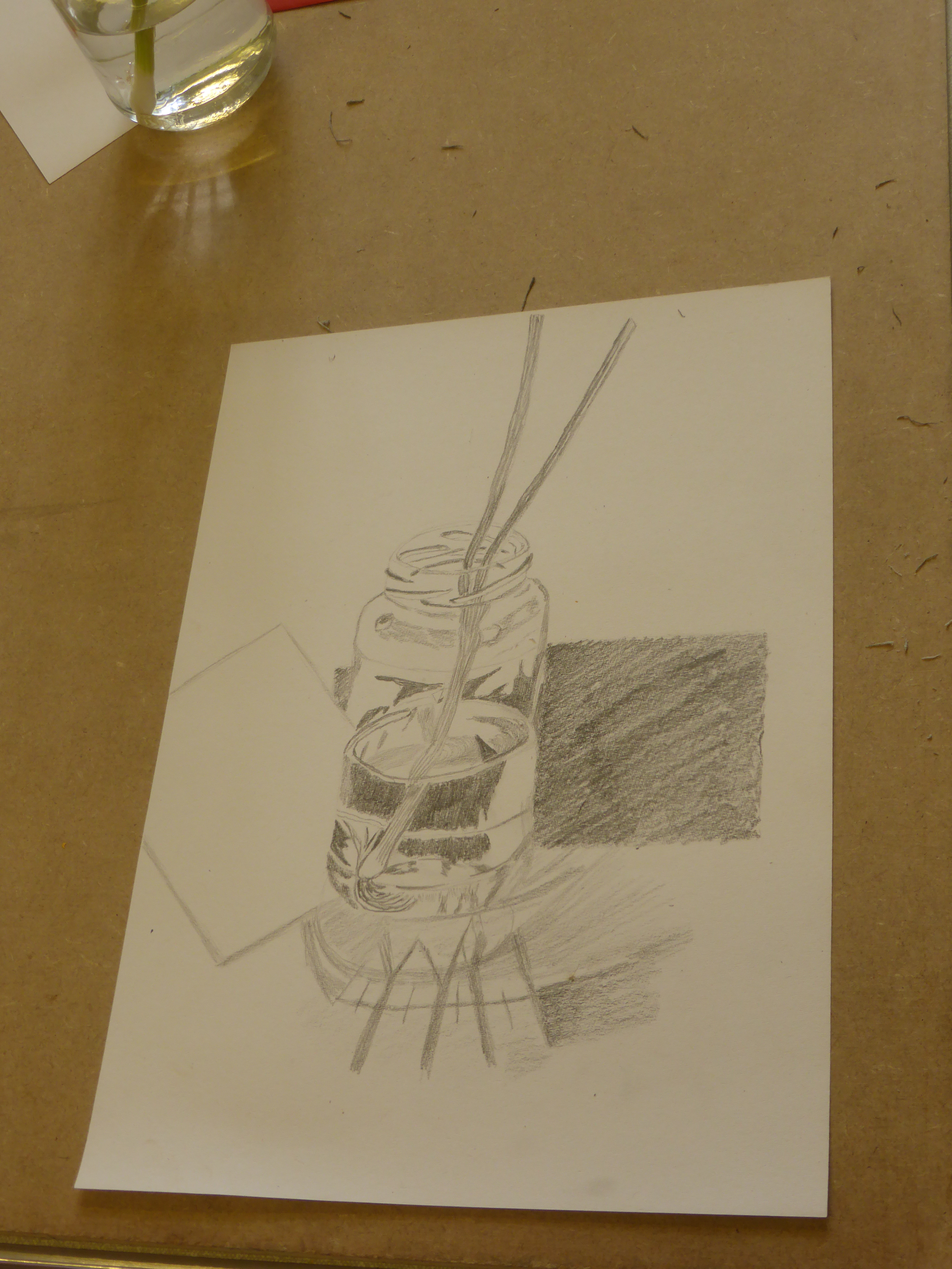 You exceeded all my expectations this week. Not only did I give you glass to draw, you also had water to contend with and all the challenges of reflections and distortions that come with it. As always we broke up the task into different steps to make it simpler, giving us some fantastic results. I’d be very happy to display any of todays drawings in the exhibition, so I hope you’re all going to be brave and submit some work.