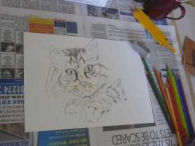 But before we get to that, let’s have a look at what you’ve been doing this week. The Animal Portraiture Course tackled yet another new animal and a new technique. The Pattern Course took inspiration from Japanese prints. The Drawing Course 2 tried out different backgrounds for their drawings. The Drawing Course 1 practised proportion when drawing the human figure. As you can see below, you did some fantastic drawings. I hope we’re going to see some of them in the exhibition so everyone else can enjoy them.