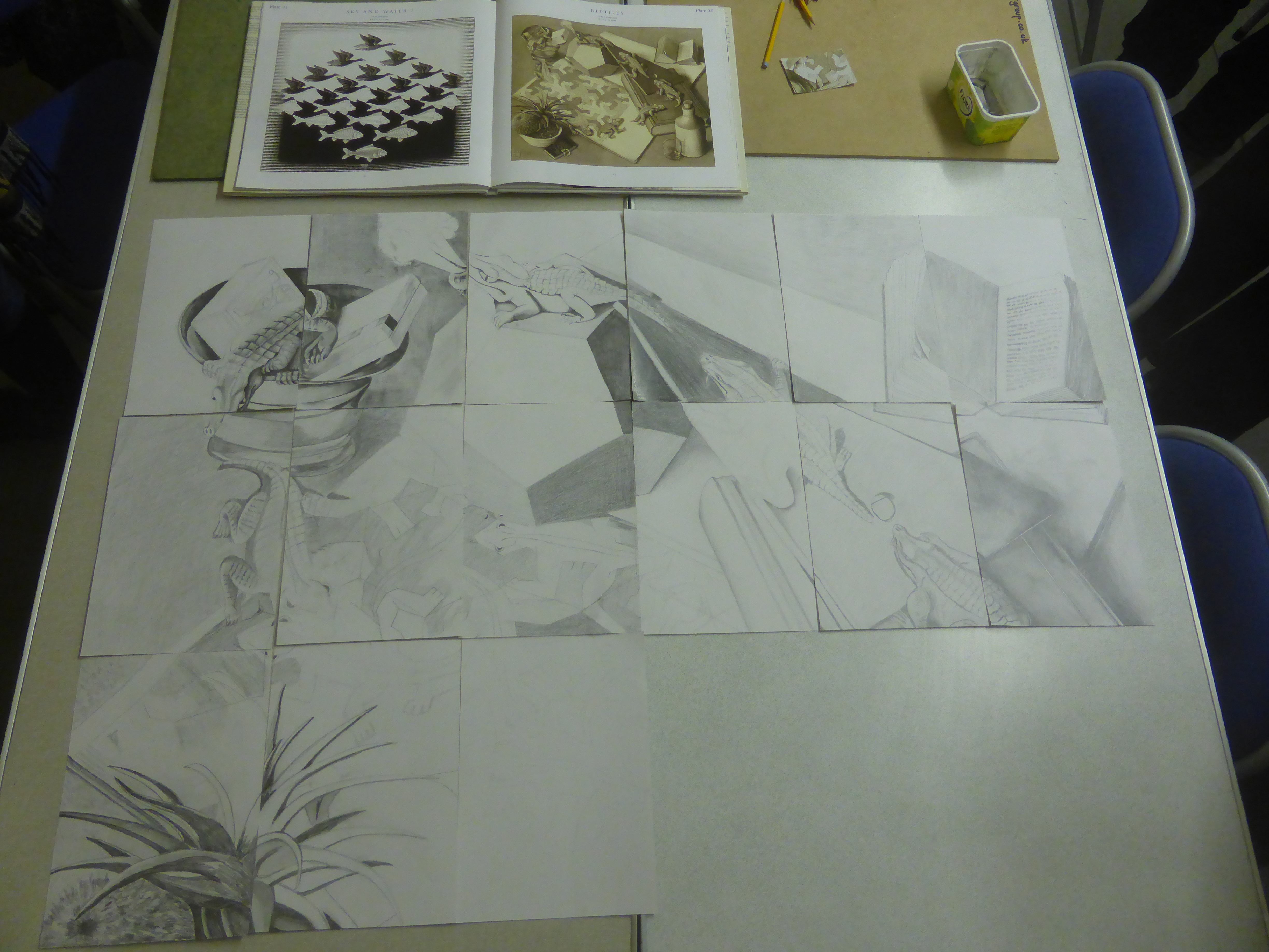 Sadly this week was the last week of classes but what a finale! Oil pastel parrots, Tunisian ceramic patterns, Escher print jigsaws and a life model thrown in for good measure! I’m so proud of the progress you’ve all made this term. You’ve tackled every challenge I’ve thrown at you head on with lots of enthusiasm and look what you’ve achieved in just 8 weeks. It’s been a great term and you’ve all been such fantastic students. I hope I’ll see lots of you back in class when the new courses start in January. For further course information go to the courses page by clicking here: Courses For 2016.