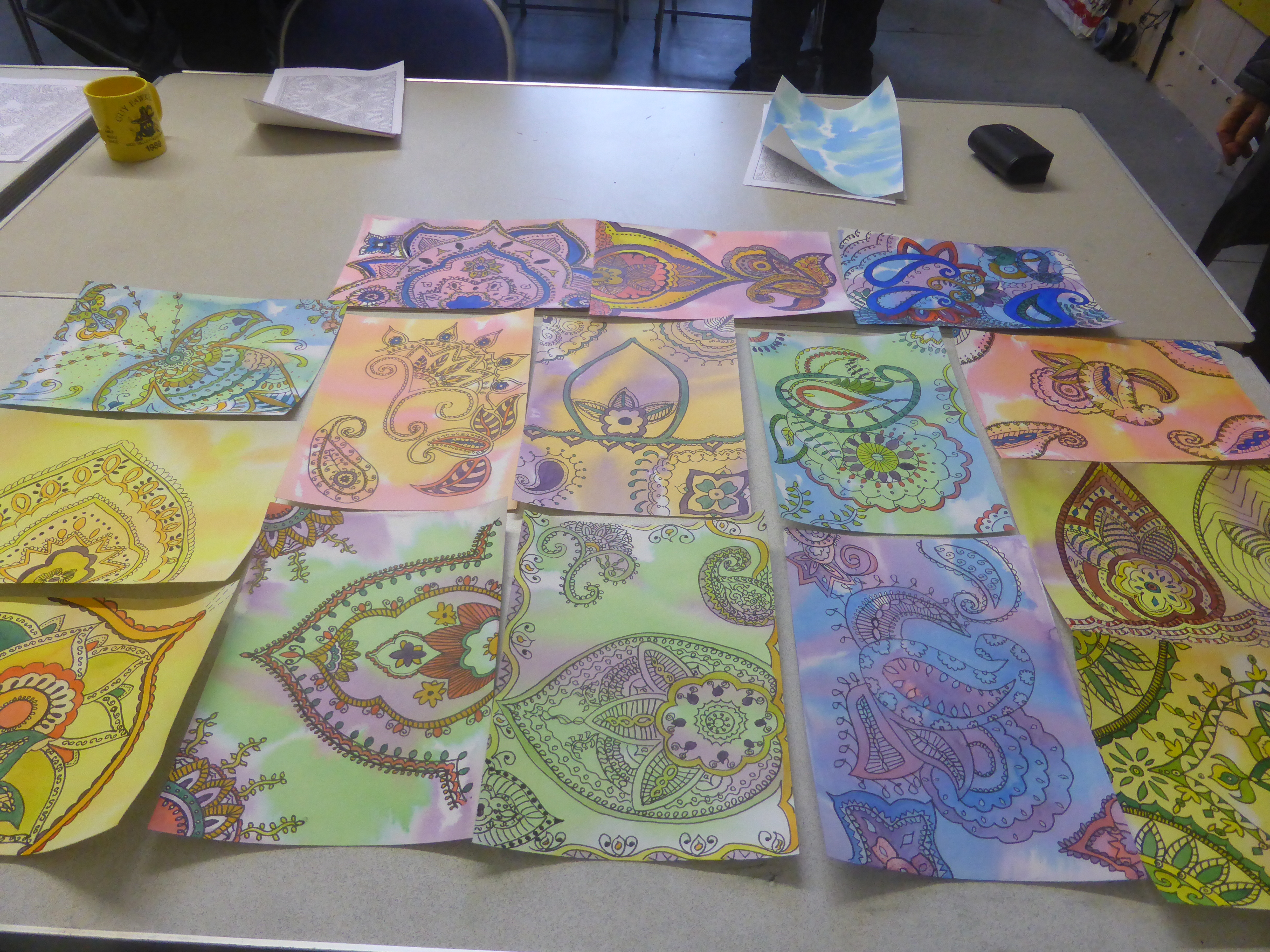 You did fantastic work this week! The pattern course produced some amazingly colourful pictures based on African prints which looked great, especially when we arranged them altogether. The drawing course took on a new challenge in trying to create different tones by using just a black pen and cross-hatching technique. We worked on our speed in the animal portraiture class by making some very quick sketches of meerkats one after another to create a more spontaneous style of drawing – very handy if your subjects won’t stay still for long. The pastel class tried out a new technique using only 3 colours and working on a varied background. It was a completely different style to how you have been working so far, so well done to everyone for having a go. I am loving seeing all the wonderful pictures you’re producing and seeing such varied styles of working. I can’t wait to see what you all come up with next week.