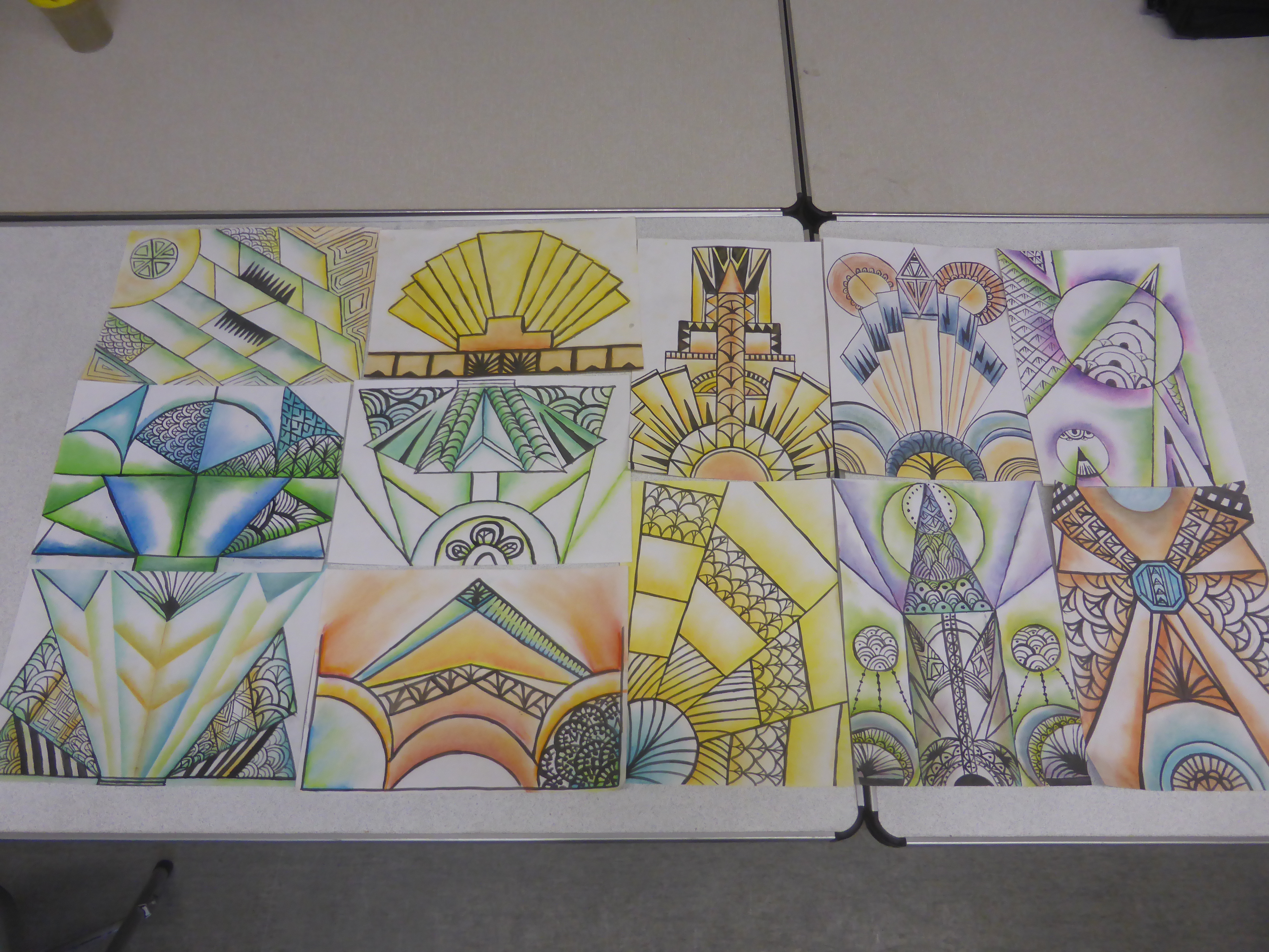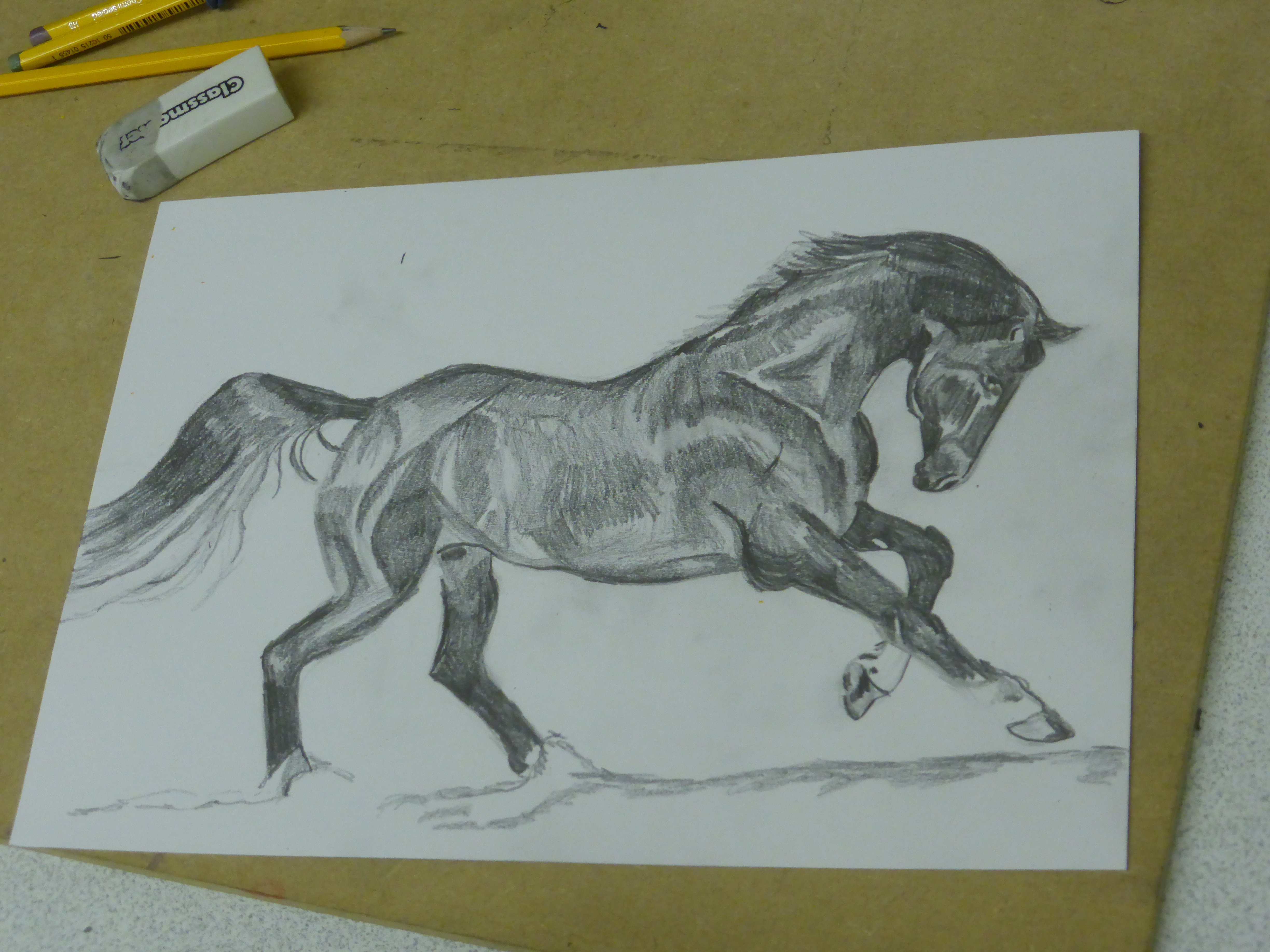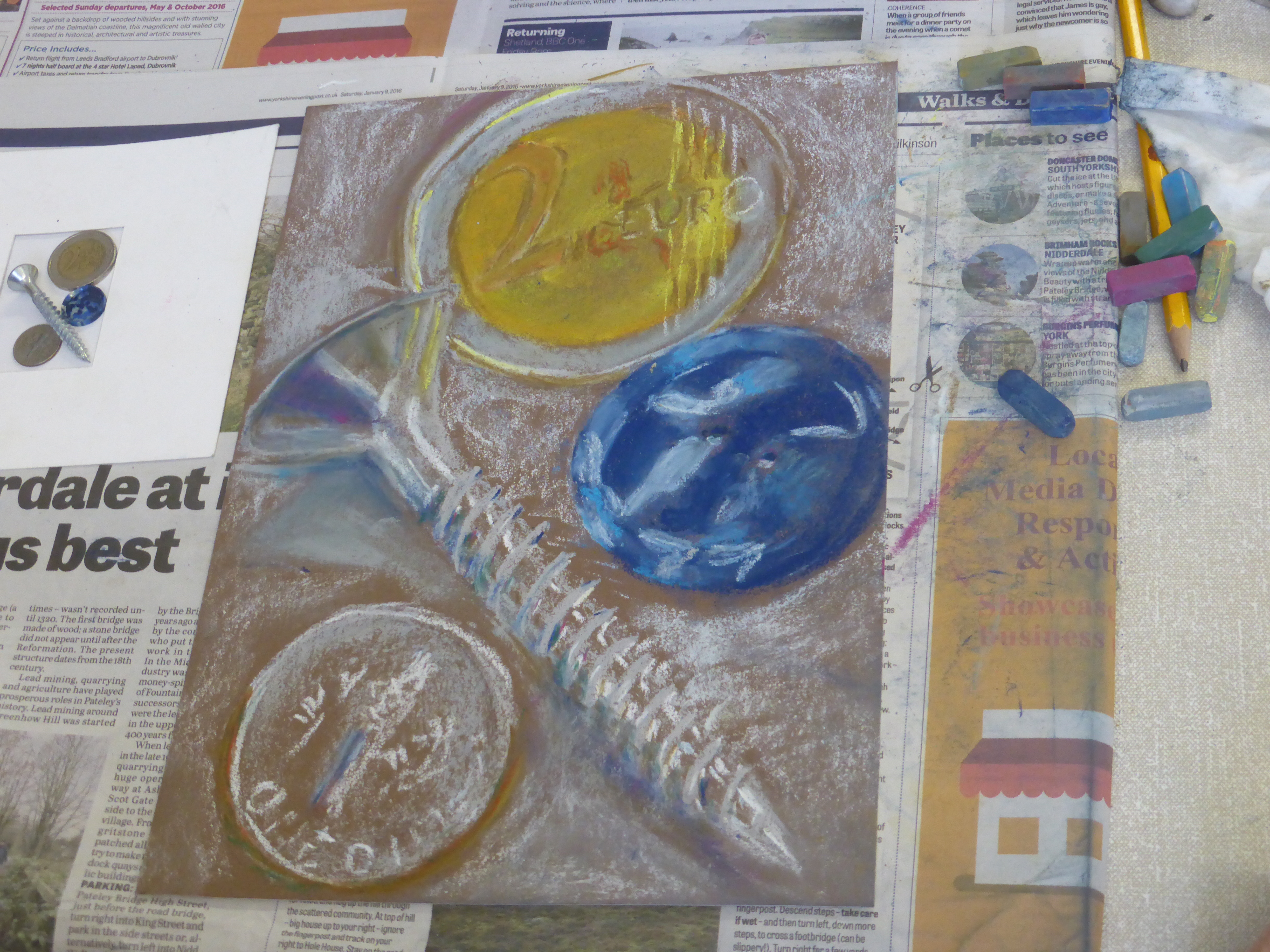 This week the Pattern course went back to the roaring 20s with some fab paintings based on Art Deco. The Drawing course looked at how glass and water can distort objects and how to go about drawing them. Not an easy task but we broke it down into small steps and you really got your heads around it. The Animal portraiture course tackled one of the most difficult animals to draw – horses, with some beautiful results. The Pastel course looked at scale and how to enlarge objects in a picture without losing proportion. Well done everyone, another week of wonderful pictures! Every single one of you has made progress since the start of the course and I’m really pleased with how well you’re all doing, so I hope you are too.