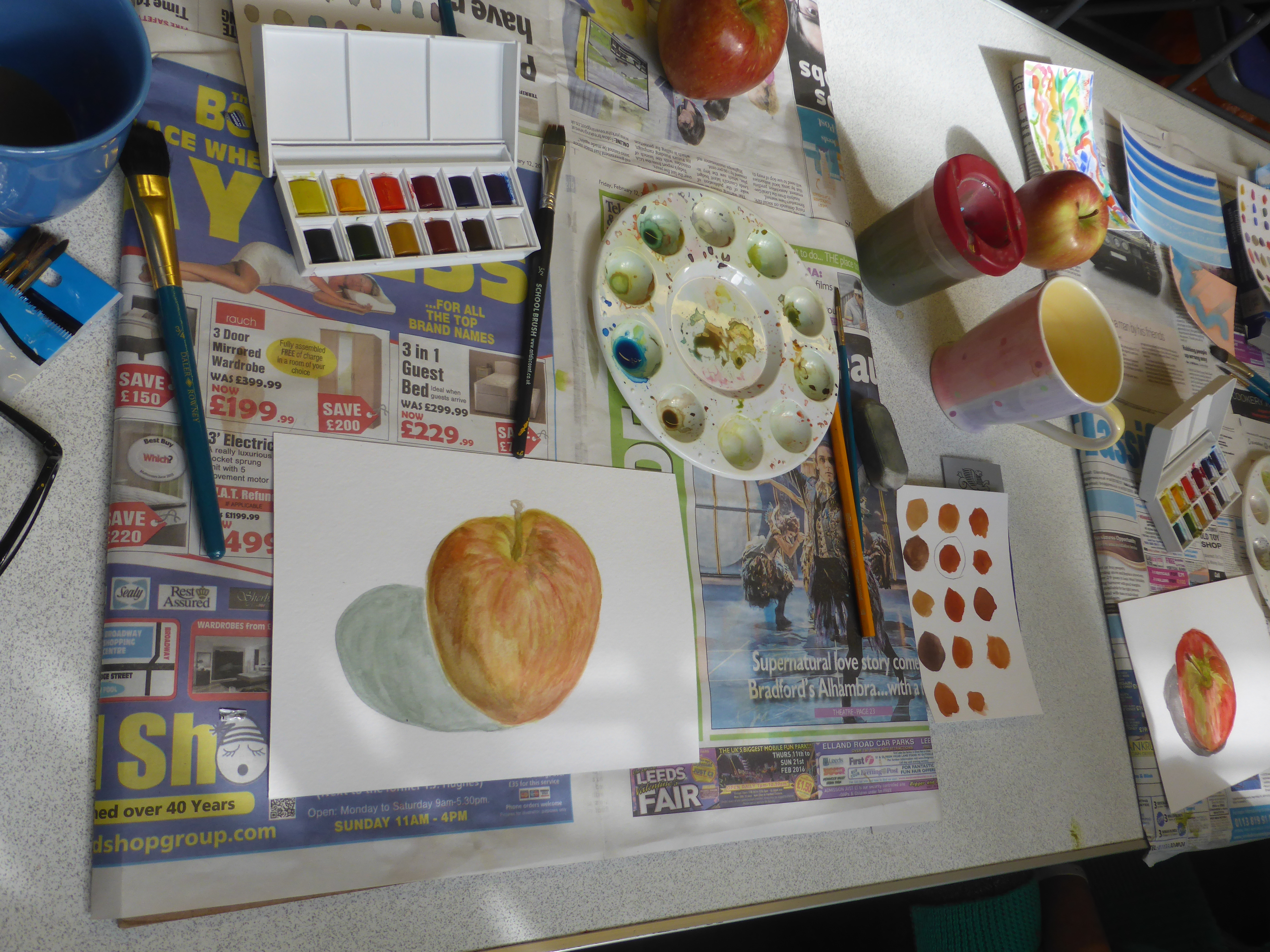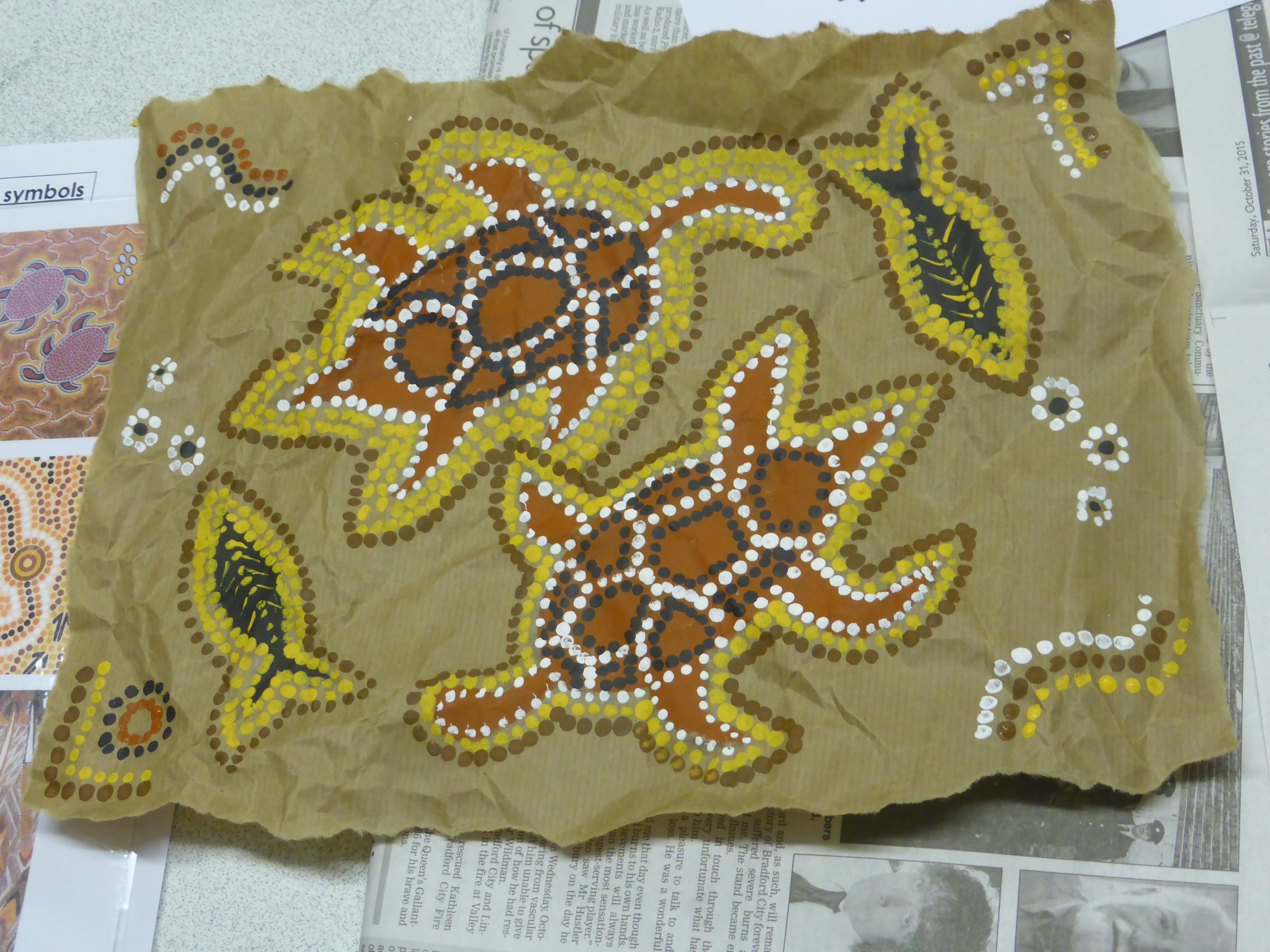 Finally, the new term has started for Leeds Art Group and already I can see some very promising talent emerging. The Beginners Drawing Course Level 2 worked on some basic drawing skills and built up a picture using simple shapes. The Beginners Animal Portraiture Course began with a pencil drawing of a dog. The Beginners Pattern Course created their own interpretations of Aboriginal paintings and the Beginners Watercolour Painting Course used different exercises to explore colour mixing. A great first lesson for all the courses, well done everyone. Hope it’s whet your appetite, there’s plenty more to come.