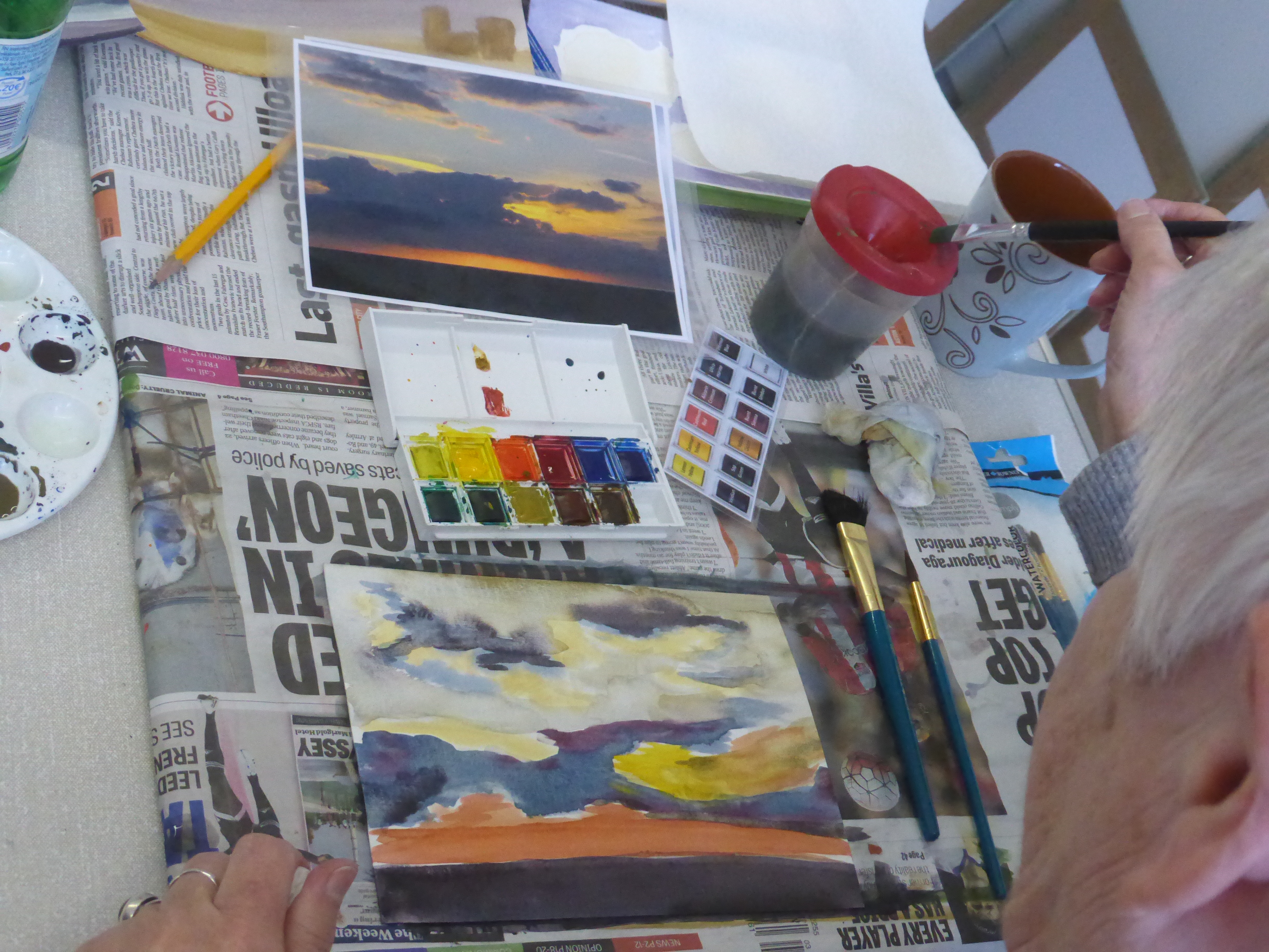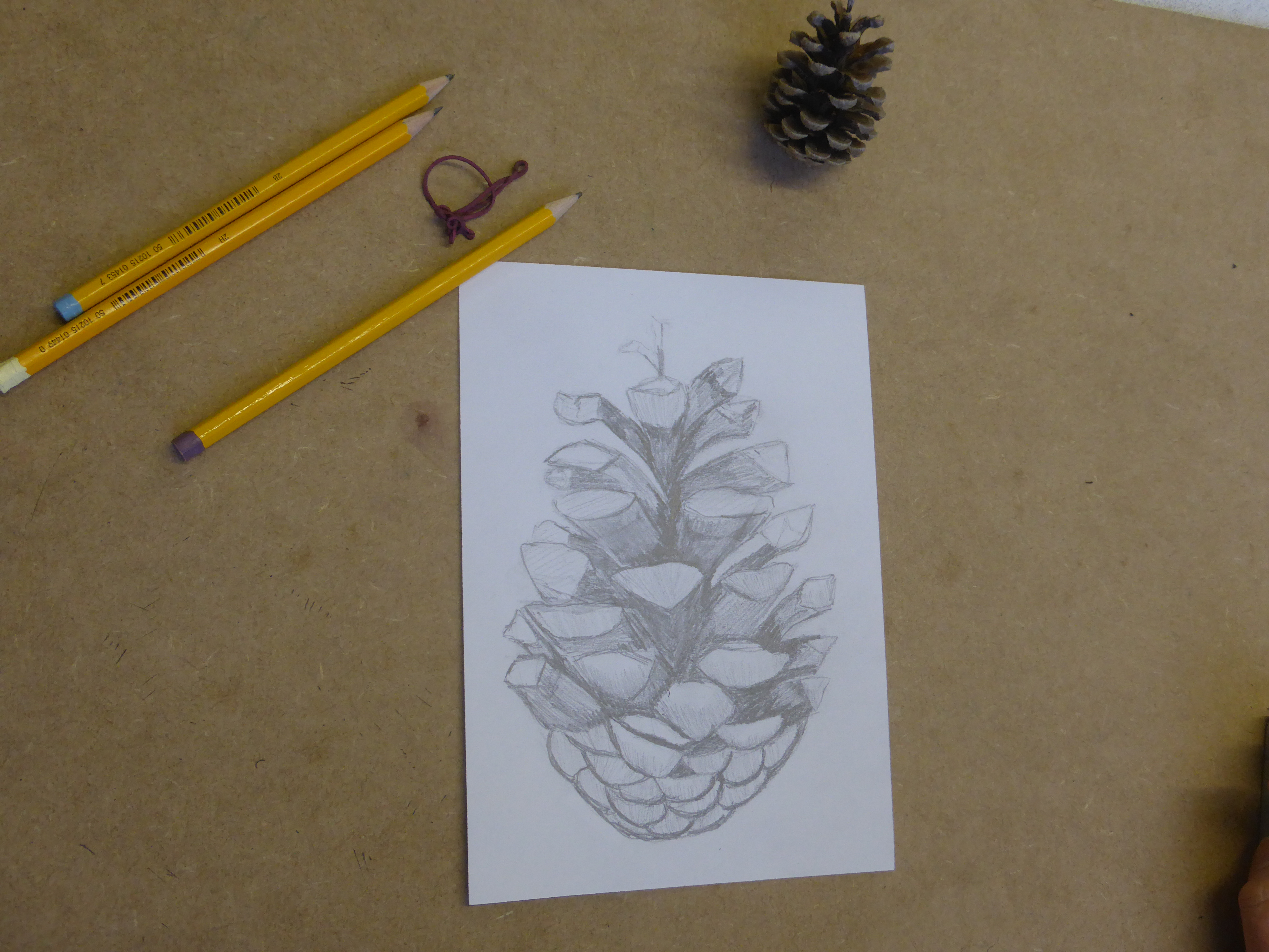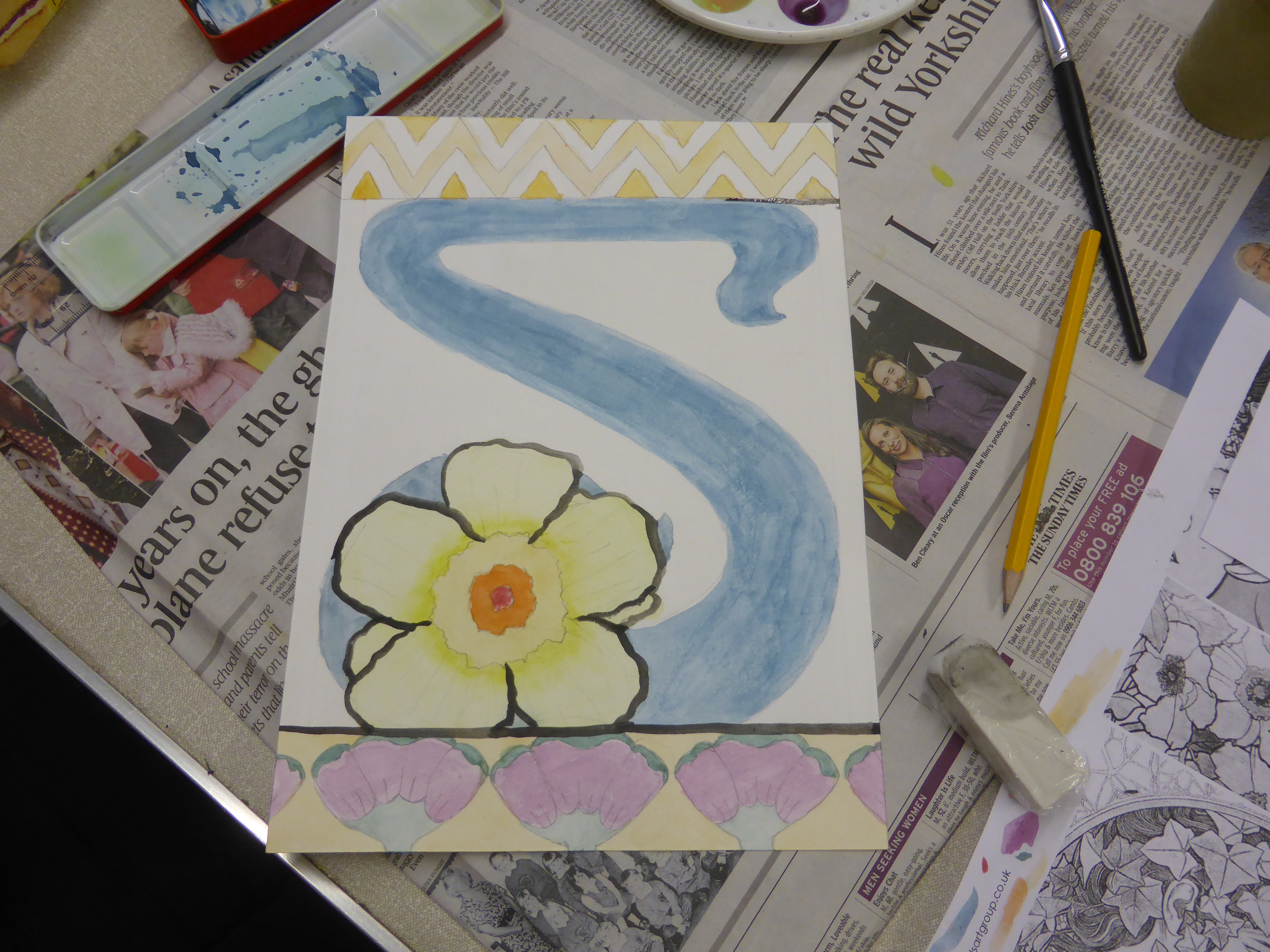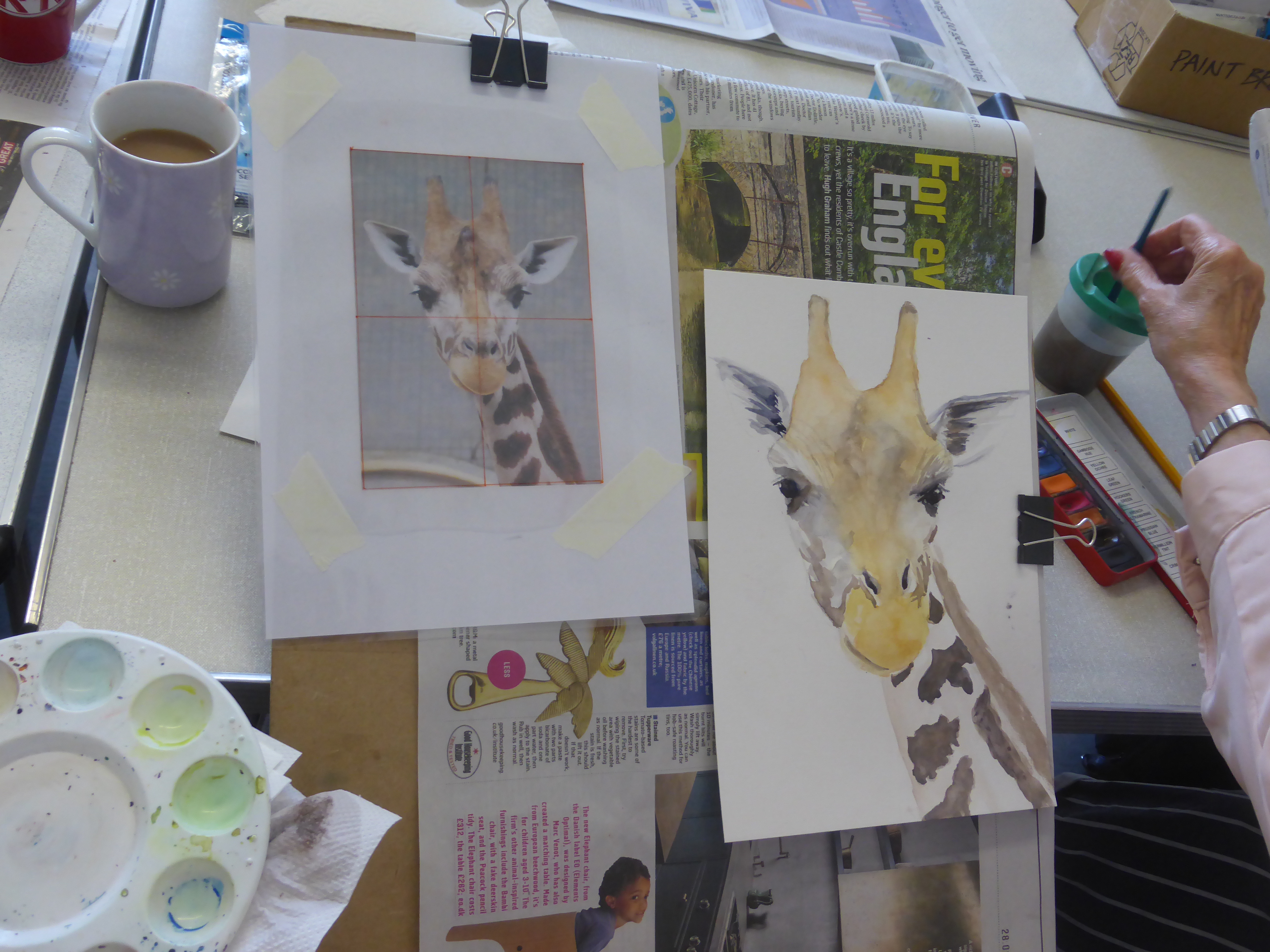 This week we all continued to develop our skills further. The Drawing course did some direct observation drawings from pine cones – very easy to lose your place with all those “prongs” but you all did brilliantly. We did some watercolour paintings of Giraffes in the Animal course using a restricted palette of just 5 colours and with some great results. The Pattern course took inspiration from Art Nouveau to create some beautiful decorative lettering and the Watercolour course used several different techniques to create fantastic sky effects. Great work everyone.