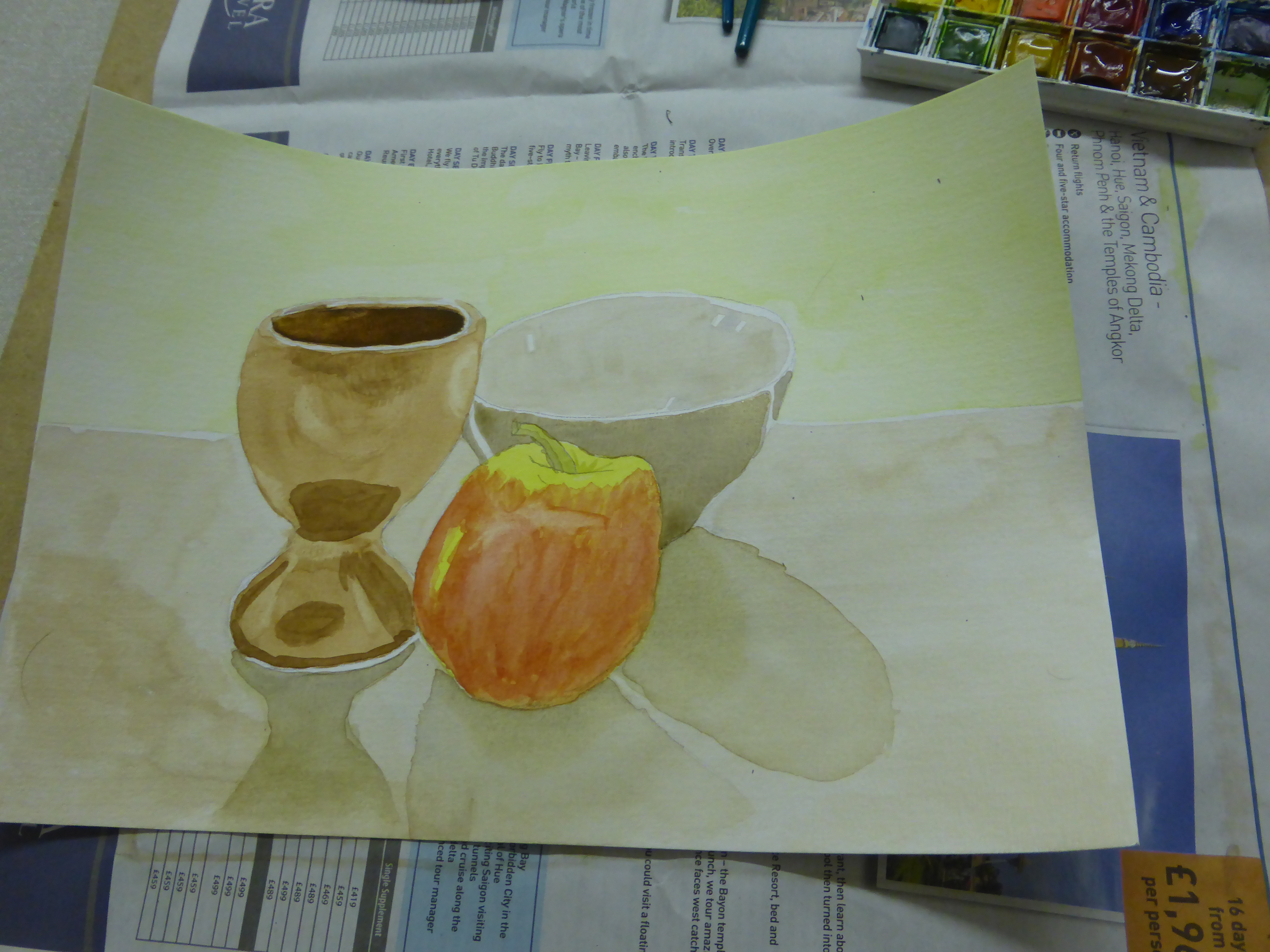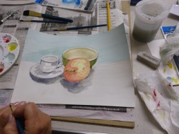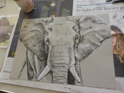 In week 2 we developed our skills further. The Animal Portraiture course used pastel and charcoal to create some really expressive drawings of elephants. The Watercolour course built on the techniques they learned last week and added an extra challenge of painting shadows on white objects – with some great results. The Portraiture course started to look at the individual features of a portrait, starting with mouths and using a cross-hatching technique to create tone. Well done everyone. The photos show how well you are all doing and it’s only week 2! You’re showing some real potential already. Let’s see what you can do next week.