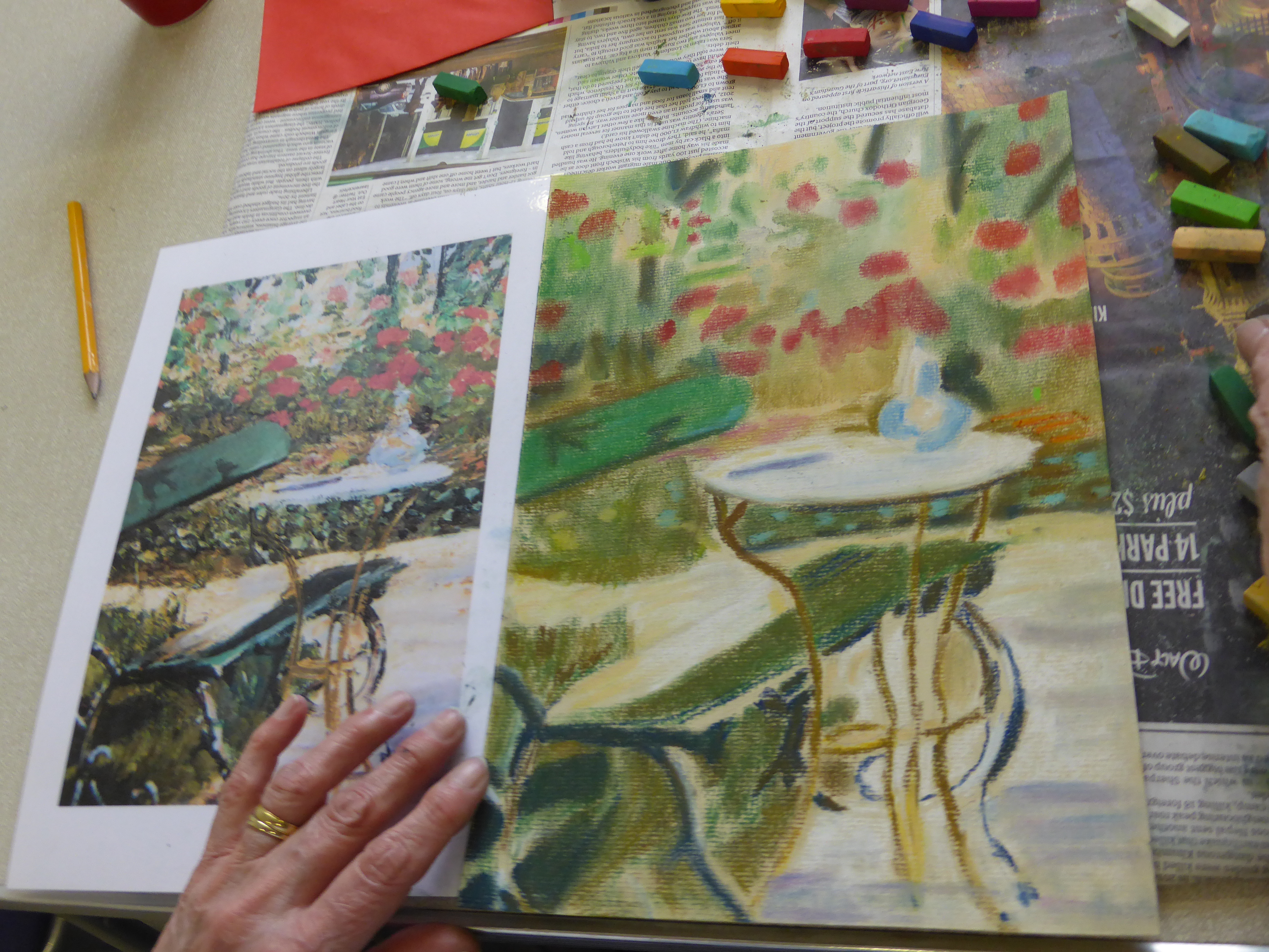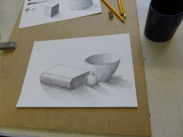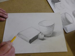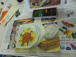 It’s great to see familiar faces back in class and also some brand new ones. I hope you are all ready to get creative. If I had to give you one piece of advice right now then I would tell you to forget about any self doubts you may have had about coming to art classes. You’ve already done the difficult bit by joining the course. Now all you’ve got to do is relax and enjoy it. So give yourself a good pat on the back and hold onto that positivity for the rest of the term. This term we have 2 different courses running. The Beginners Drawing Course Level 2 started by using basic lines and shapes to build up a drawing and then using shading to make objects look 3 dimensional. The Beginners Pastel Drawing Course began by looking at Impressionist paintings to explore colour mixing and mark-making.