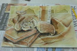 Last lesson the Beginners Drawing Course 2 tried out a few different exercises based on the theory of drawing with the right side of the brain. Then, whilst you were still trying to get your head around that, I threw in a couple of tasks based on negative space. There was a lot to think about but I hope you all enjoyed it. The Beginners Pastel Course had quite a difficult task in using a new technique to create a more sketchy style of working. This was very different from what you have done so far and well done to everyone for having a go. You can achieve some really interesting effects using this simplified colour palette on a prepared background.