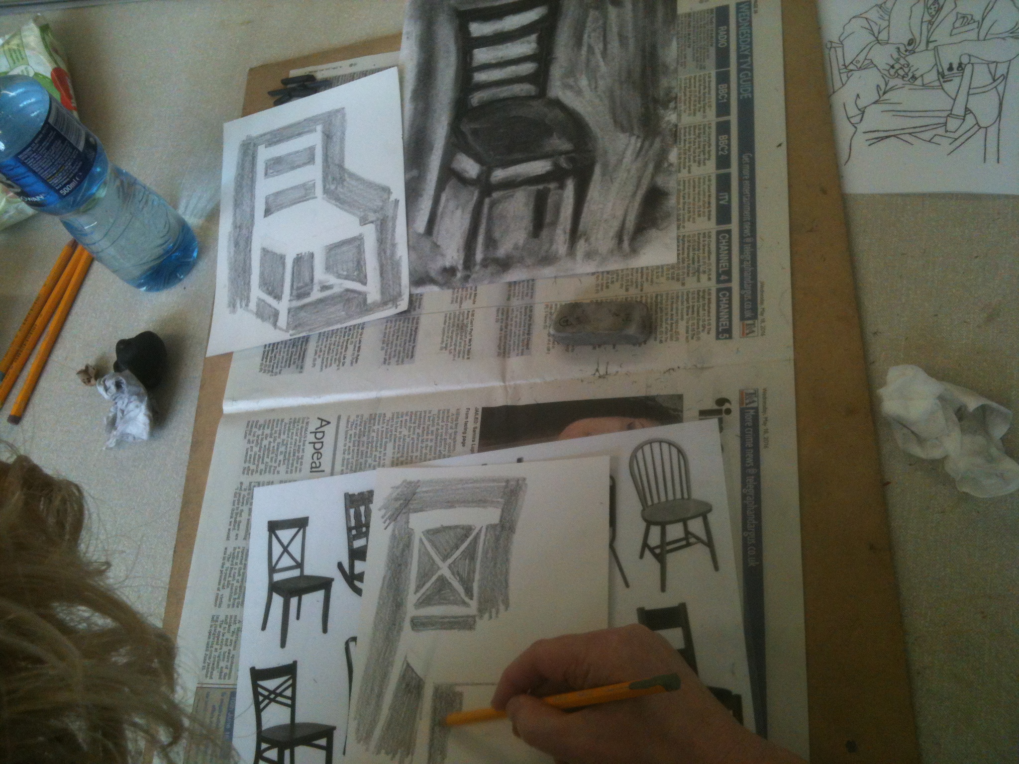Last lesson the Beginners Drawing Course 2 tried out a few different exercises based on the theory of drawing with the right side of the brain. Then, whilst you were still trying to get your head around that, I threw in a couple of tasks based on negative space. There was a lot to think about but I hope you all enjoyed it. The Beginners Pastel Course had quite a difficult task in using a new technique to create a more sketchy style of working. This was very different from what you have done so far and well done to everyone for having a go. You can achieve some really interesting effects using this simplified colour palette on a prepared background.