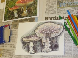 This week the Portraiture course started to fit all the different features together by drawing children from photographs. The Nature course used black biro to create tonal drawings of toadstools and added hints of colour using coloured pencils. The Drawing course had the daunting task of producing self-portraits this week and they did an excellent job. Great work everyone!