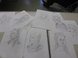 Here we are at the end of the course and look at the fantastic work you’ve produced. The Beginners Portraiture Course finally got to put everything they’ve learned into practice by drawing from our life models and what brilliant results. The Beginners Drawing from Nature Course finished with very colourful ink block drawings of blackberries. The Beginners Drawing Course Level 1 also had a life model and looked at the proportions of the human figure. Big thanks to our life models Kate and Ros. Great work everyone and thank you for all your help and hard work this term. You been lovely classes and I’ve thoroughly enjoyed teaching you all.