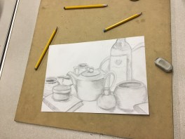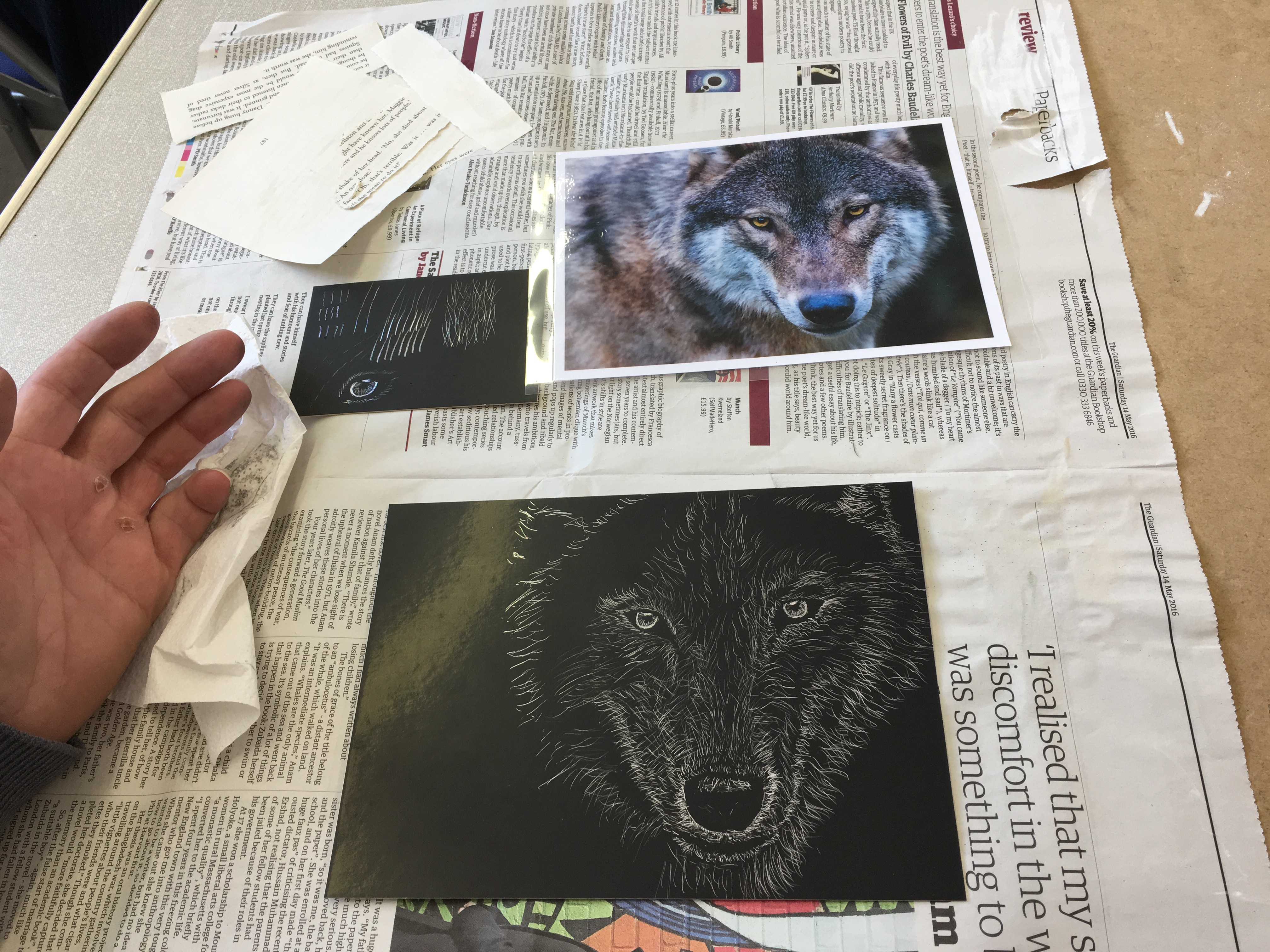 This week, the Beginners Drawing from Nature Course produced some beautiful, soft pastel drawings of hydrangea flowers. Great use of tone and colour mixing everyone! The Beginners Drawing Course Level 1 had manmade forms as their subjects this week. A little bit more challenging than last weeks natural forms but you all rose to the challenge – well done! The Beginners Animal Portraiture Course 2 tried out another different technique, this time using scraper board to make dramatic drawings of a wolf. Great work everyone – keep it up!