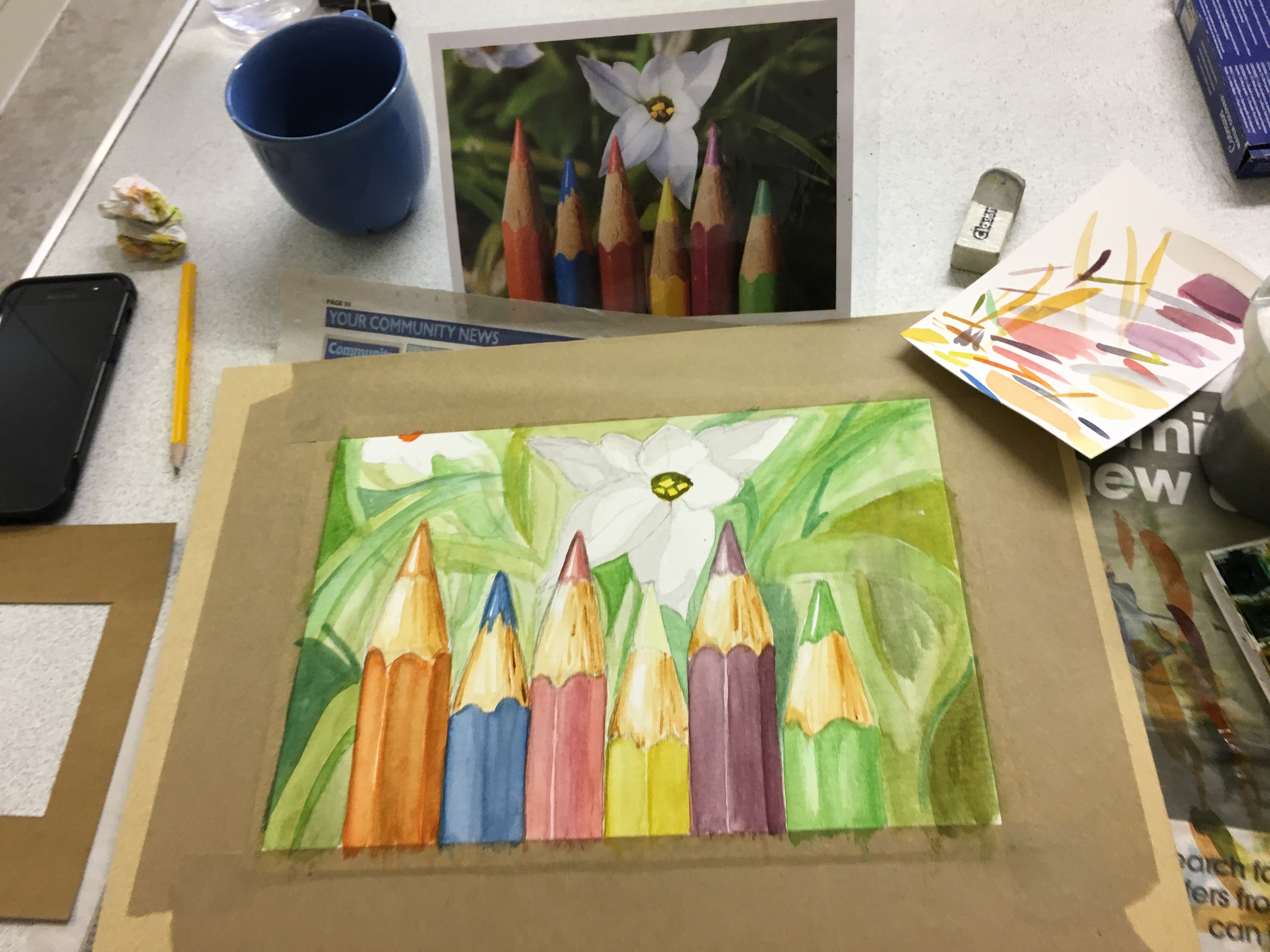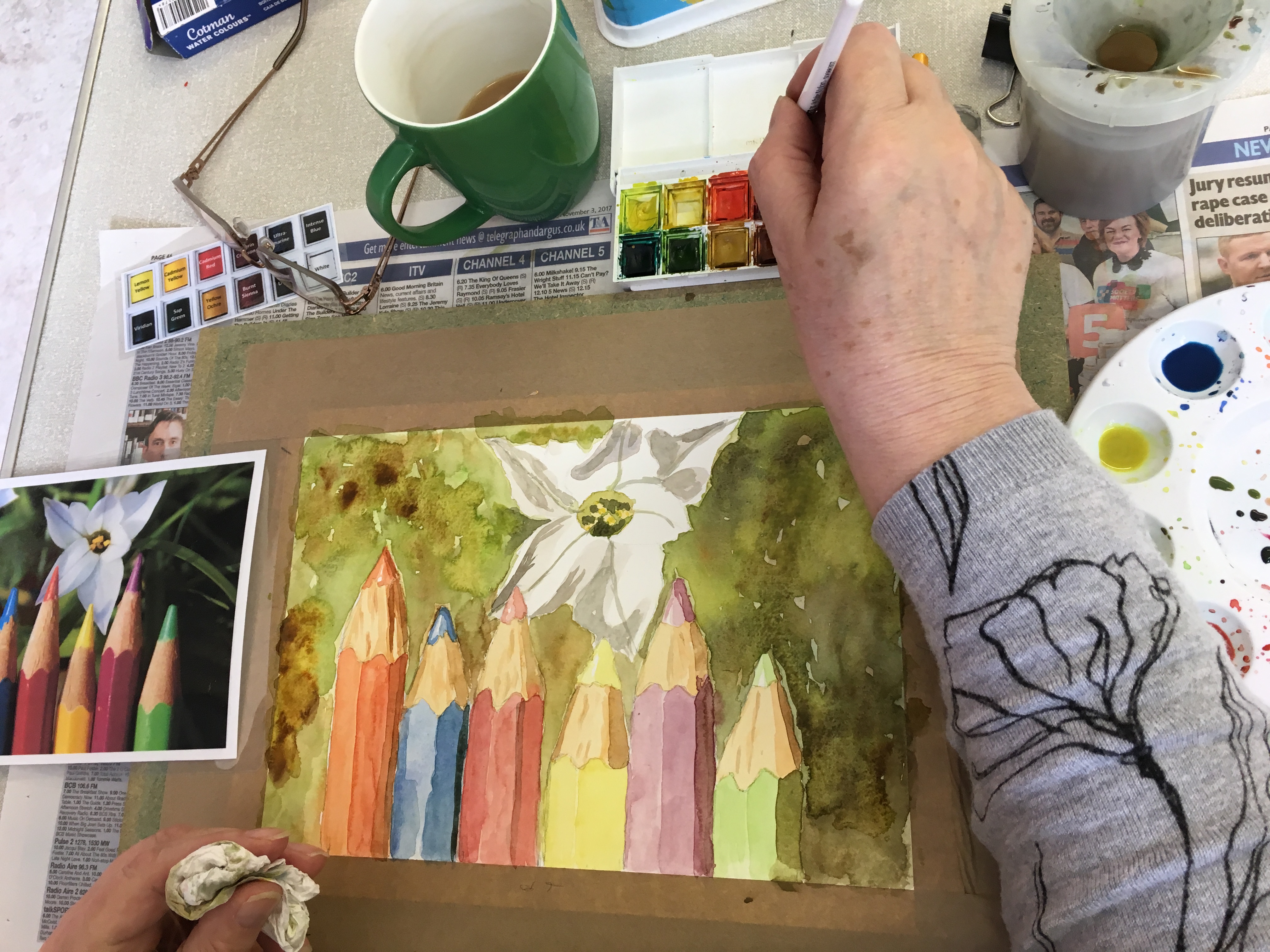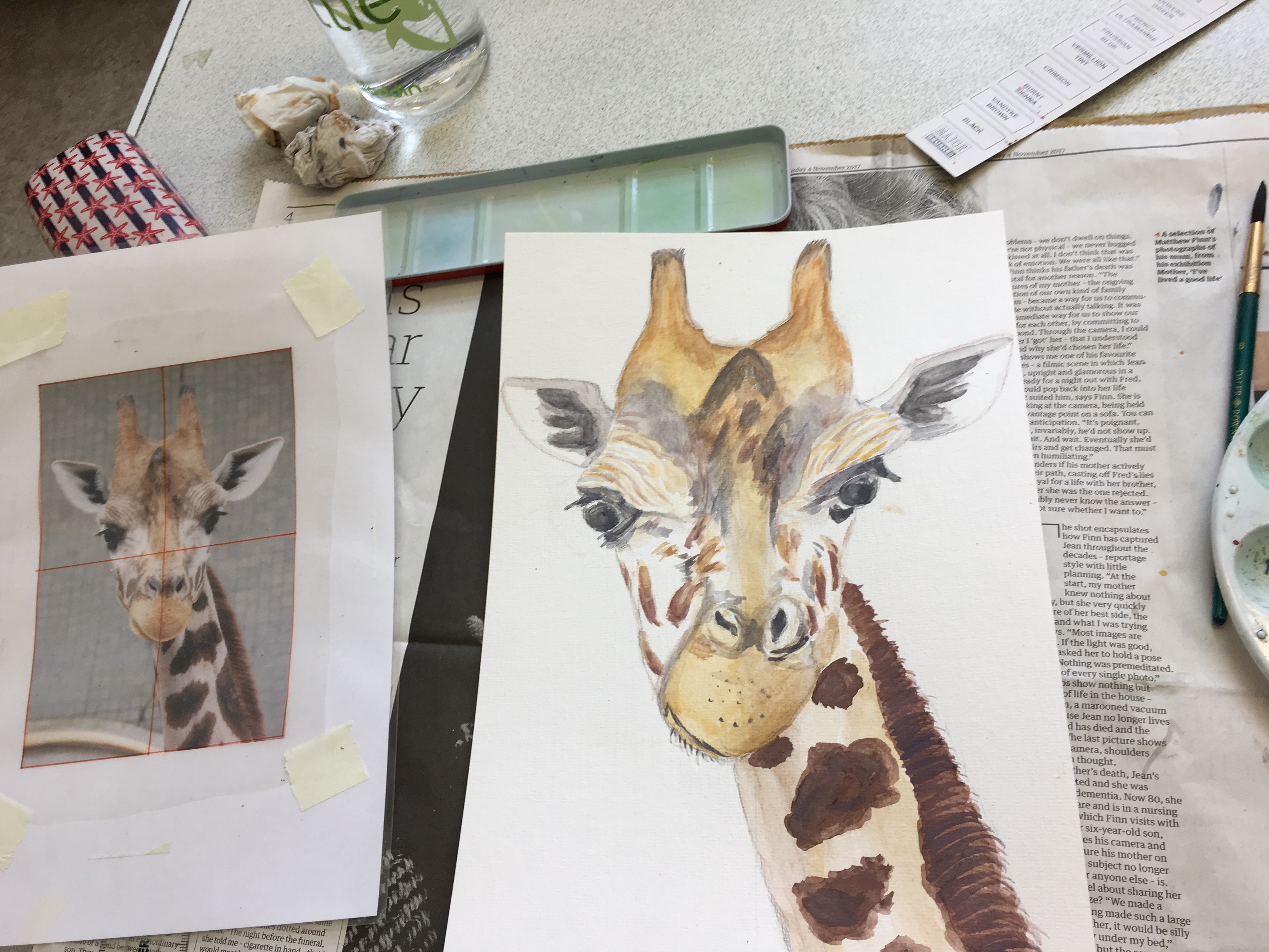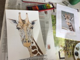 This week the Beginners Watercolour Course 2 combined both their colour mixing and layering techniques to create these really colourful paintings of pencils. Great work everyone, you are really getting the hang of it. The Beginners Animal Portraiture Course 1 also used watercolour to produce these fantastic paintings of giraffes using only 5 different colours.
