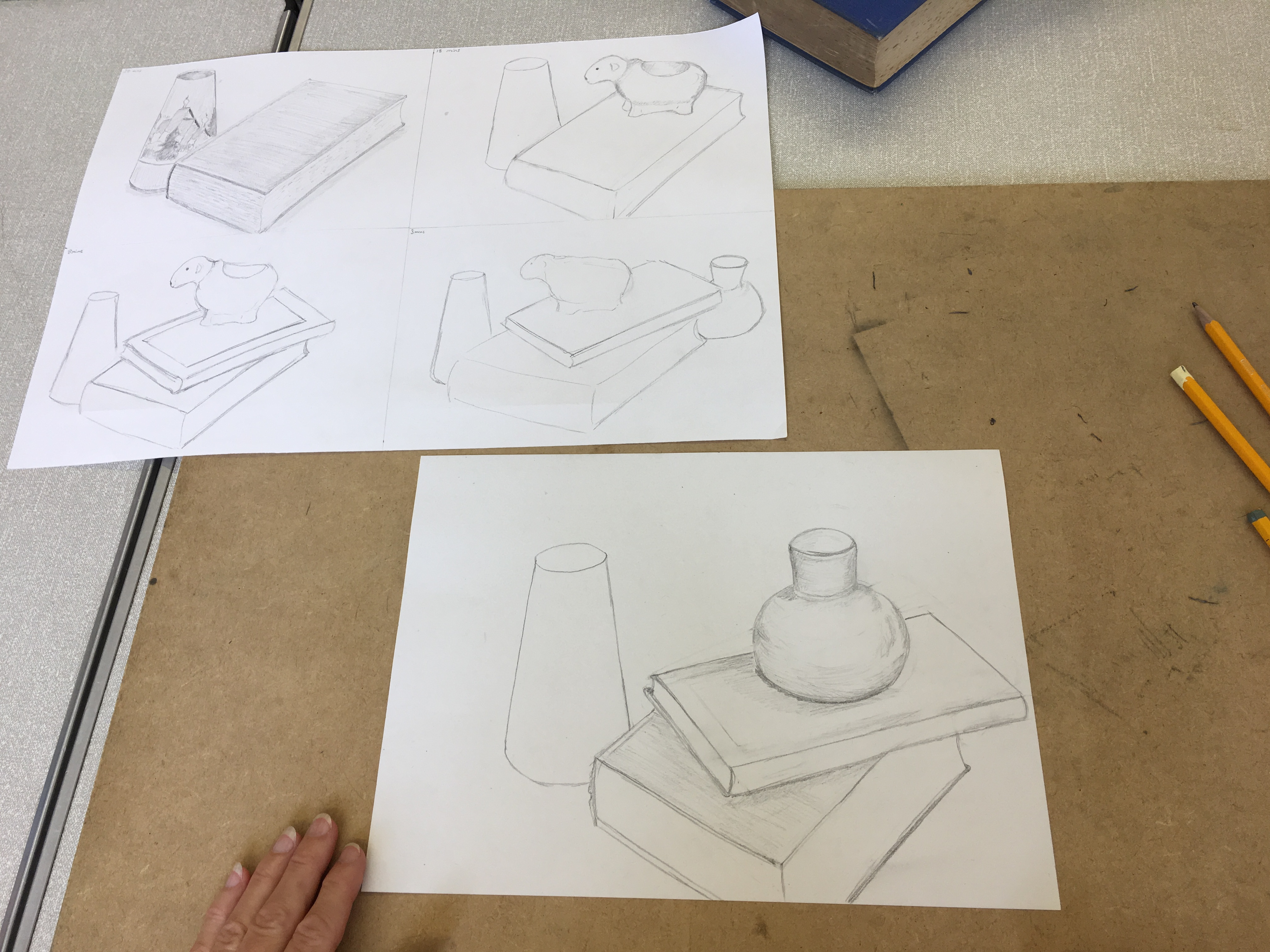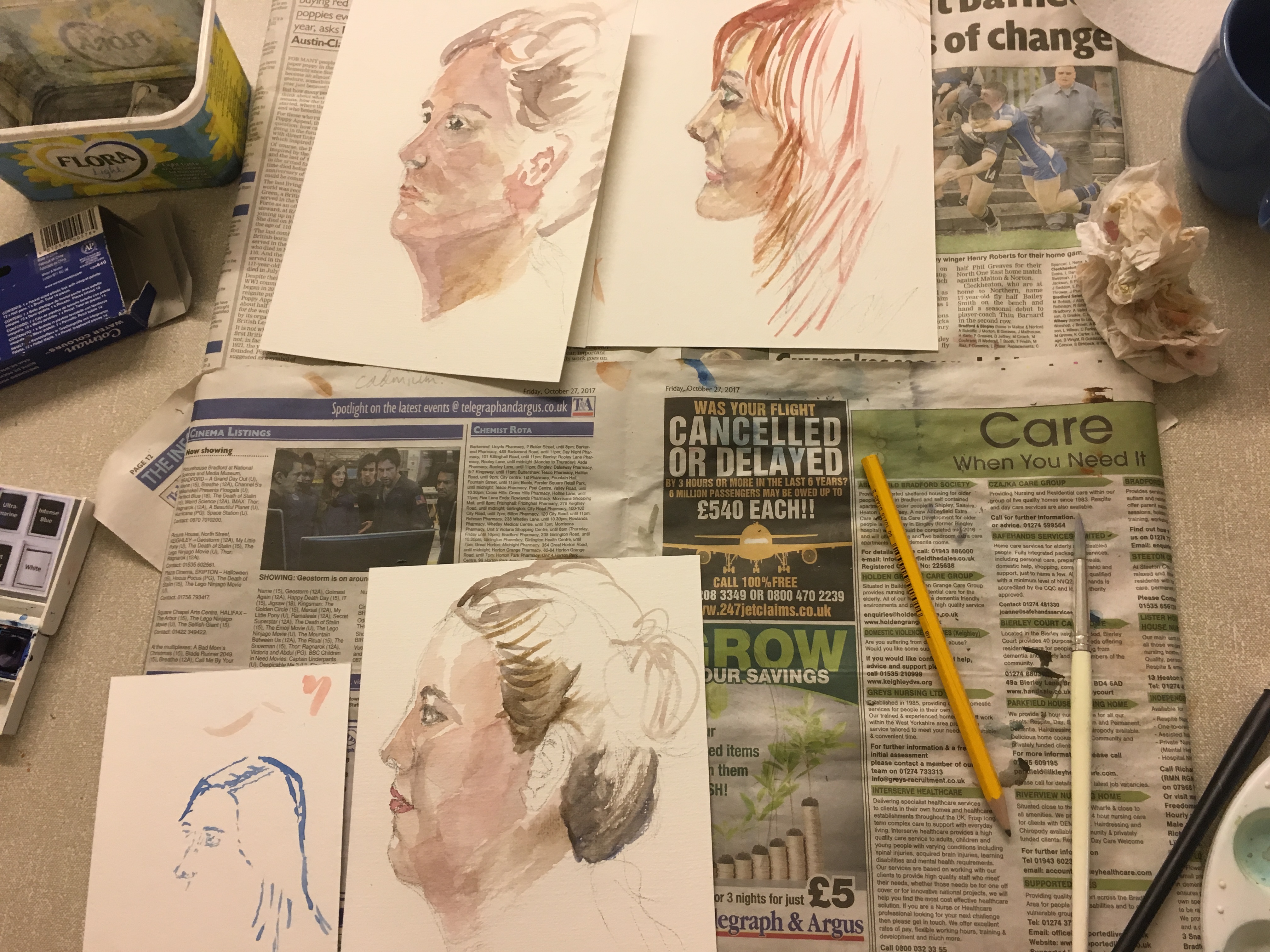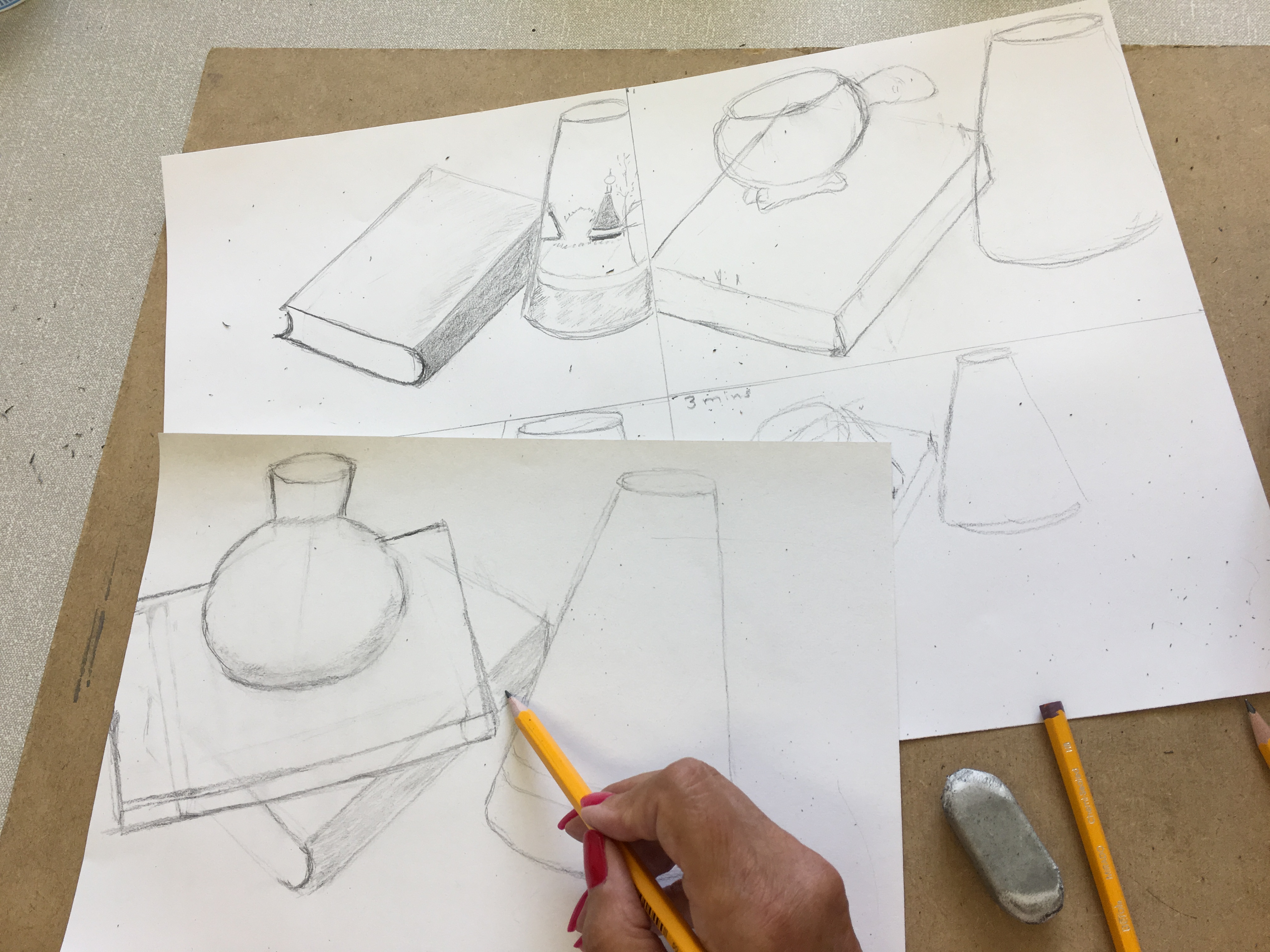 In this week’s lessons the Beginners Portraiture Course Level 2 had life models to paint. You all did a fantastic job, especially as you didn’t have a lot of time to spend on these paintings, well done! The Beginners Drawing Course Level 1 did some timed drawings of a still life composition in order to work on proportion skills.
