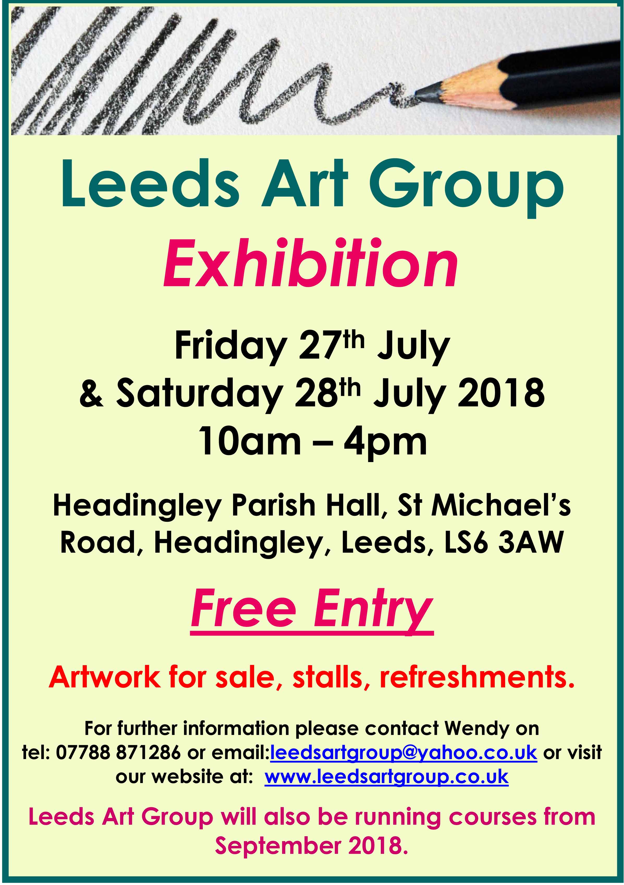 It’s finally here! The Leeds Art Group Exhibition is this week and everyone is welcome to come along.