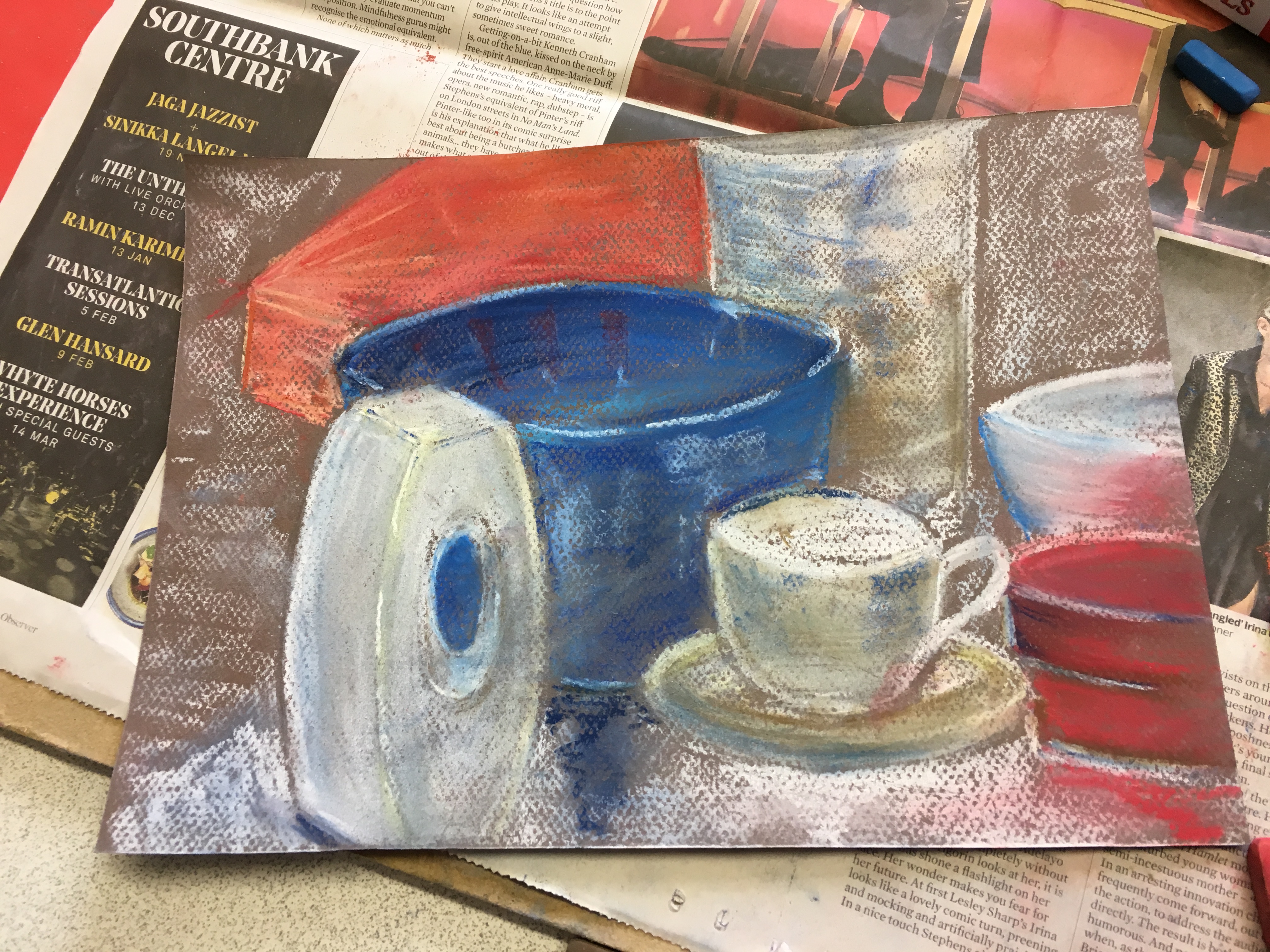 This week the Beginners Birds Drawing Course used collage and pen to create these fantastic pictures of Herons. The Beginners Pastel Drawing Course did a brilliant job of showing shadows on white objects without using black. The Beginners Portraiture Course Level 1 also used pastels this week the to show the light and dark tones of noses. Great work everyone and lots of progress being made already. Well done.