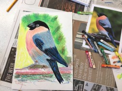 We had a gorgeous, colourful Bullfinch to draw this week in the Beginners Birds Drawing Course, created using oil pastels. In the Beginners Pastel Drawing Course we looked at scale and proportion whilst still practising all our techniques. We looked at eyes this week in the Beginners Portraiture Course Level 1. So much to think about when drawing eyes as they are often considered the most important part of a portrait. Another great week full of wonderful drawings – keep it up!