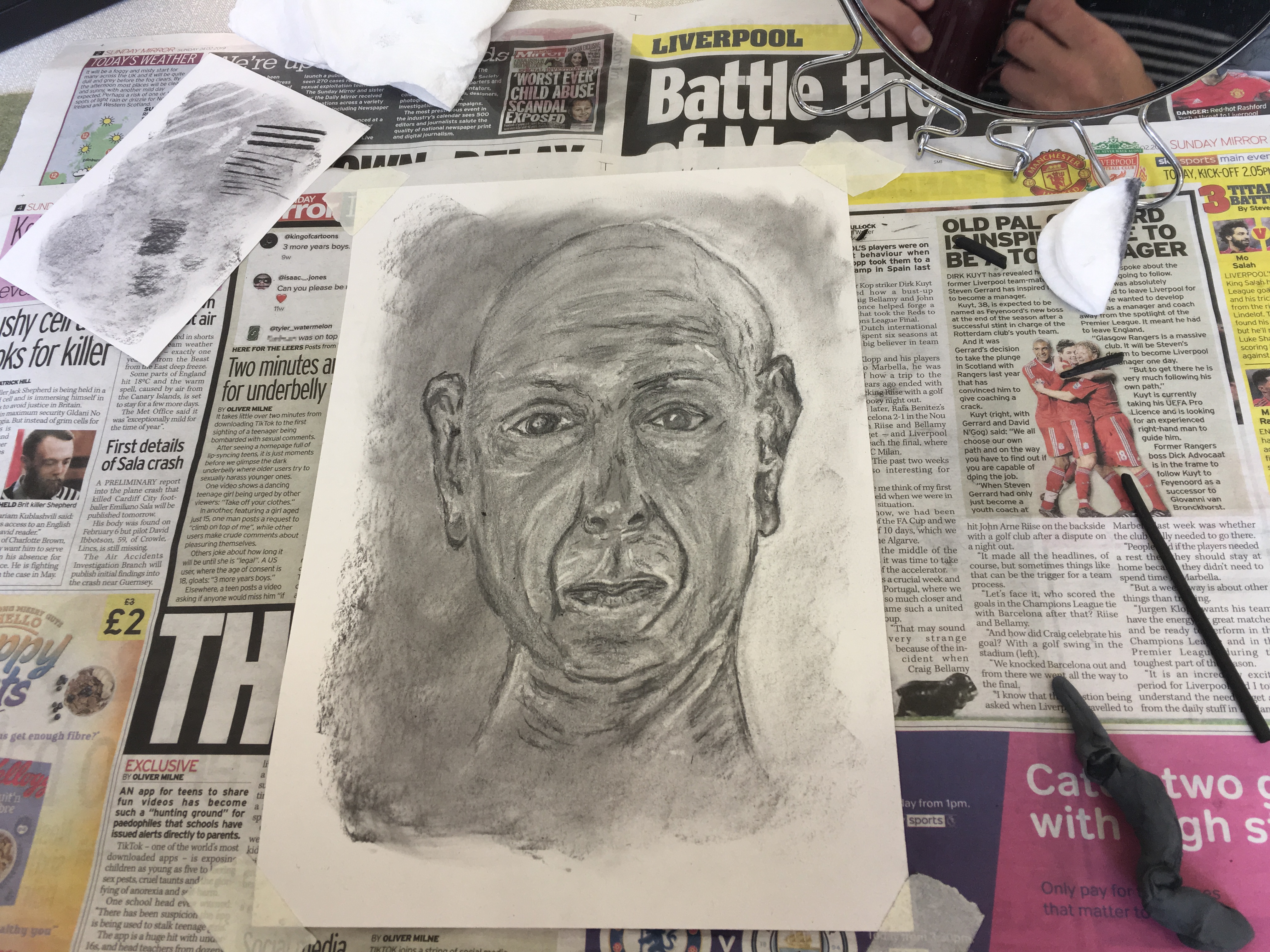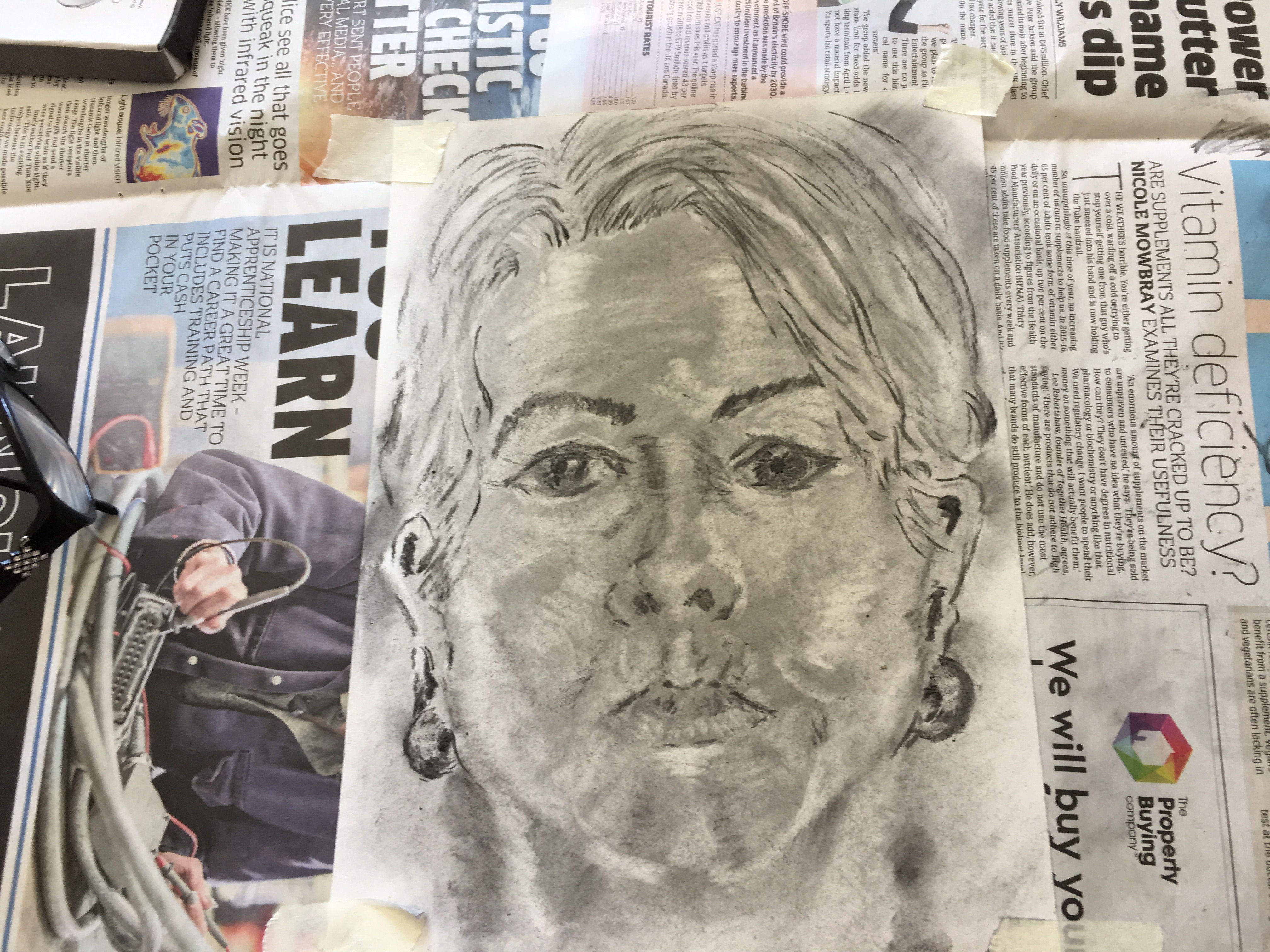 Our first week back and plenty of challenges faced already. The Beginners Animal Portraiture Course 1 started with this pencil drawing of a dog – focusing on tone and proportion. The Beginners Birds Drawing Course did some great scaperboard drawings of Starlings. Sorry, but I forgot to take photos. You’ll just have to take my word for it that they were fab! The Beginners Portraiture Course Level 2 jumped in at the deep end by starting with self-portraits in charcoal. It’s always exciting to see what everyone produces in the very first lesson and I can’t wait to see what else you can do.