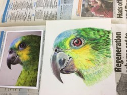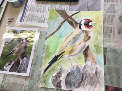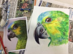For our final week of the current term the Beginners Animal Portraiture Course 1 created fantastic, oil pastel parrots. In the Beginners Birds Drawing Course we used Inktense blocks to make colourful drawings of goldfinches. For the Beginners Portraiture Course Level 2 we had 2 life models to pose for us (thanks to Harry and Abbie) and used watercolour to produce several paintings. A great finish to the term!