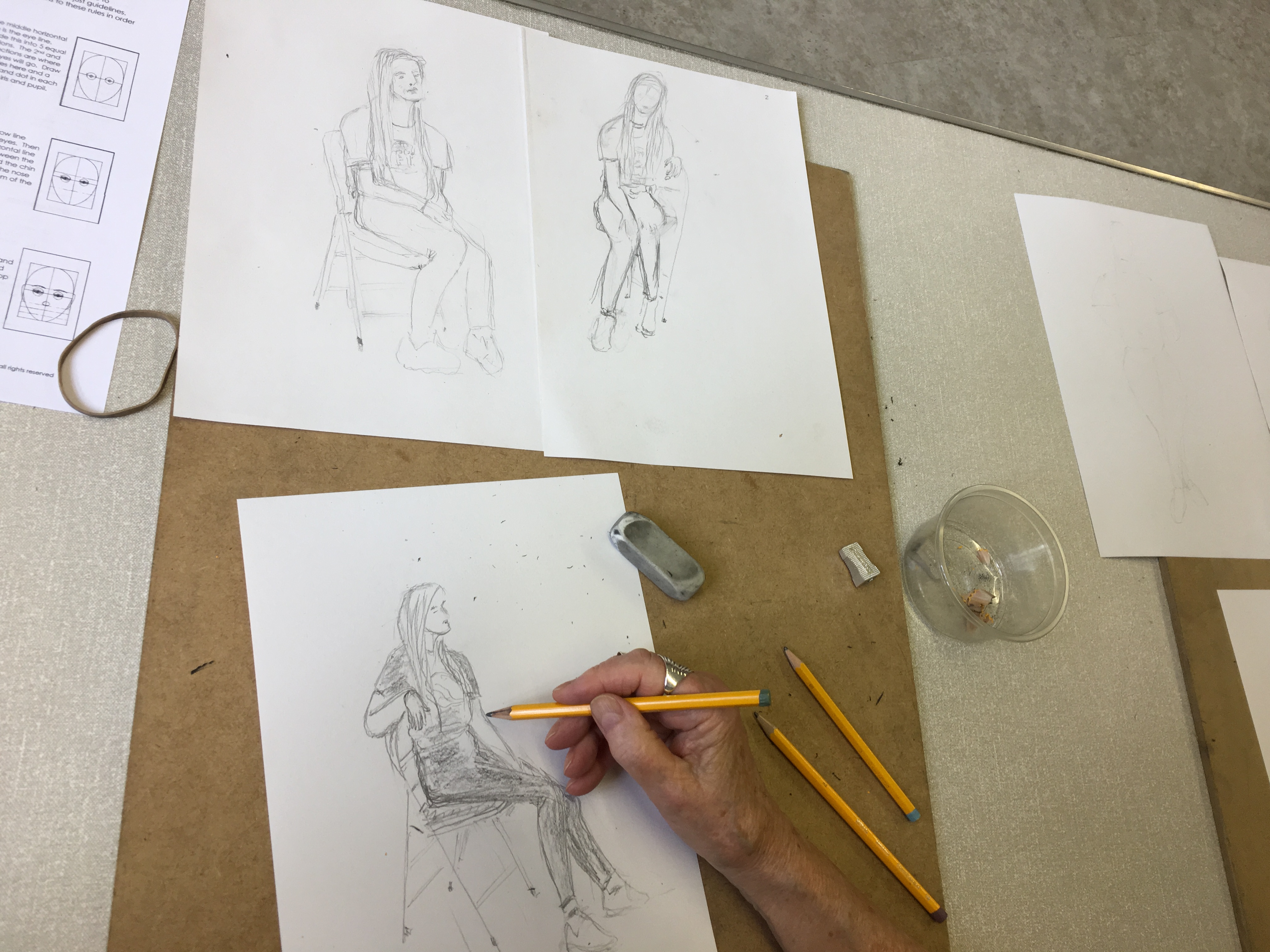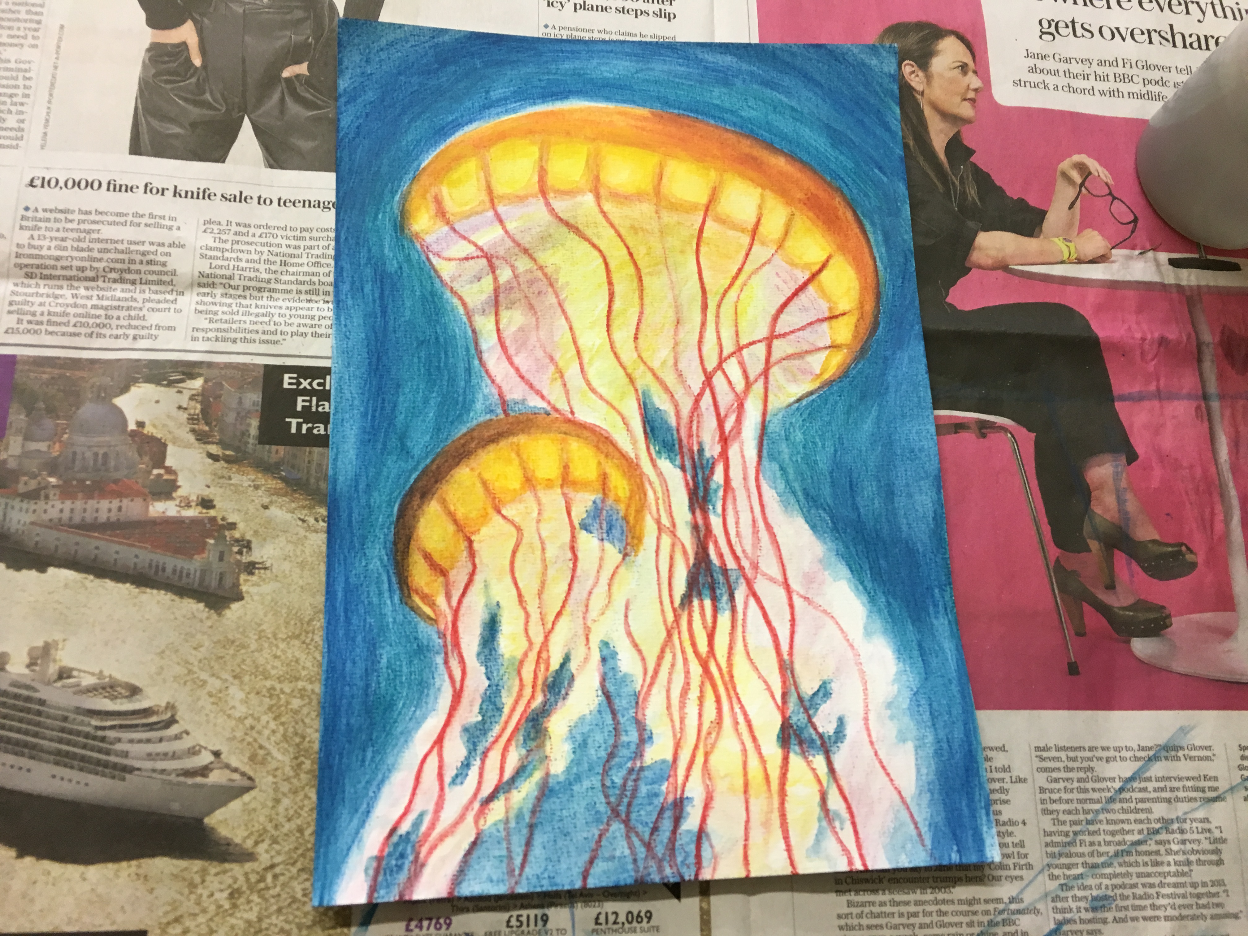 Yes, we have come to the end of the current term but the Beginners Animal Portraiture Course 3 finished in a flurry of colour with these amazing ink block paintings of jelly fish. The Beginners Drawing Course Level 1 had yet another big challenge this week – the human figure. We focused on proportion mainly and you all made great progress during the lesson. Big thanks to Rhiannon, our life model, for stepping in at the last minute. Thank you to everyone for all your hard work this term and for producing such fantastic pictures each week. It’s been an absolute pleasure seeing all the lovely work you’ve created and I’ll look forward to seeing more when the new term starts in September.