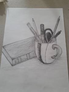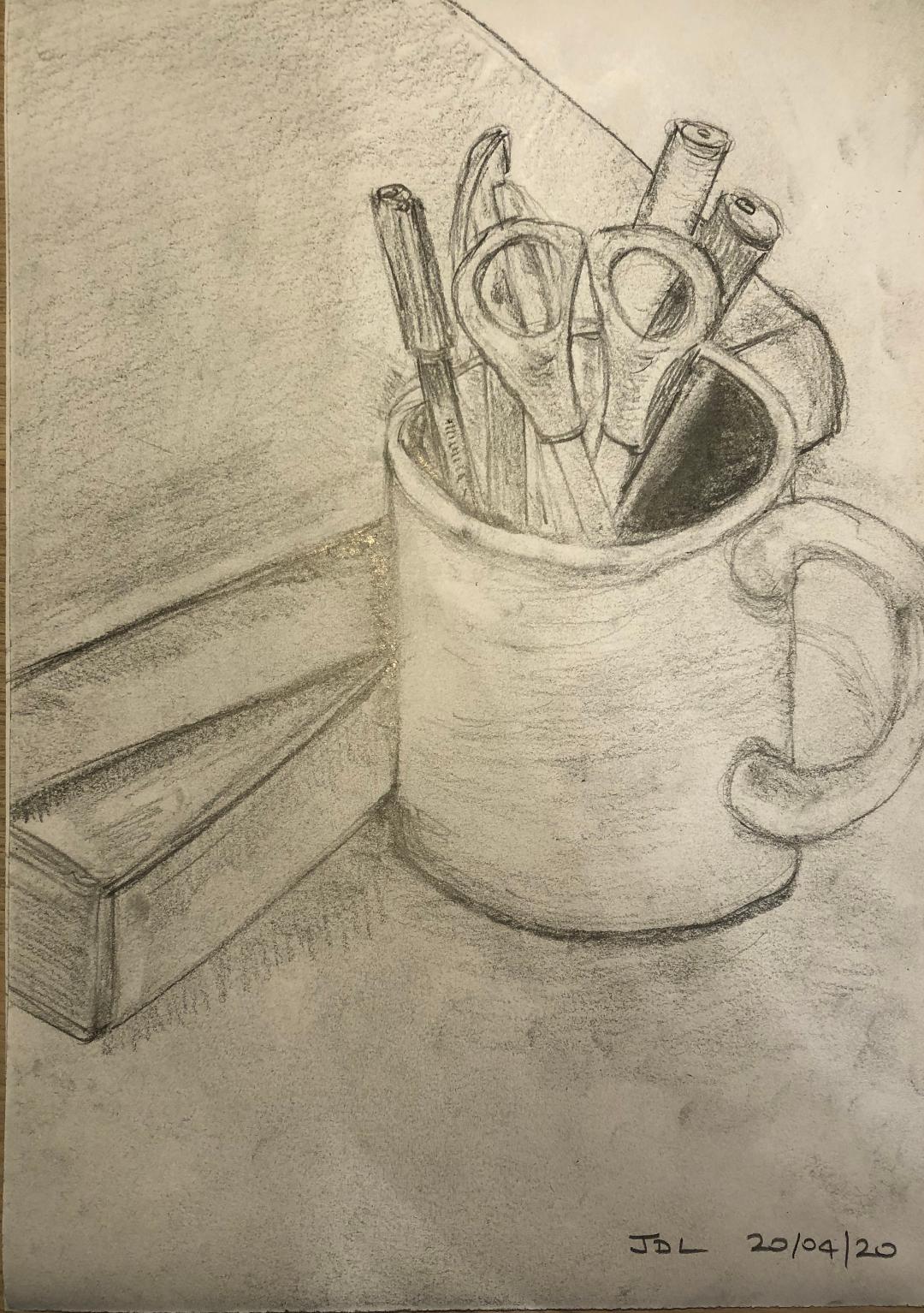 Thank you to everyone who attended our first online lesson last Monday for the “Pencil and Paper” Online Beginners Drawing Course. I hope you all enjoyed it. Since then lots of you have been sending me photos of your work which I have loved receiving. The “Cup and Pencils” drawings turned out really well and I’m so pleased with how much work you’ve all put into this. Here are a few examples and you can see others on the Leeds Art Group Instagram page: https://www.instagram.com/leedsartgroup/