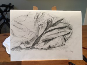 Well, I think we can all agree – that was a tricky one! I really challenged you all with this week’s task but you did not let me down. Sometimes it’s good to push your skills (or be pushed) a bit more than usual to find out what you can really achieve. This folded cloth task seems on the surface like it should be a doddle but it’s a lot more difficult than it first appears. You all did brilliantly though, as you can see from the pictures below and those that have been posted on instagram @leedsartgroup and WhatsApp all this week.