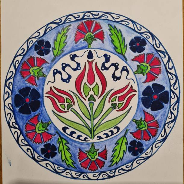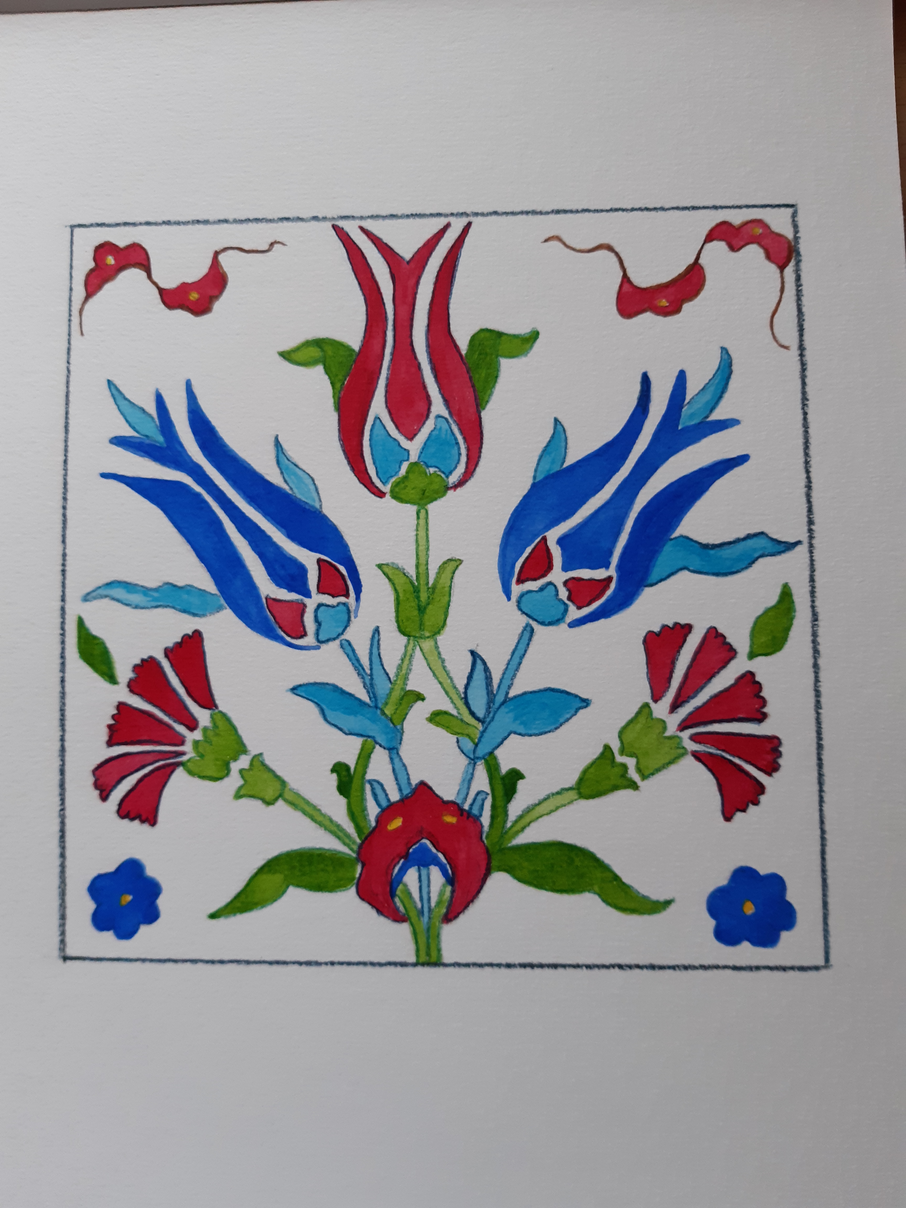 This week in the “Inspired 2” course you’ve been making wonderful patterns and designs based on Iznik ceramics. It’s been glorious to see all those brightly coloured flowers, they should keep us going until Spring! The “Pencil and Paper 1” course used shoes as their subject for practising proportion, texture and shading. A fantastic collection of pictures once again. Well done everyone.