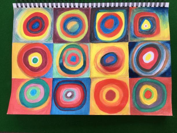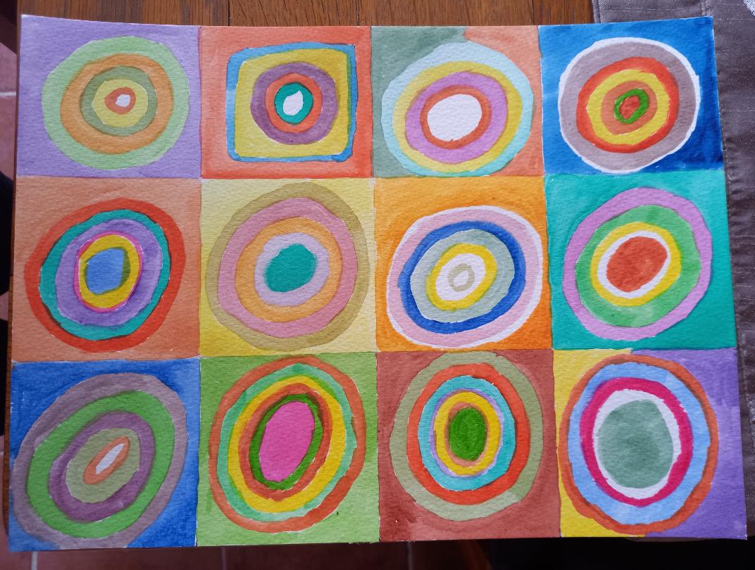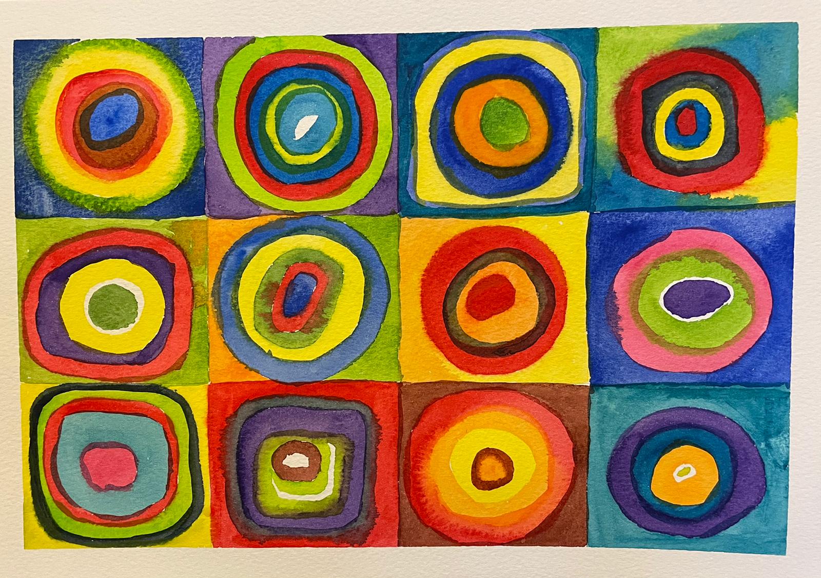 It’s great to be back with a brand new course and what better way to kick things off than with a whole load of colour? For our first lesson we looked to Kandinsky for inspiration and his “Colour Study. Squares with Concentric Circles”. You all certainly embraced colour and created these fantastic watercolour paintings. What a great start to the course, well done everyone!