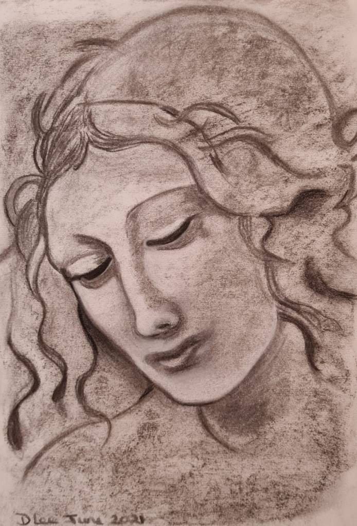Well as it’s week 2, I thought we must all be ready to take on a true master – Leonardo da Vinci! We based these charcoal drawings on one of his paintings – “La Scapigliata” from 1506. This one was a real challenge because there’s no room for error. Even the smallest changes make a huge difference in something like this. But you did not let me down and you’ve created some beautiful drawings this week. Well done everyone for rising to the challenge!