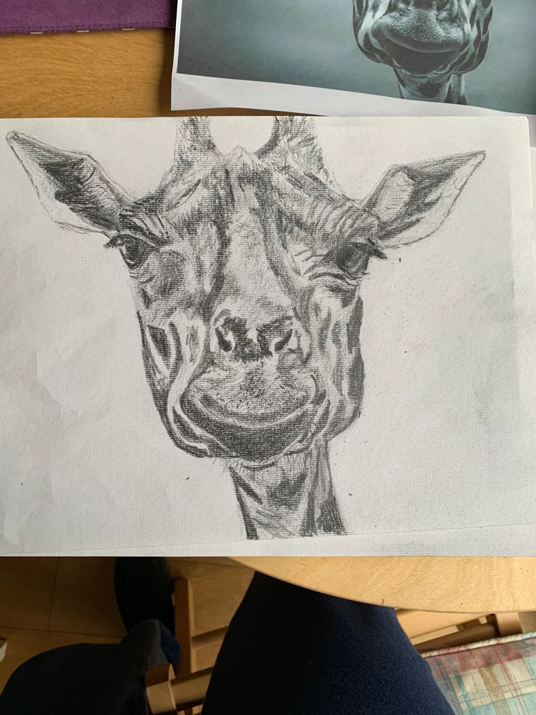 We had another live online “Draw Along” this week and our subject was this handsome giraffe. It was a tough ask to fit so much into our hour and a half lesson but you all did brilliantly and many of you have told me how much you enjoyed drawing the giraffe – I think it shows! Well done everyone, fantastic work!
