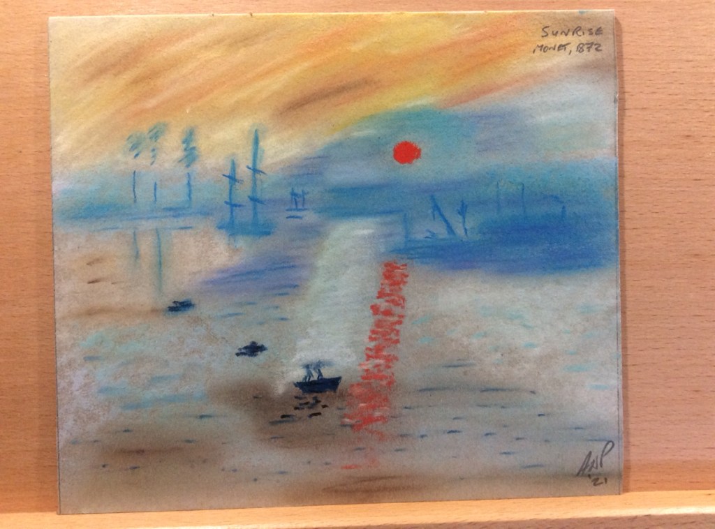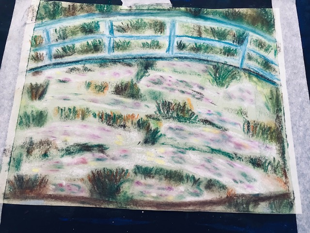 This week in the “Inspired 1” course we looked to Claude Monet for our inspiration. With so many of his paintings to go at it’s great to see all your different takes on the subject. Soft pastel was our medium this week and it’s a tough one to get used to but definitely worth having a few goes at it and with a bit of practise you’ll see results. Well done for persevering in even when the going gets tough.