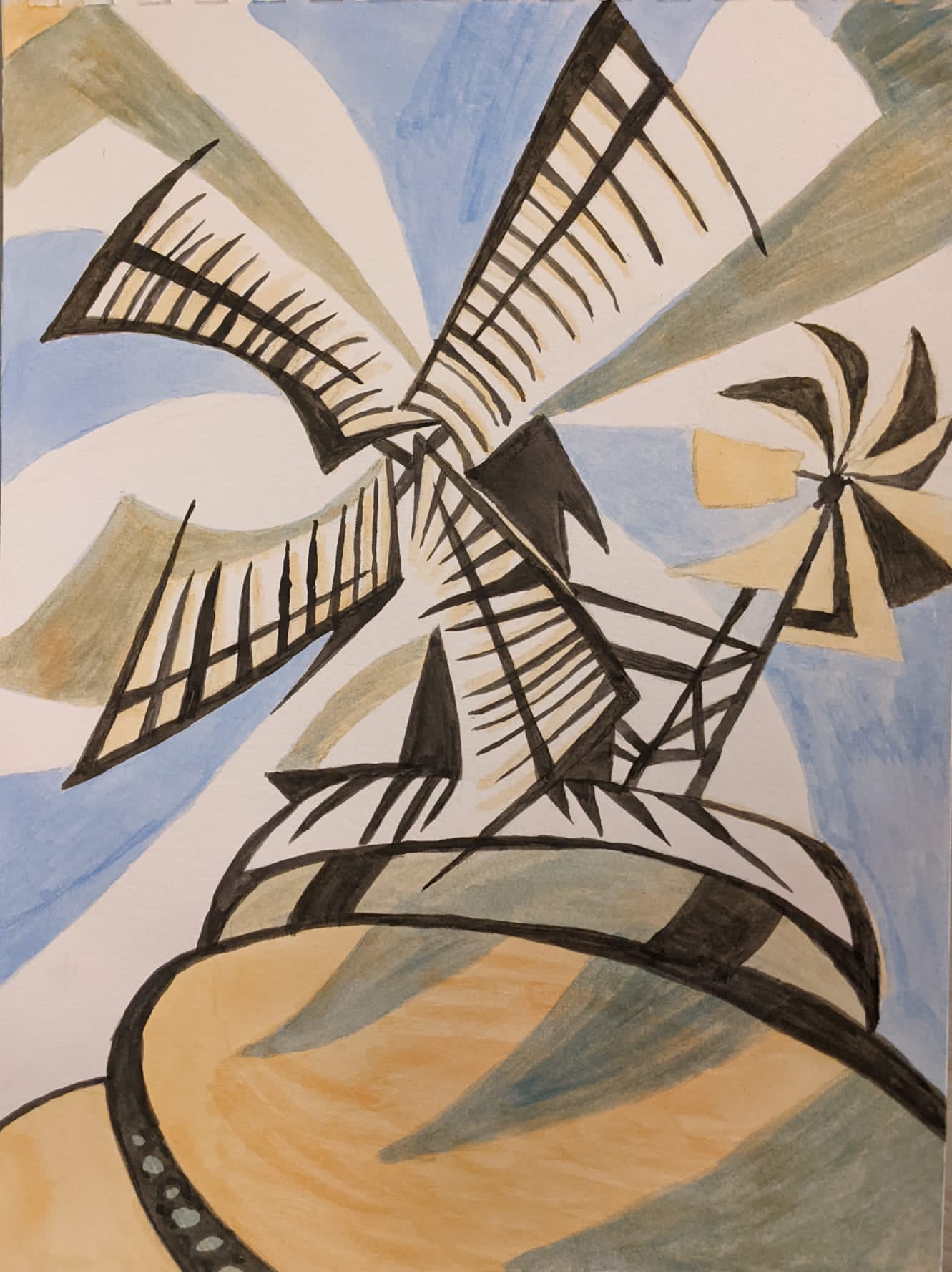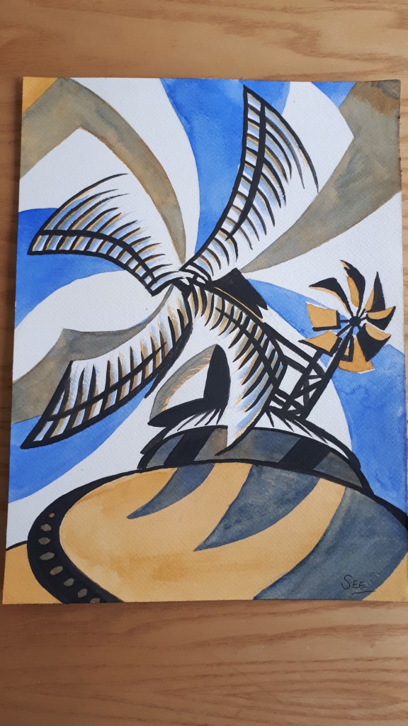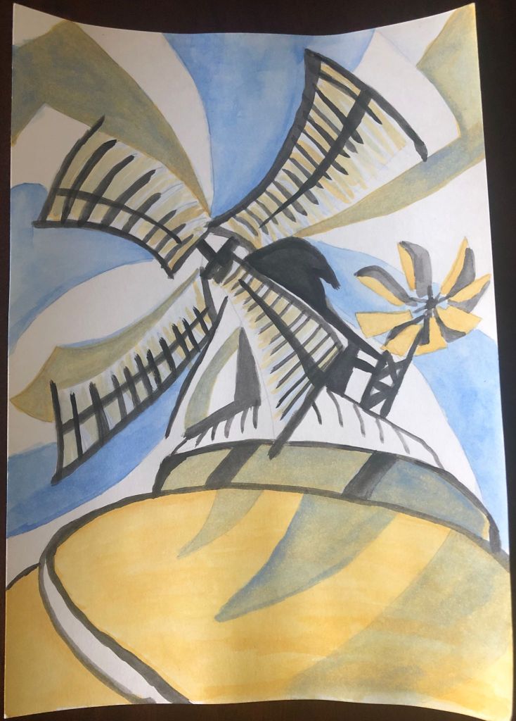 For our final lesson in the “Inspired 6” course we looked at the work of Sybil Andrews, a linocut artist working in the 1930s. We used layers of watercolour paint to create these pictures and tried to convey the sense of movement that she uses in her work. What a great finish to the course everyone! We’ve covered a lot in the past few weeks and I hope you are all really proud of everything you’ve achieved.