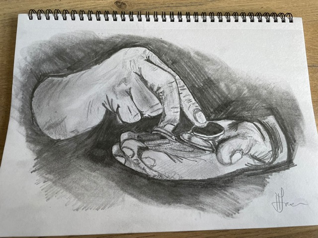 Well done to everyone who took on last night’s Draw Along challenge. Hands are something that a lot of people find difficult to draw. So what better reason to practise! You did incredibly well to recreate this complex image and you really had to focus on drawing what you could see rather than what we think of as a typical hand shape. Great work, hope you enjoyed it.