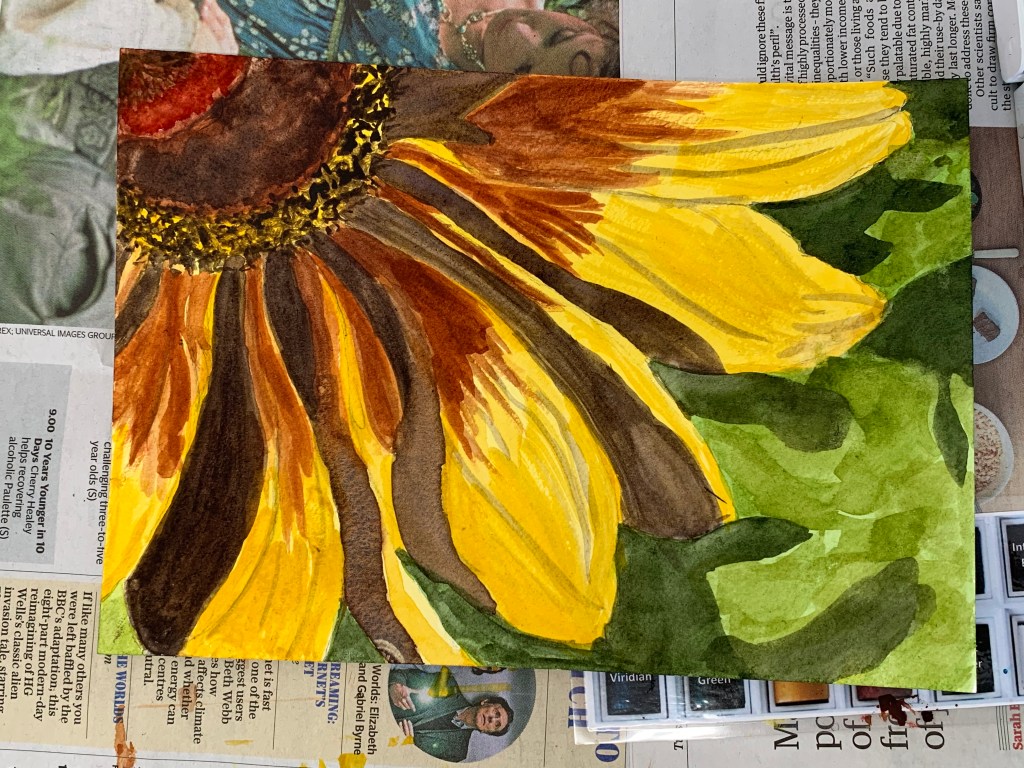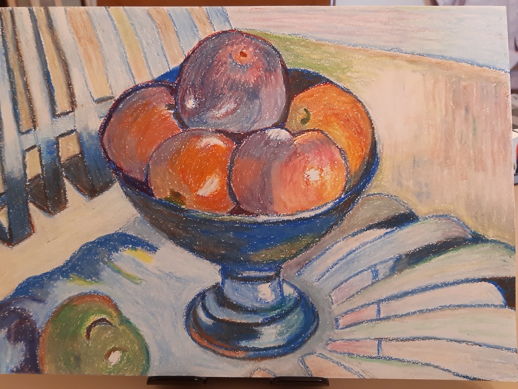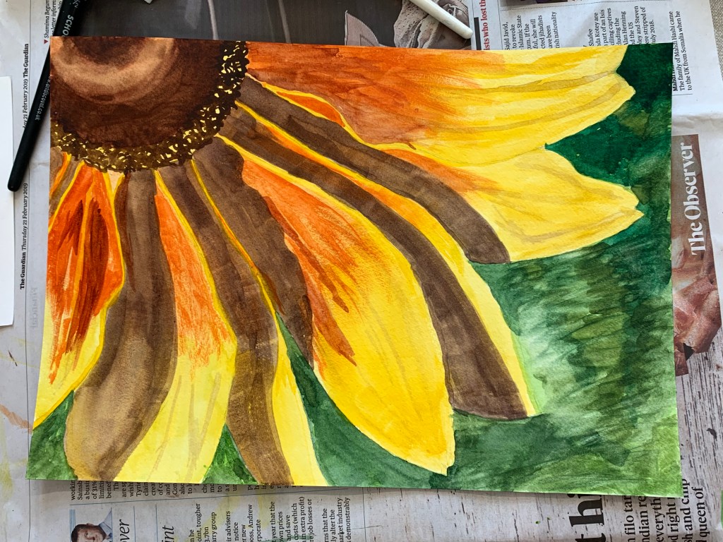 This week in the “Flowers” Beginners Mixed Media Course we painted these wonderfully sunny and uplifting Rudbeckia flowers using watercolour. People often underestimate how difficult watercolour can be. It takes a fair bit of planning. So well done to all of you for creating such fantastic paintings. In the “Inspired 7” Online Beginners Art Course we were inspired by Paul Gauguin and his brightly coloured oil paintings. We used oil pastels instead which take a long time but are definitely worth the effort. Fabulous work everyone, keep it up!