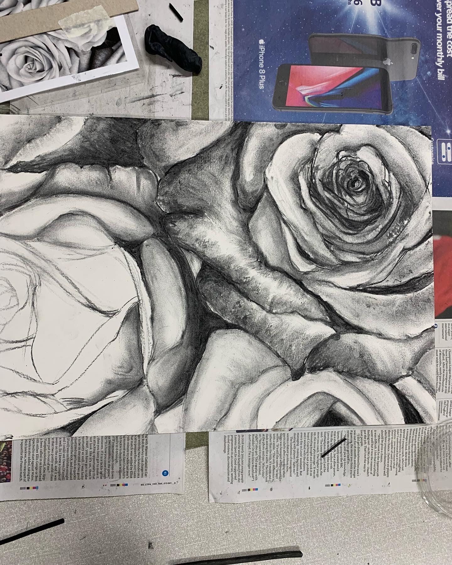 This week the “Flowers” Beginners Mixed Media Course used charcoal to create these wonderfully dramatic drawings of roses. Turns out roses are pretty tricky to draw but it just goes to show what you can achieve when you push yourself just a little bit further. I’m so proud of you all for your perseverance!