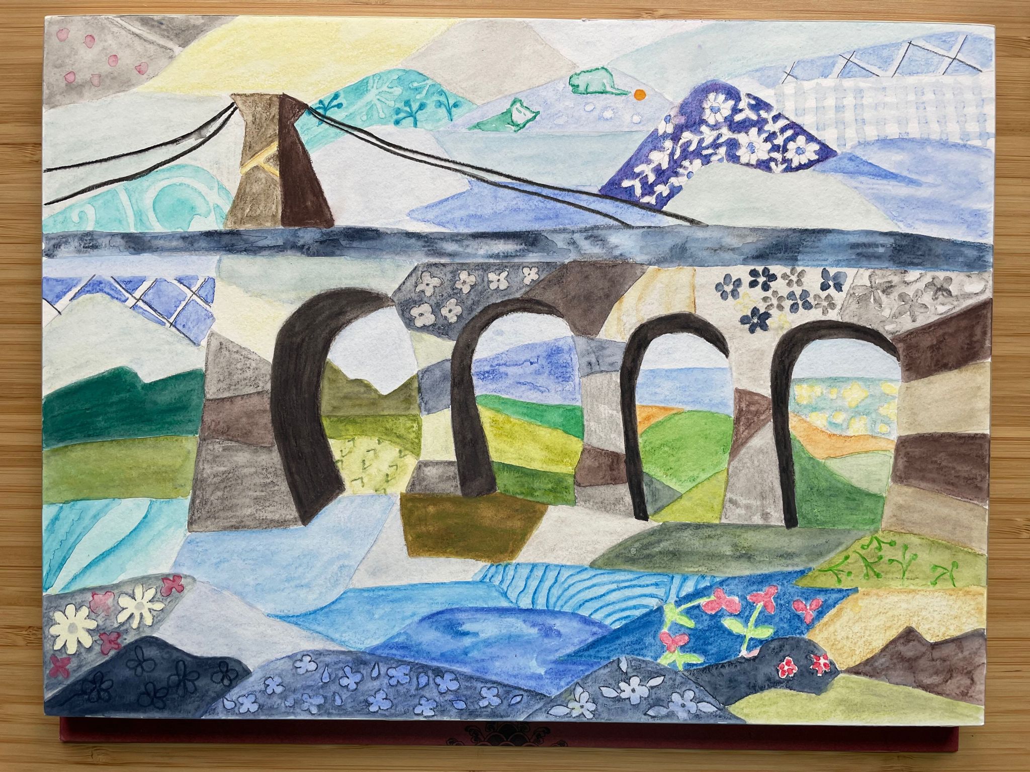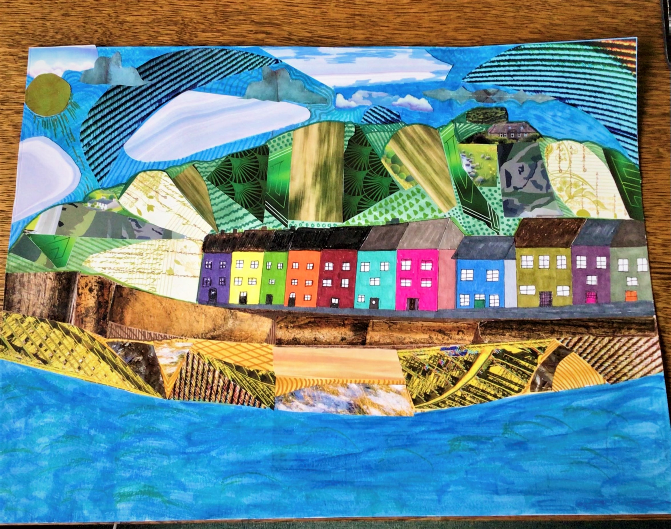 For the final lesson in the “Inspired 8” Online Beginners Art Course we focused on the beautiful work of contemporary textile artist Josie Russell. We used watercolour pencils and collage to create our own versions of her patchwork pictures. Fantastic work everyone! Wonderful variations of colour, tone and pattern. What a great finish to the course!