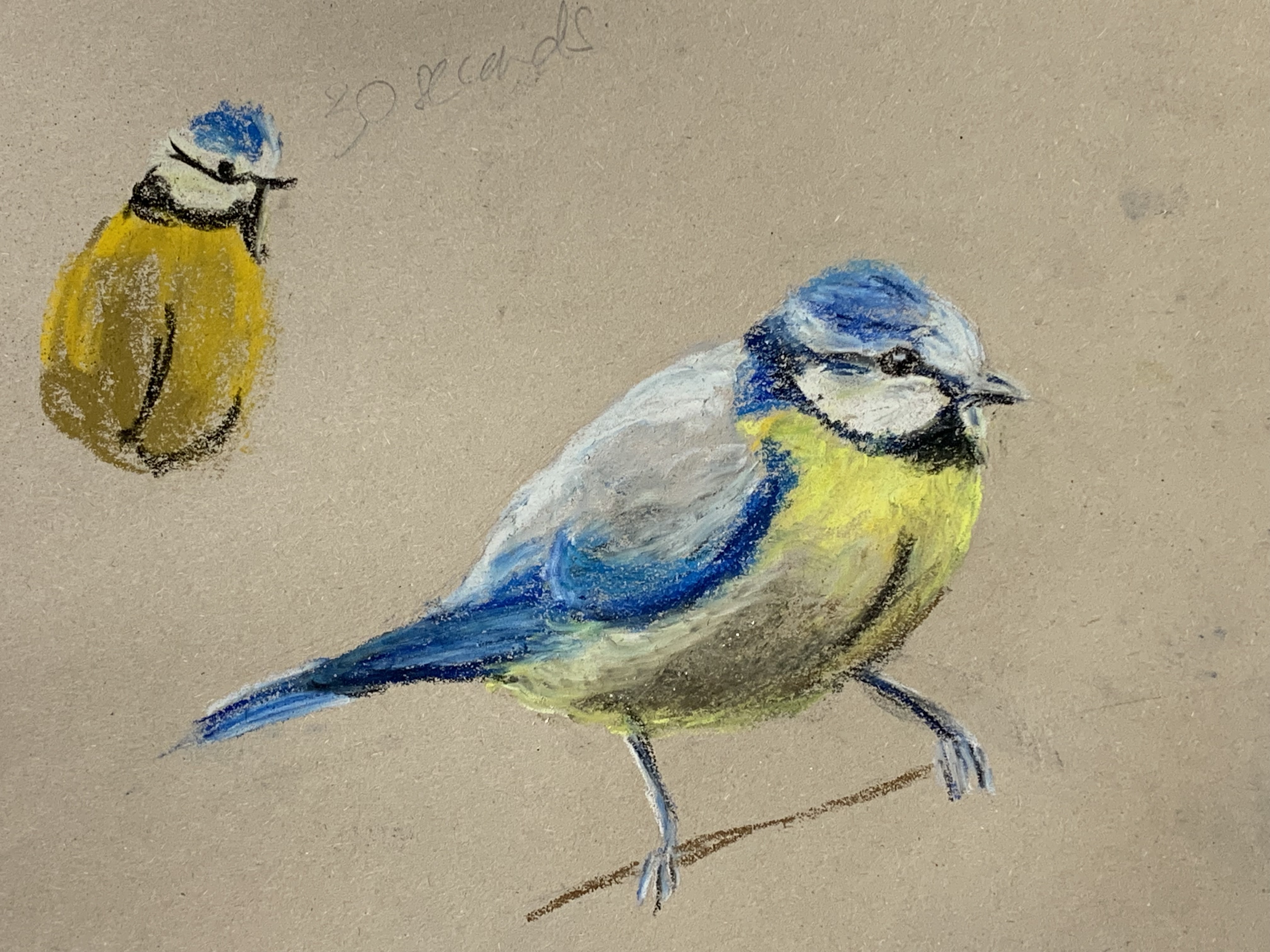 This week we tried something a bit different and did some timed drawings of Blue Tits ranging from 15 minutes to 30 seconds, followed by a longer drawing. This helps to train us into making quick decisions about the most important aspects of the drawing. Soft pastel was perfect for making quick marks and smudges of colour. Great work everyone! Well done.